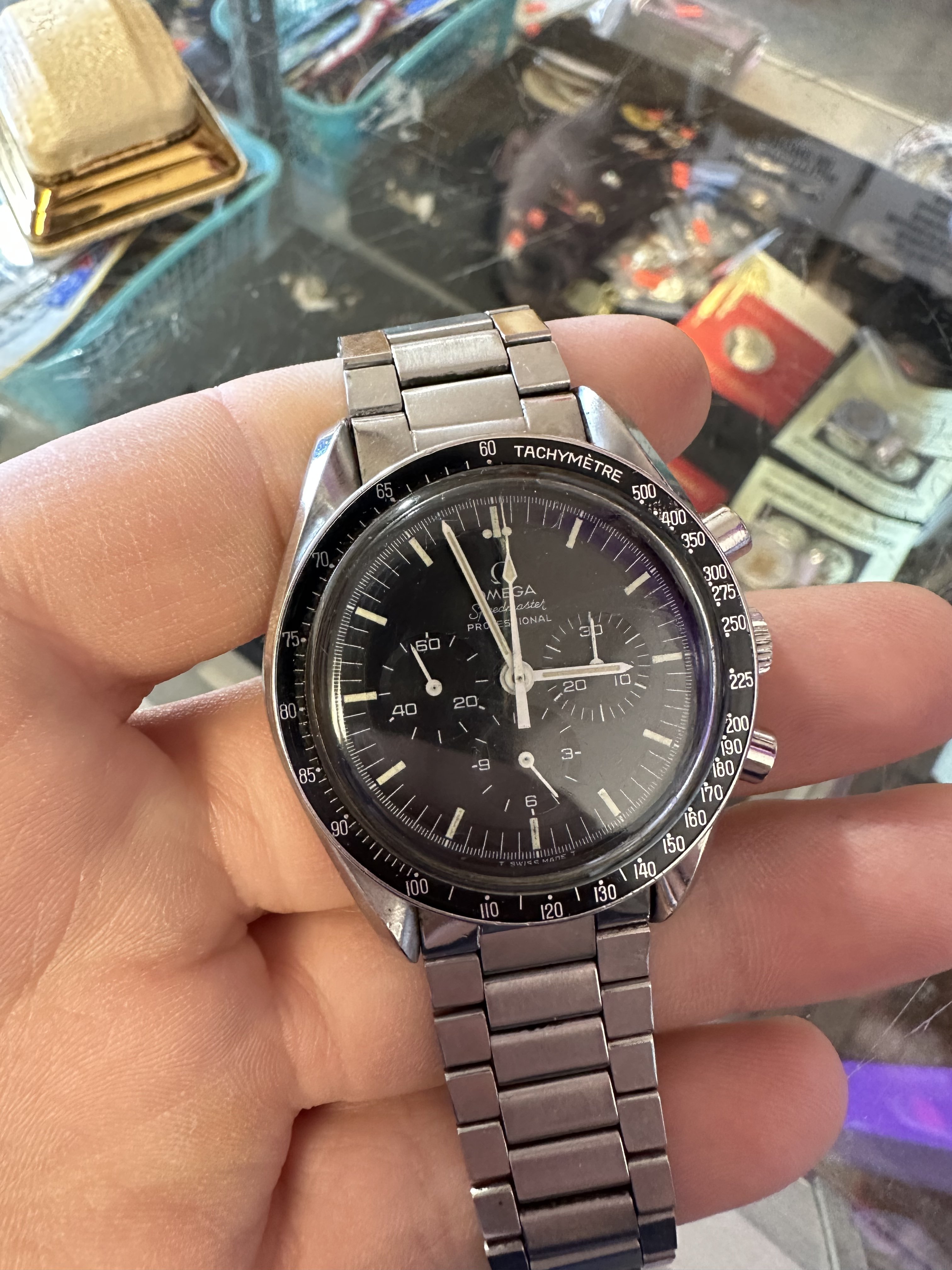 ·Hey everyone, I recently came across this Speedmaster at a local estate sale. I’ll be headed back this morning to see if I can get a movement picture. They’re asking $3500, since they know the brand, but she also mentioned getting a new battery, so they aren’t experts here.