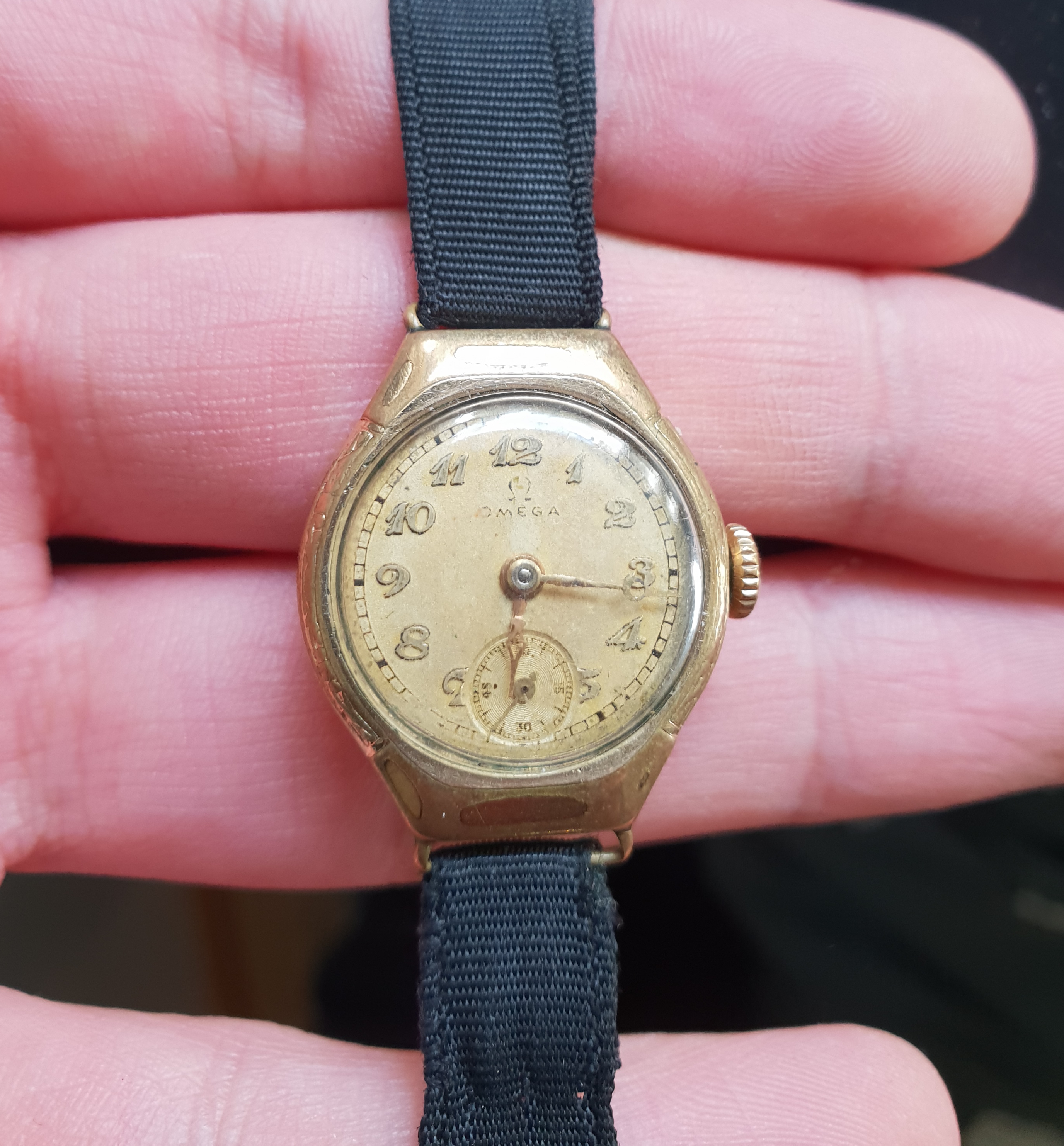 ·Hi! Can anyone tell me anything about this vintage women's omega. It was given as a christmas present in 1938. It's 22mm in diameter (measured from 10-4). I opened the back but everything is stuck to the back, so when I pulled it out the dial and everything came out as well. Because of that I can't see the movement at all. I don't know if it's by desing or has it corroded and stuck like that. Everything is so small and old that I just left it at that. I would appreciate any information on it and in general is it worth anything.