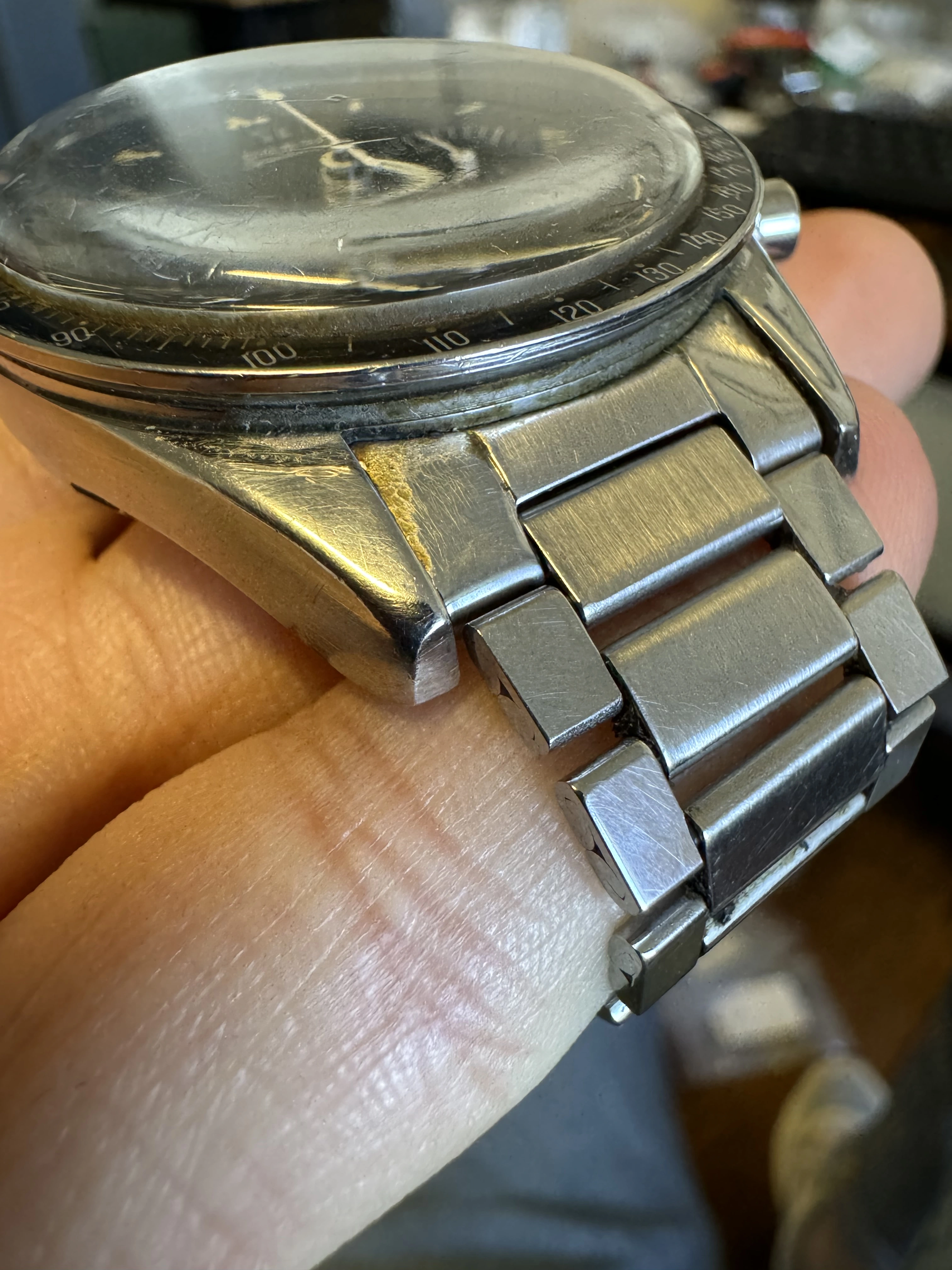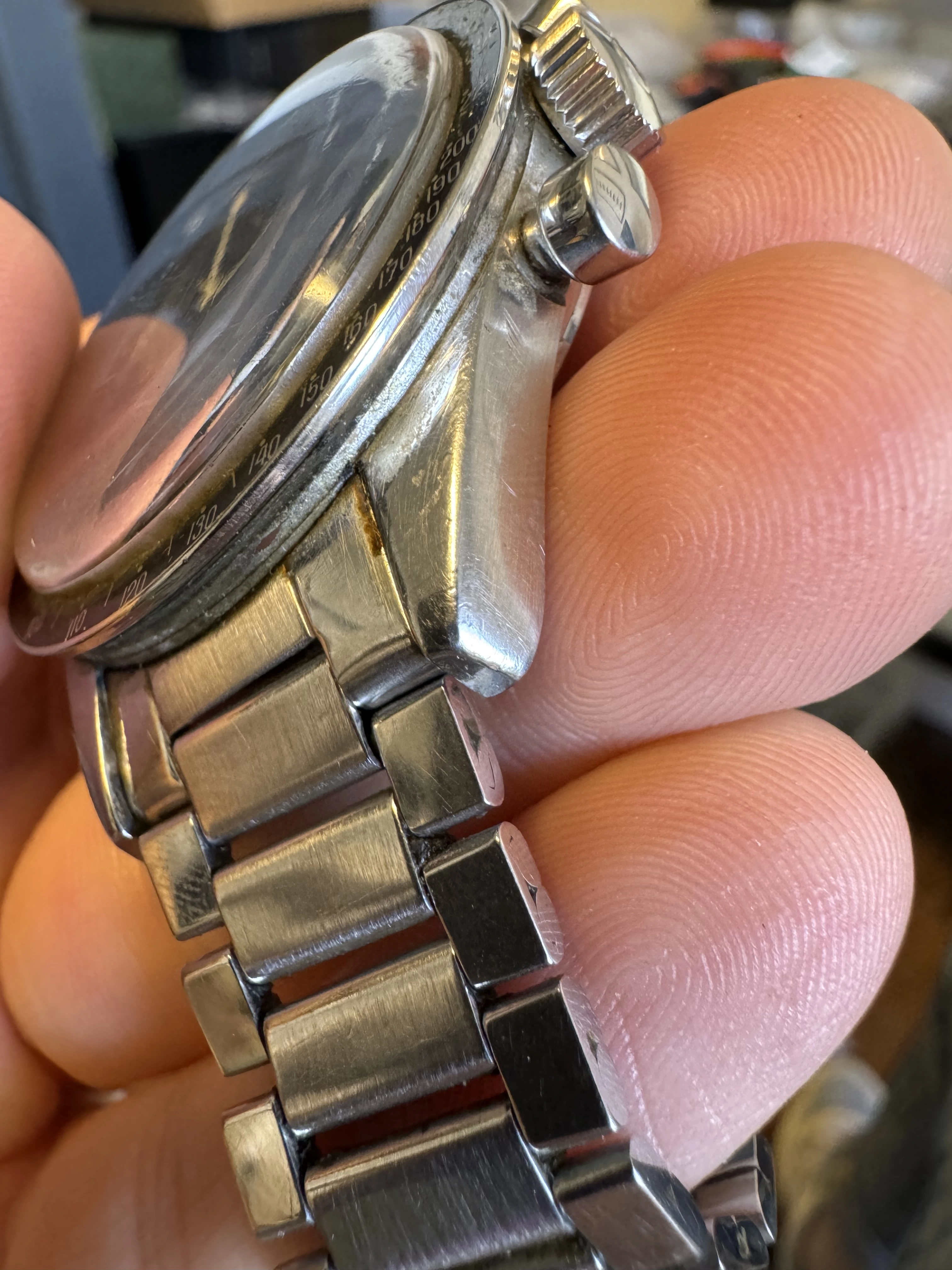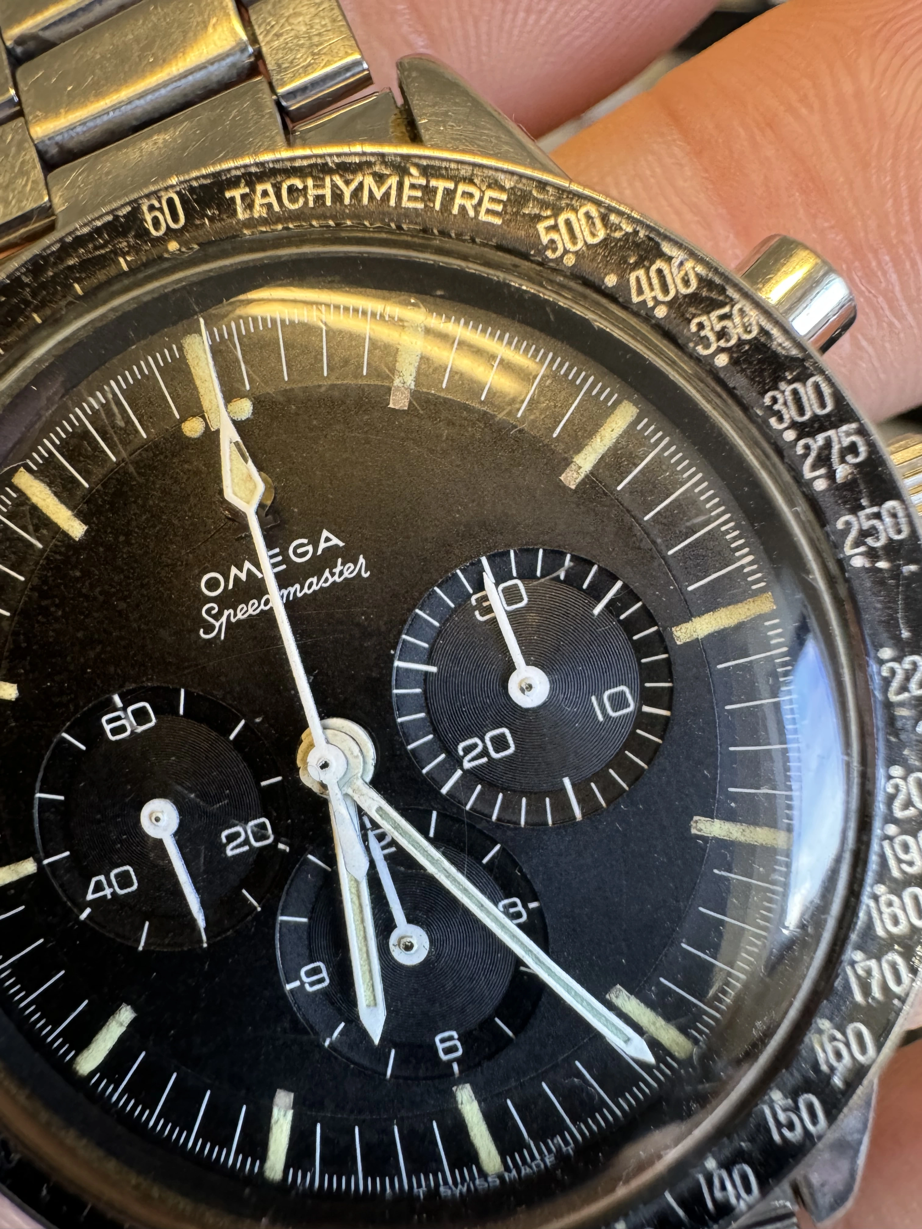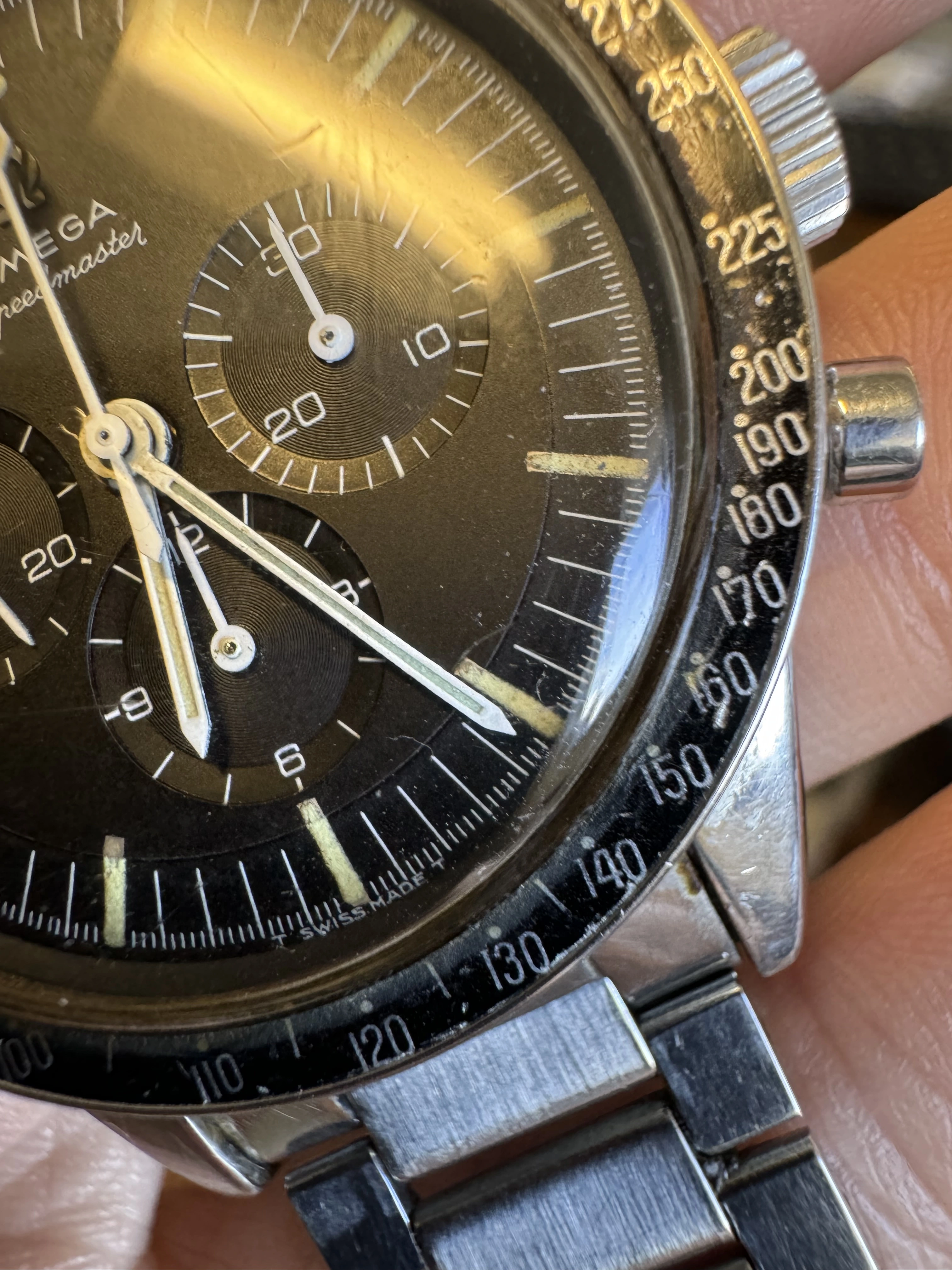 I think that this watch has seen some moisture, and might have been ”dealer worked”?