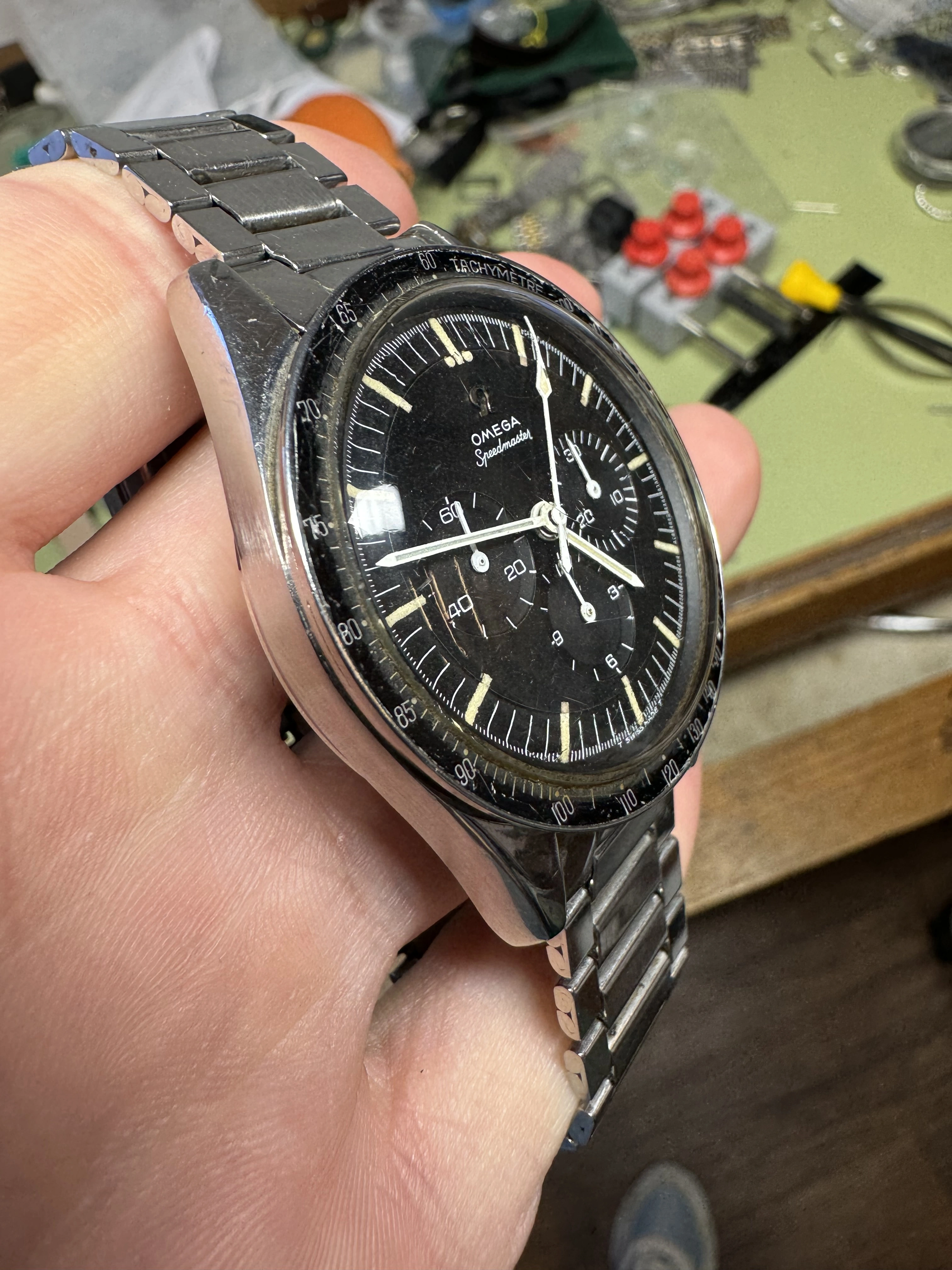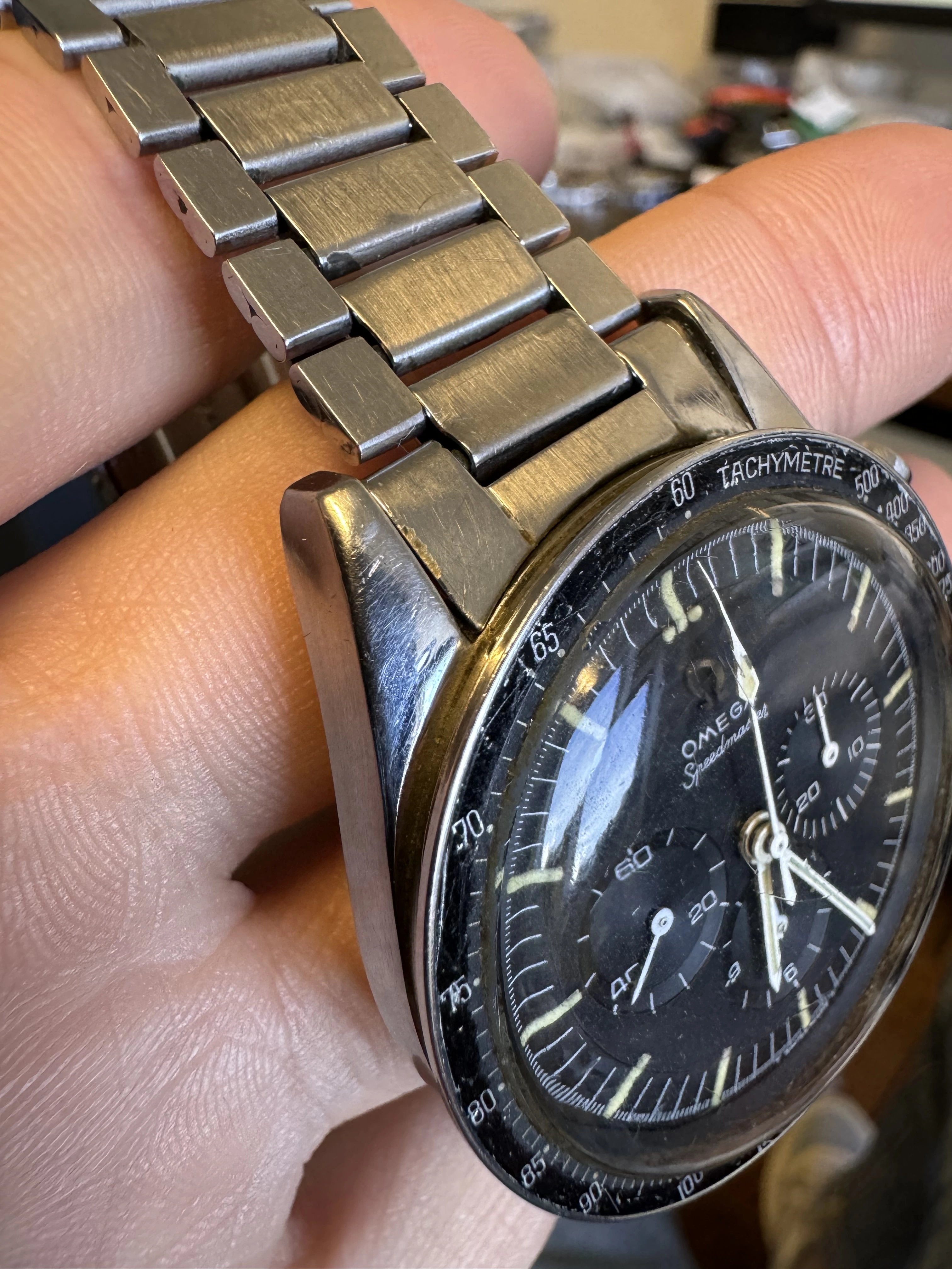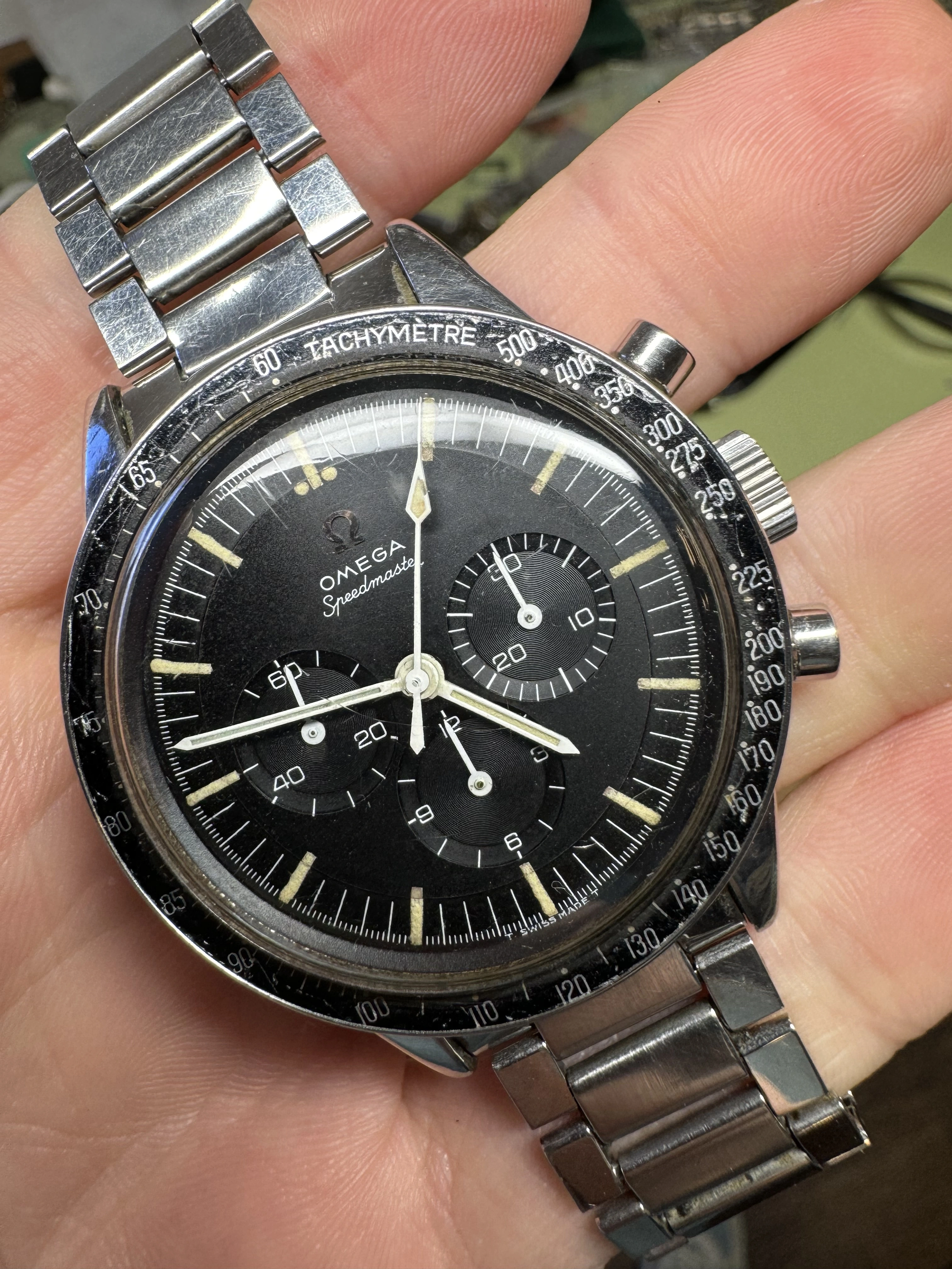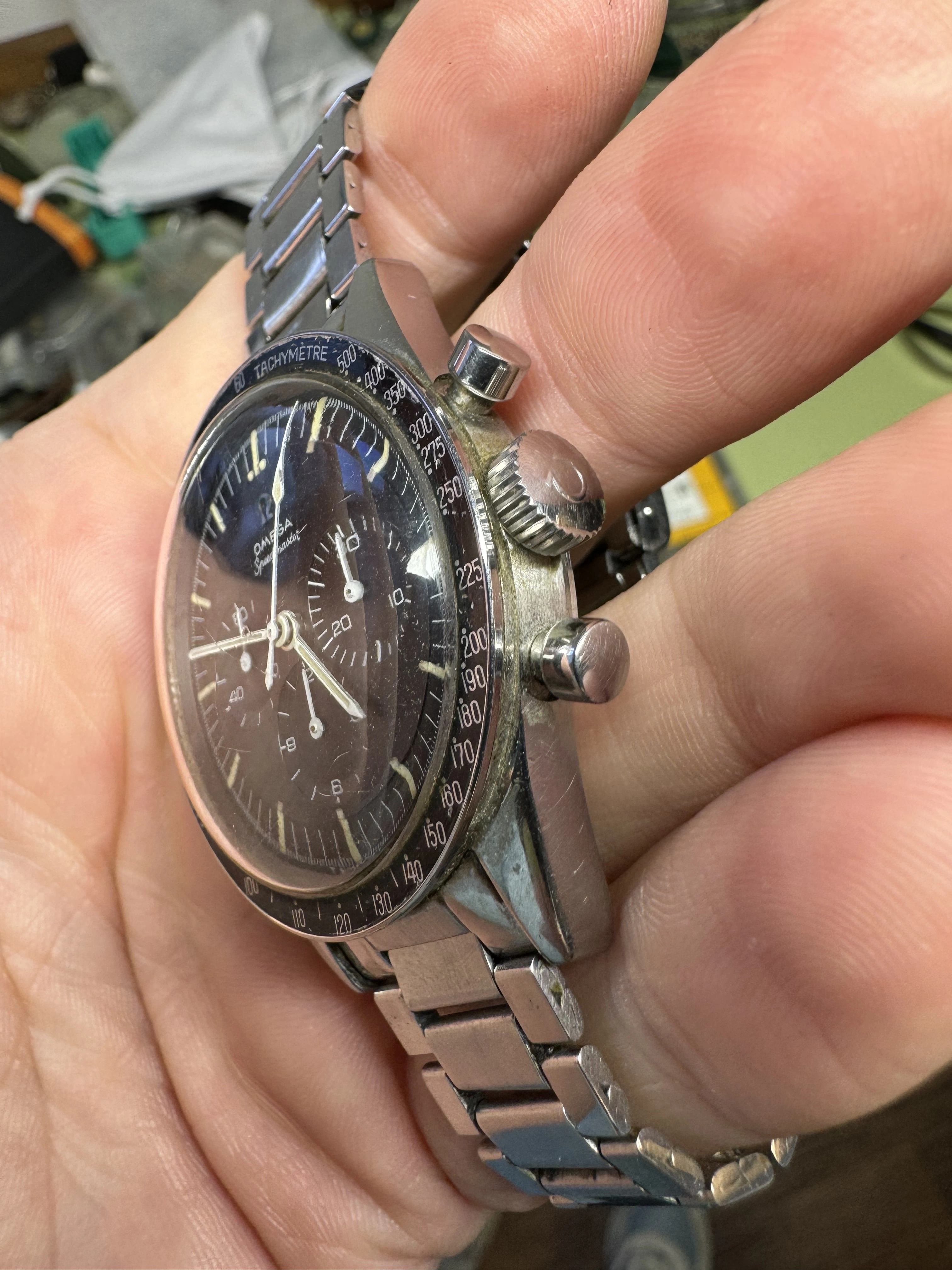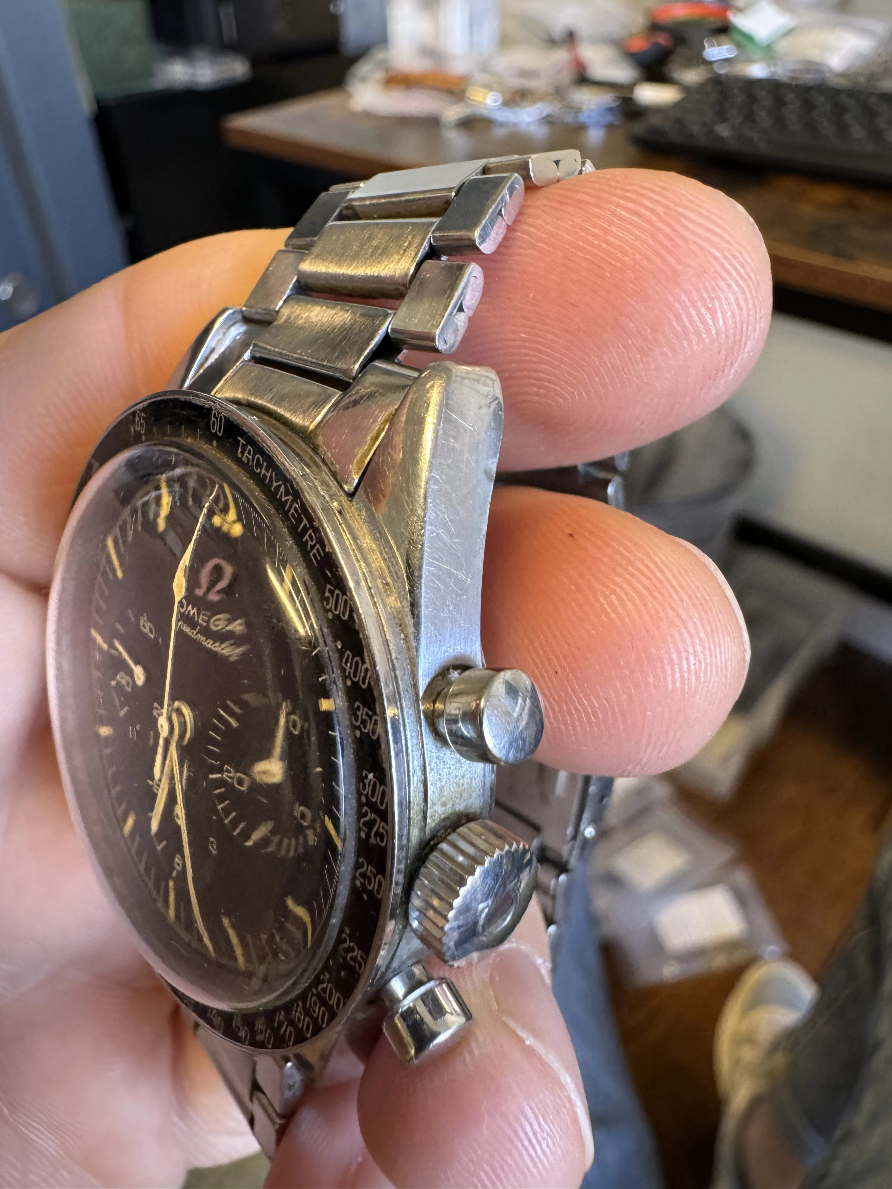 I think that this watch has seen some moisture, and might have been ”dealer worked”?