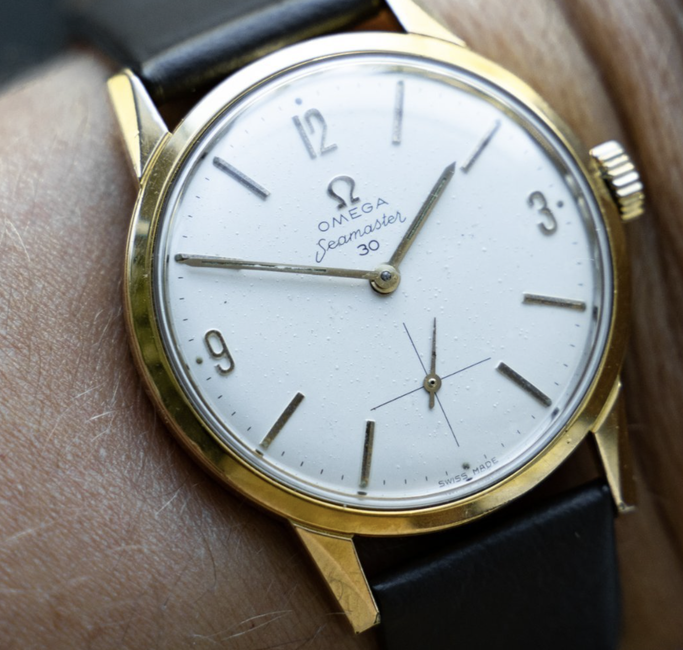 I hope someone can enlighten me a bit. I've spotted this rather beautiful Seamaster 30 cal. 269, but I haven't been able to find another example with exactly this combination of gilded case, baton hands and arabic numerals, which leaves me a bit worried, that something's off. I think the price is really good (about 300 euros) and I love the evenness of the "bubbling" on the dial, so that's not a concern. But hopefully someone in here can help me with the authenticity of the watch