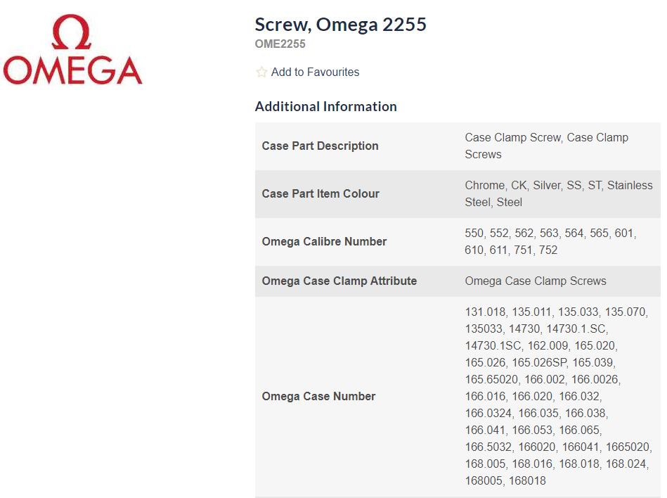 Posts 29,676 Likes 76,837 Archer ·Feb 14, 2024·Omega Qualified Watchmaker A ASTRA0 Thanks Archer - I presume I need two of these and that these are "550 1911" case clamps? (I see on eBay there are "550 1911S" clamps as well). Can you confirm the correct screw needed to fit these? 550 1911 is a partial number, but that is what you need. Screws are part 2255.