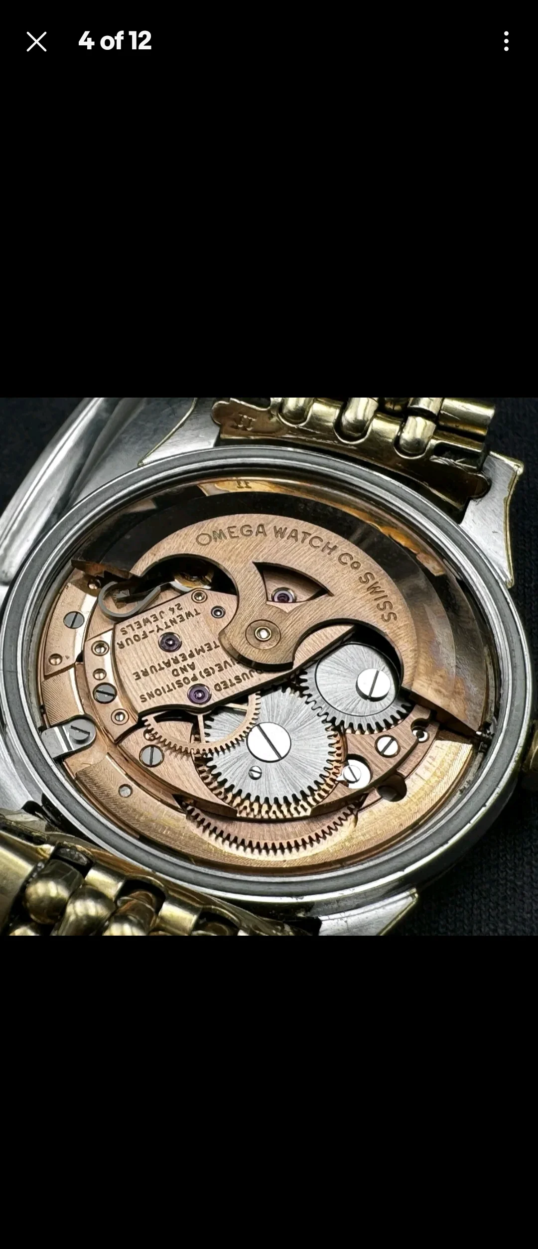These were the photos from the sale, the movement was serviced and cleaned so it looks better overall now. You can partially see the original yellow gold bracelet that needed repair by the end links (loose beads) and it was too small on me. The movement is believe is a Caliber 561