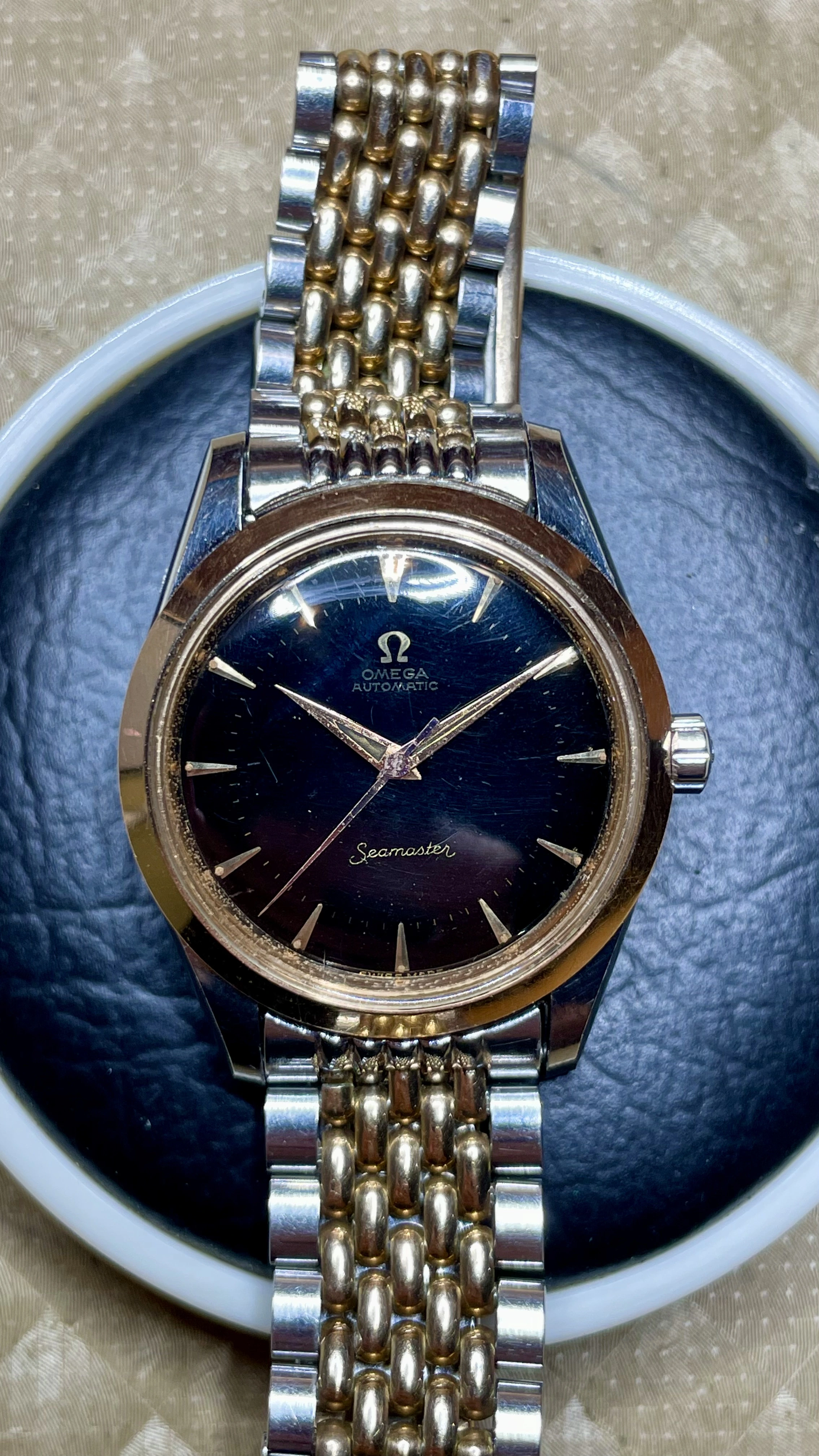 ·Hello, I am new to this forum. I have an Omega Seamaster from the 50 which I would like to identify the reference number. On other Omegas I open the case and look at the back of the case but on this model the case is one part and you can only access the movement from the glass. I am not that expert to risk opening the case myself. Photos attached.