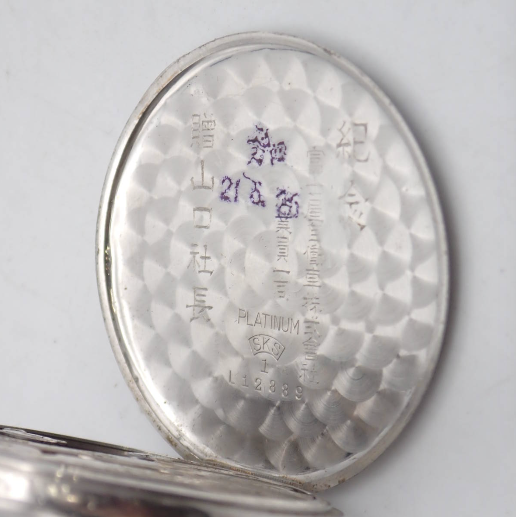 For some background, the watch uses blue jewels, which was seen in 1930's Japan. I was curious about the two clear jewels, but that is for another post. The watch is housed in an SKS Seikosha platinum case.