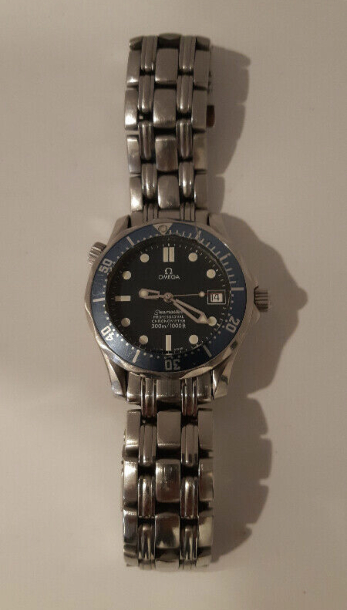 ·Hi. I’m being offered to purchase this Seamaster 300. It’s from a local seller buts it’s still quite a drive away. Can anyone identify the ref from the two photos I’ve been provided with? The seller doesn’t know the ref. Secondly, I haven’t been able to find a mid size Seamaster with this type of bracelet buckle...so is the bracelet original? But more importantly, is there any tell tale signs that this piece could be a replica? Lastly, the photo is blurry but it looks like the bezel is in bad bad shape. How much would it cost to get it replaced with an OEM? Thanks