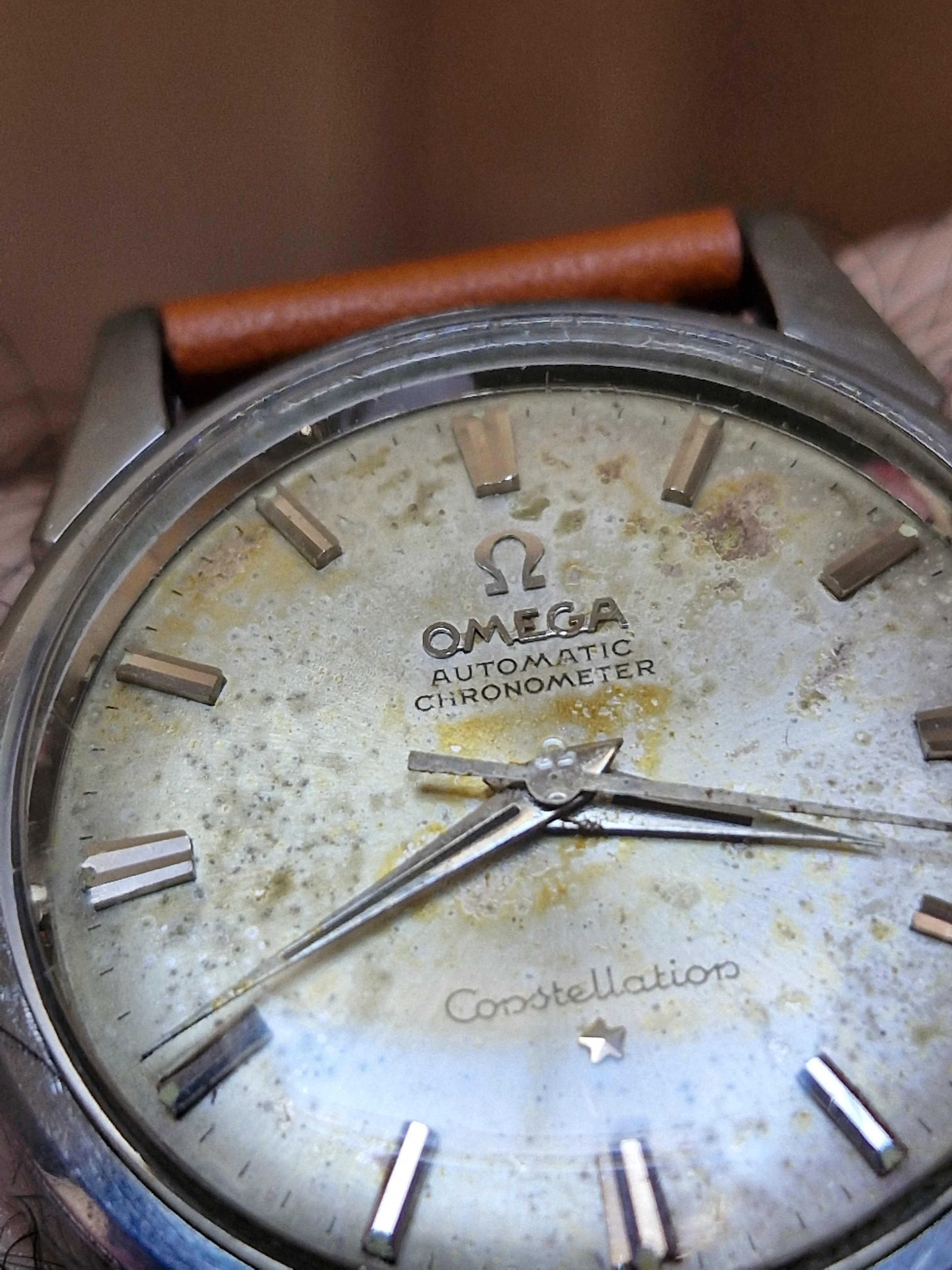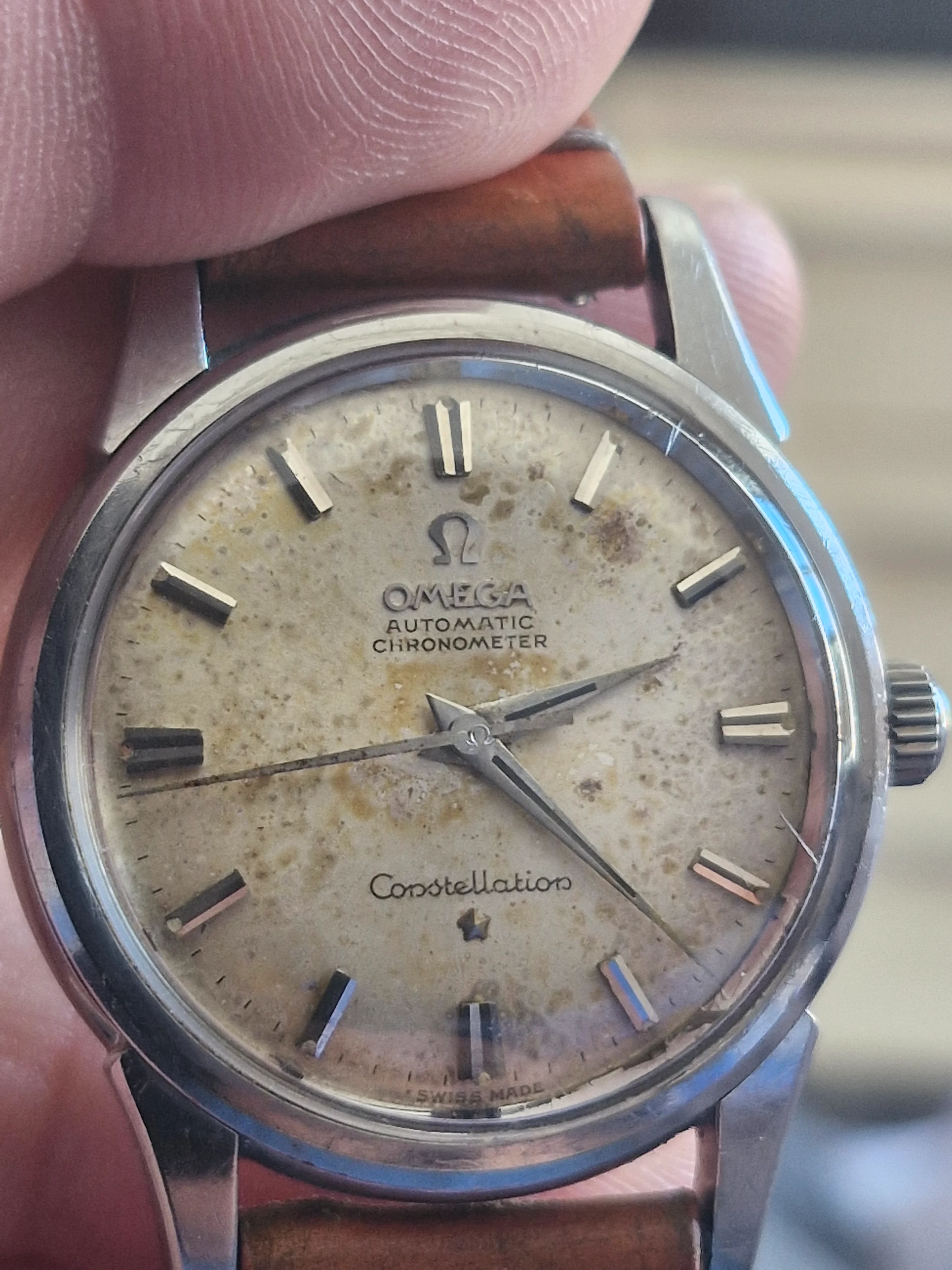 The watch has had a hard life with evident moisture intrusion which has affected the dial and movement- but I guess you knew that from the pictures when you bought it.