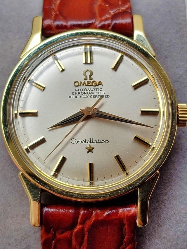 Omega Constellation 167.005 1967 34mm supposedly 14k gold bezel. Aftermarket strap. Only watch.