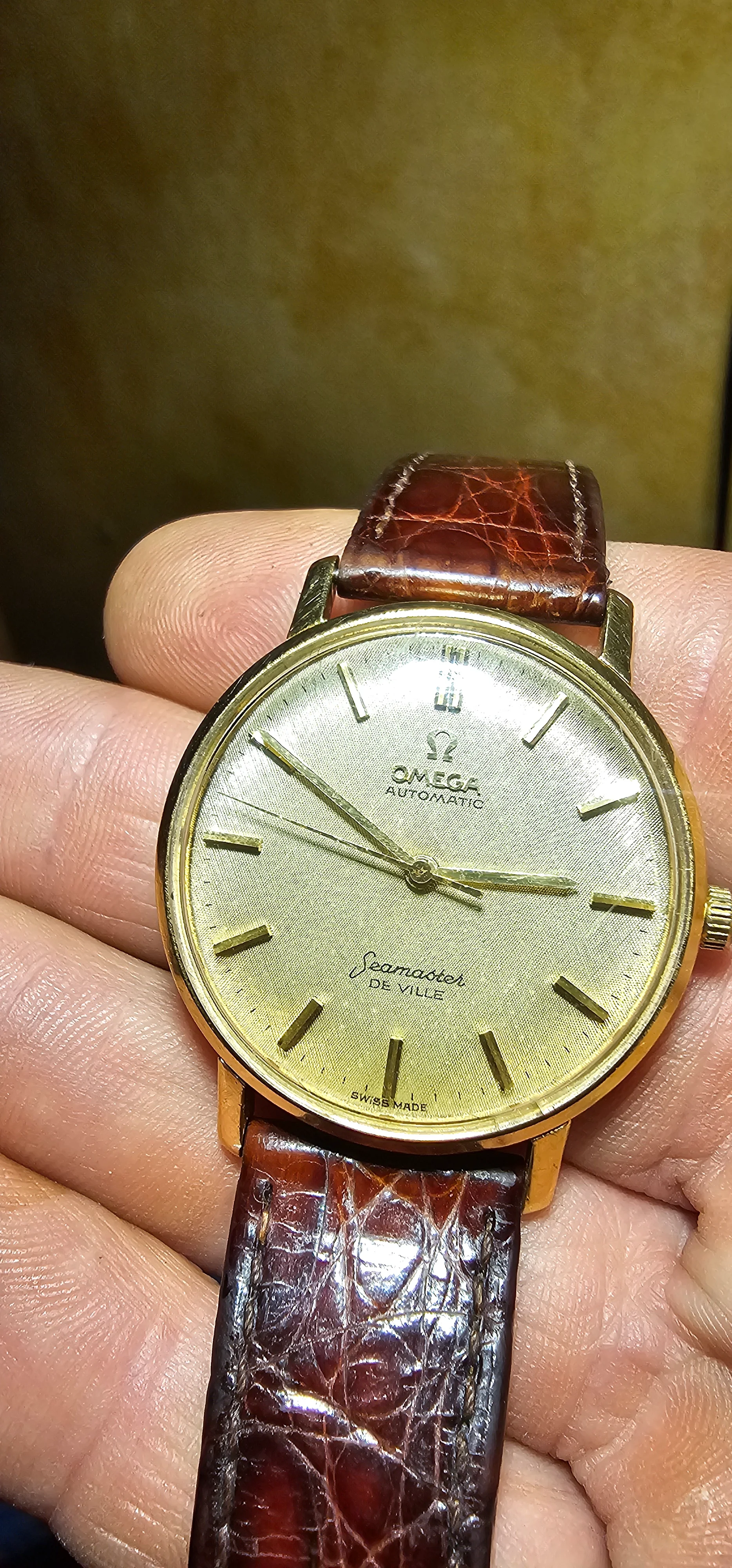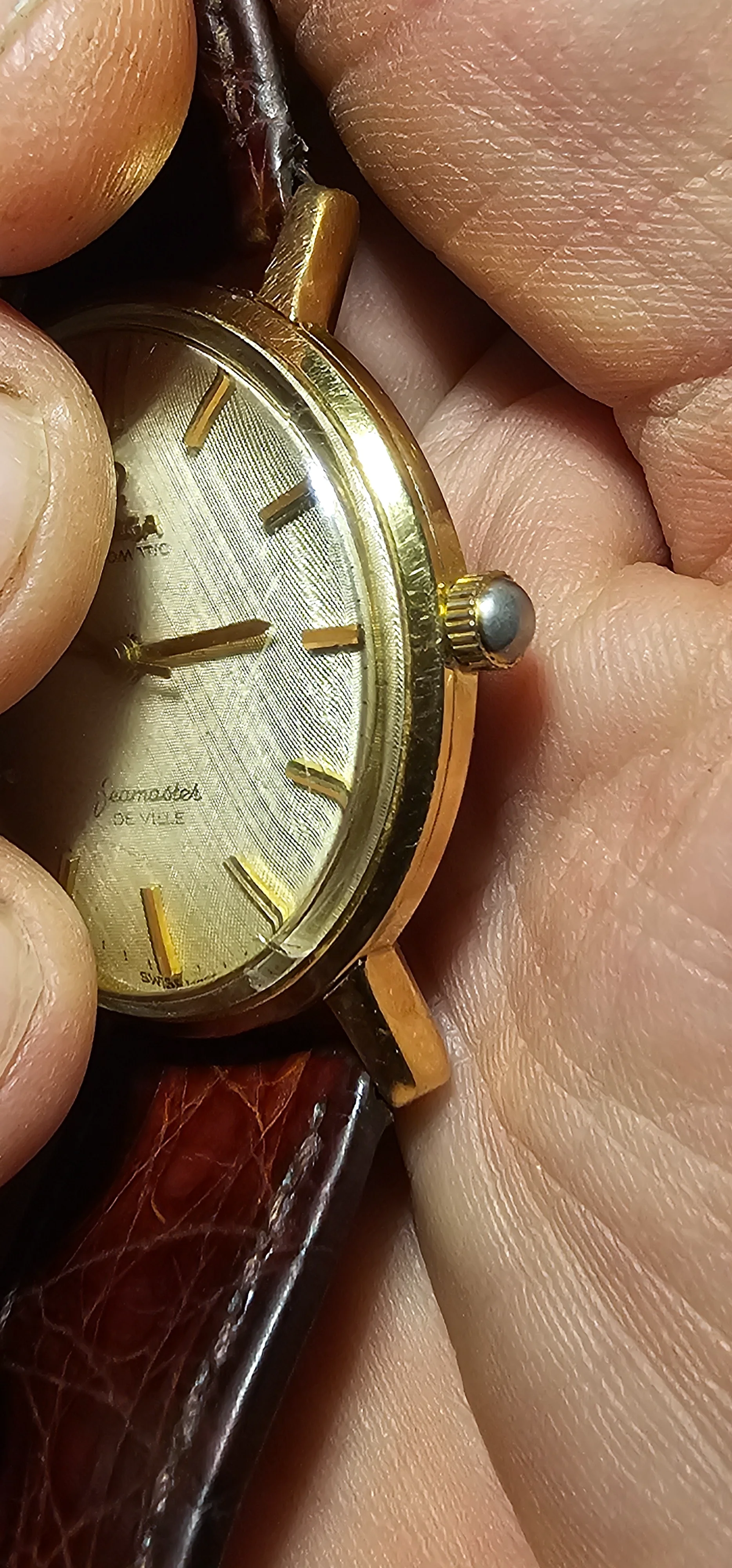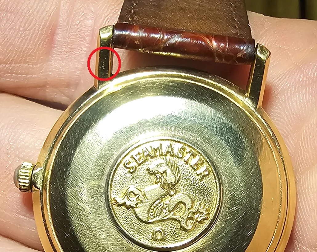 The crown appears to be missing the Omega logo capping. Or maybe its the wrong crown? Also, would anyone know if the case is gold plated/filled or solid?