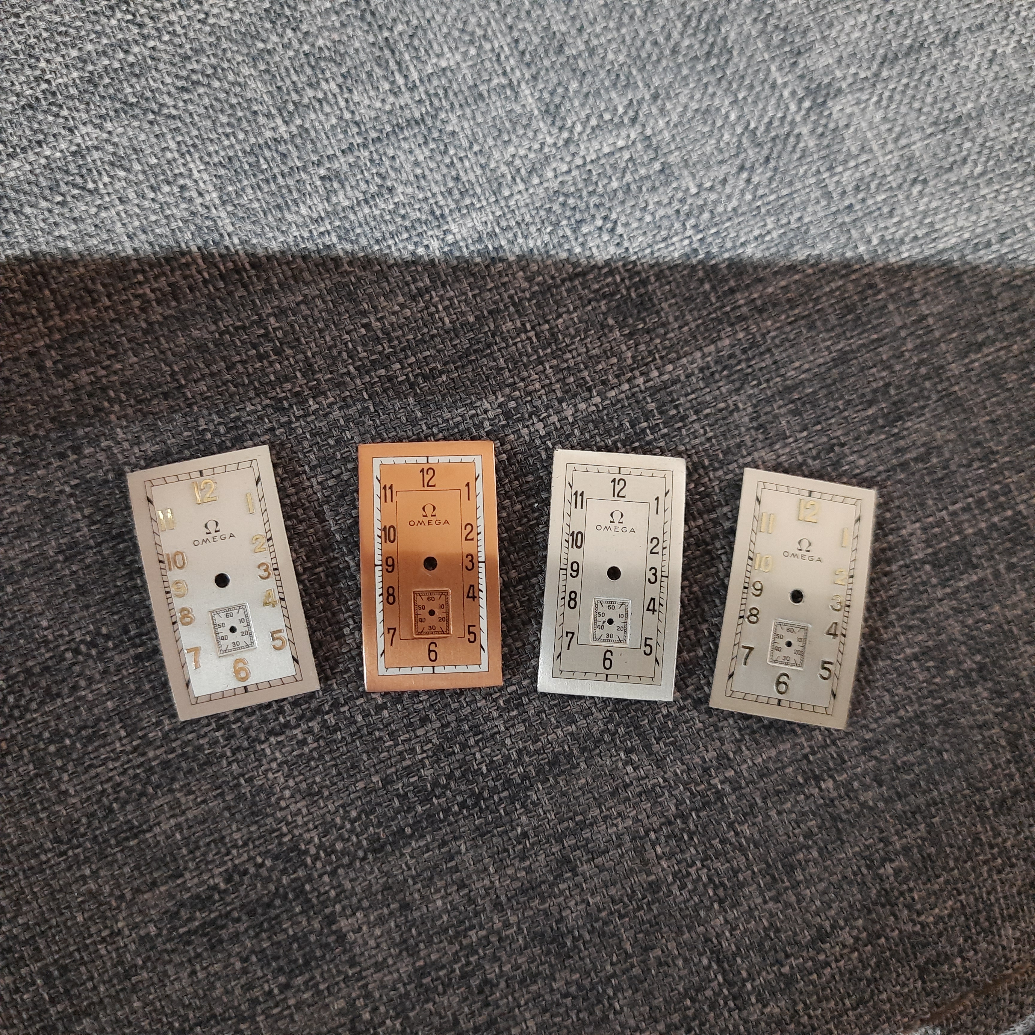 Recently I acquired these Omega dials, however, I don´t know if are to T17 Omega Tanks. Rear of dial is stamped “Lemrich Suisse”. Measures 1.5 x 2.7 cm.