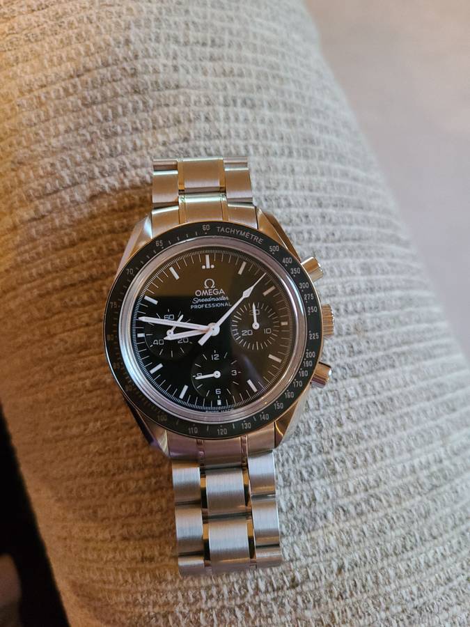 I am potentially looking at buying a used Speedmaster. I only have the following pictures from the seller. He says it was given to him as a gift a few years ago and he never wears it. Says he threw the box/papers out.