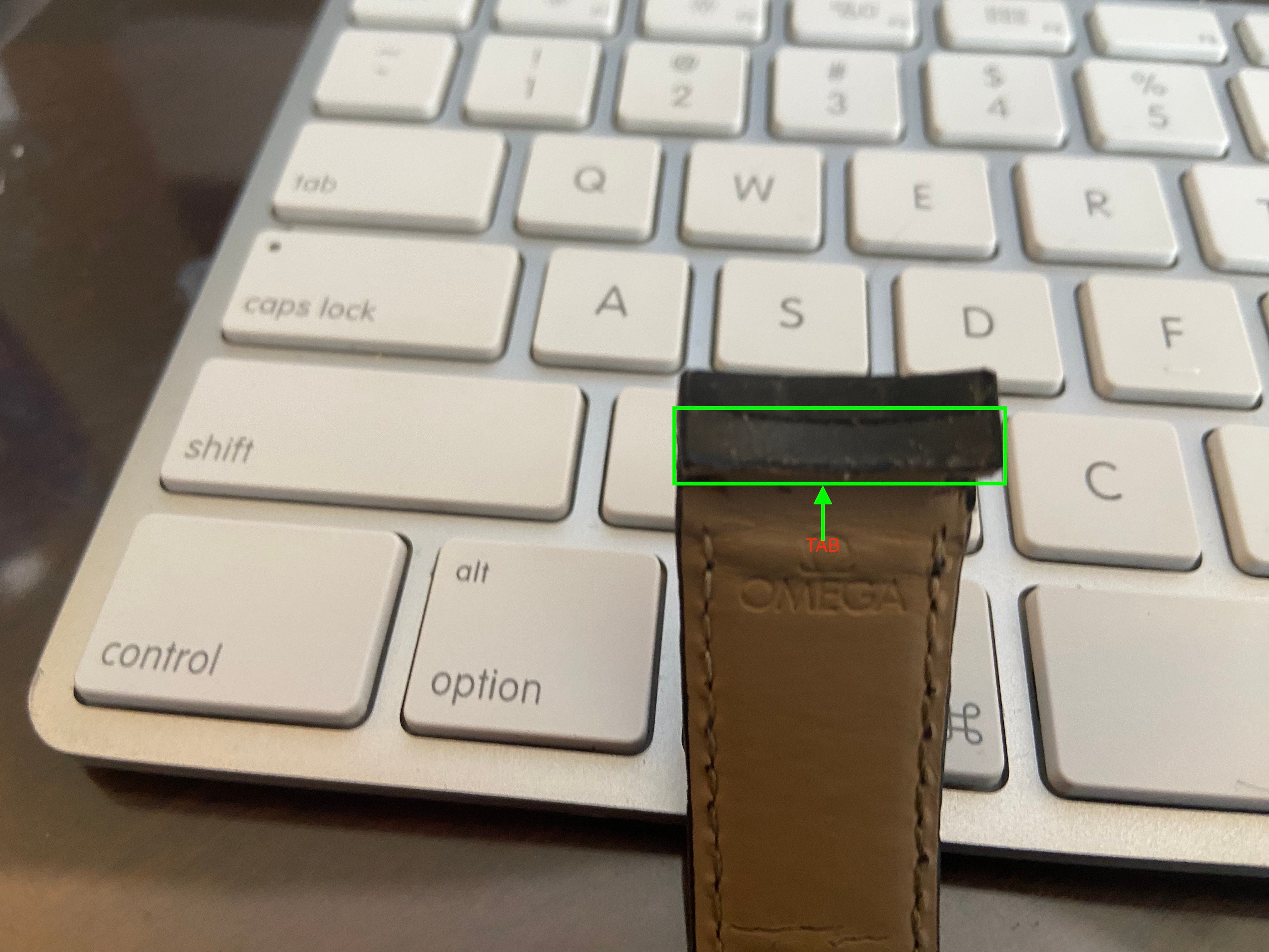 There is a 'tab' that kept the new strap from fitting (Example 2).