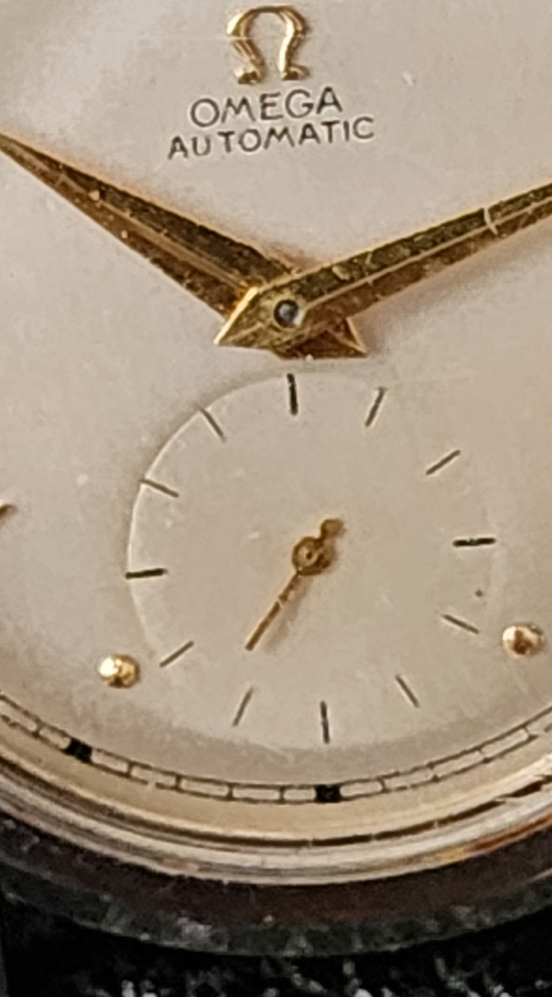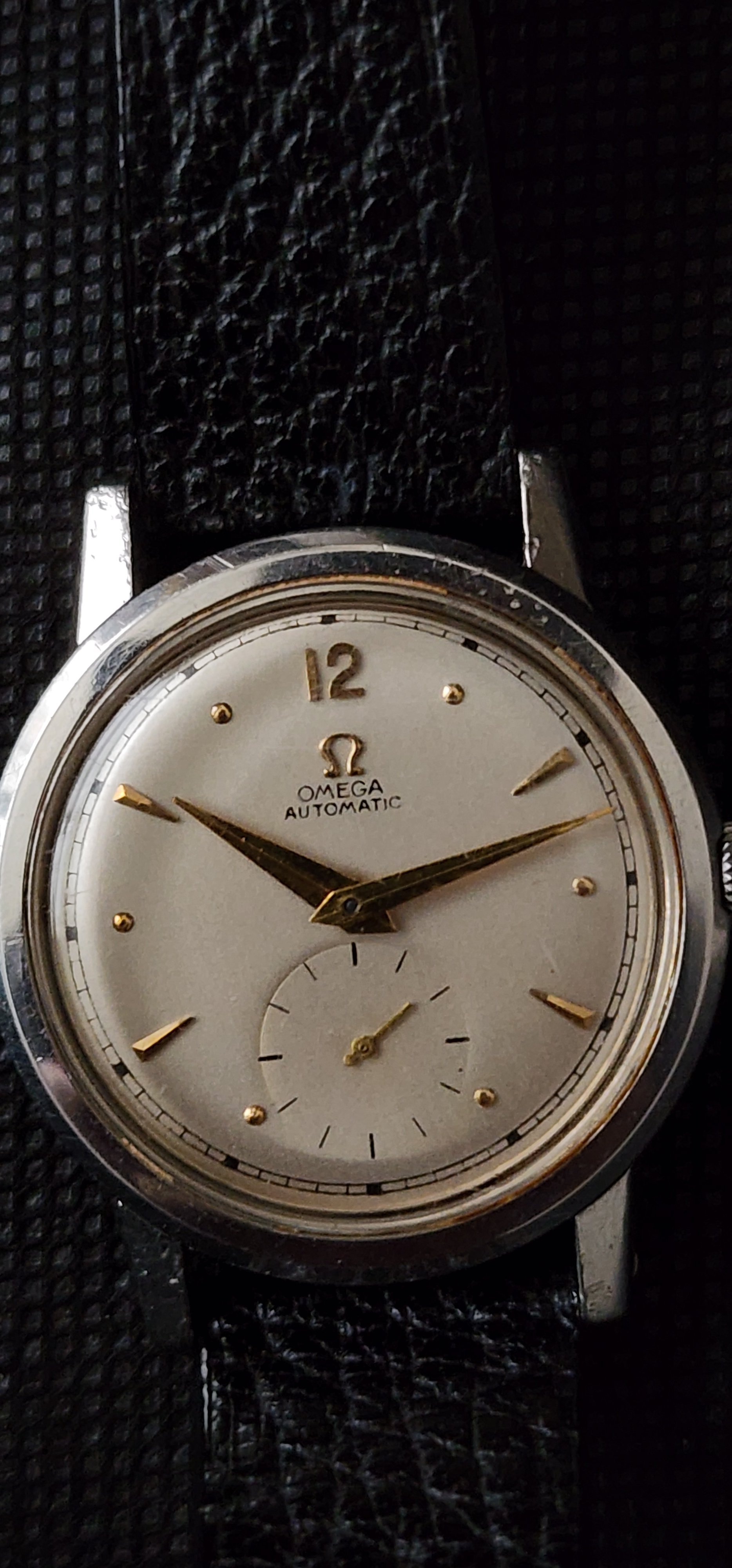 ·Hi, I hope to get some feedback, opinions about this vintage bumper Omega watch which I got from Ebay for about $320.00 (USD.) It works and winds smoothly. It keeps time relatively well. Although I think the bumper movement might be missing the springs since it seems to "bump" harshly/agressively (for lack of a better term) as compared to my other vintage bumper Omega watches. I also find the case as a bit odd (not an expert here.) in terms of the lugs. The dial seems too clean which I think was well done if it was a re-dial and I believe the hands specially the sub-dial hand are replacements. There is no Swiss on the bottom of the dial, at least nothing visible.