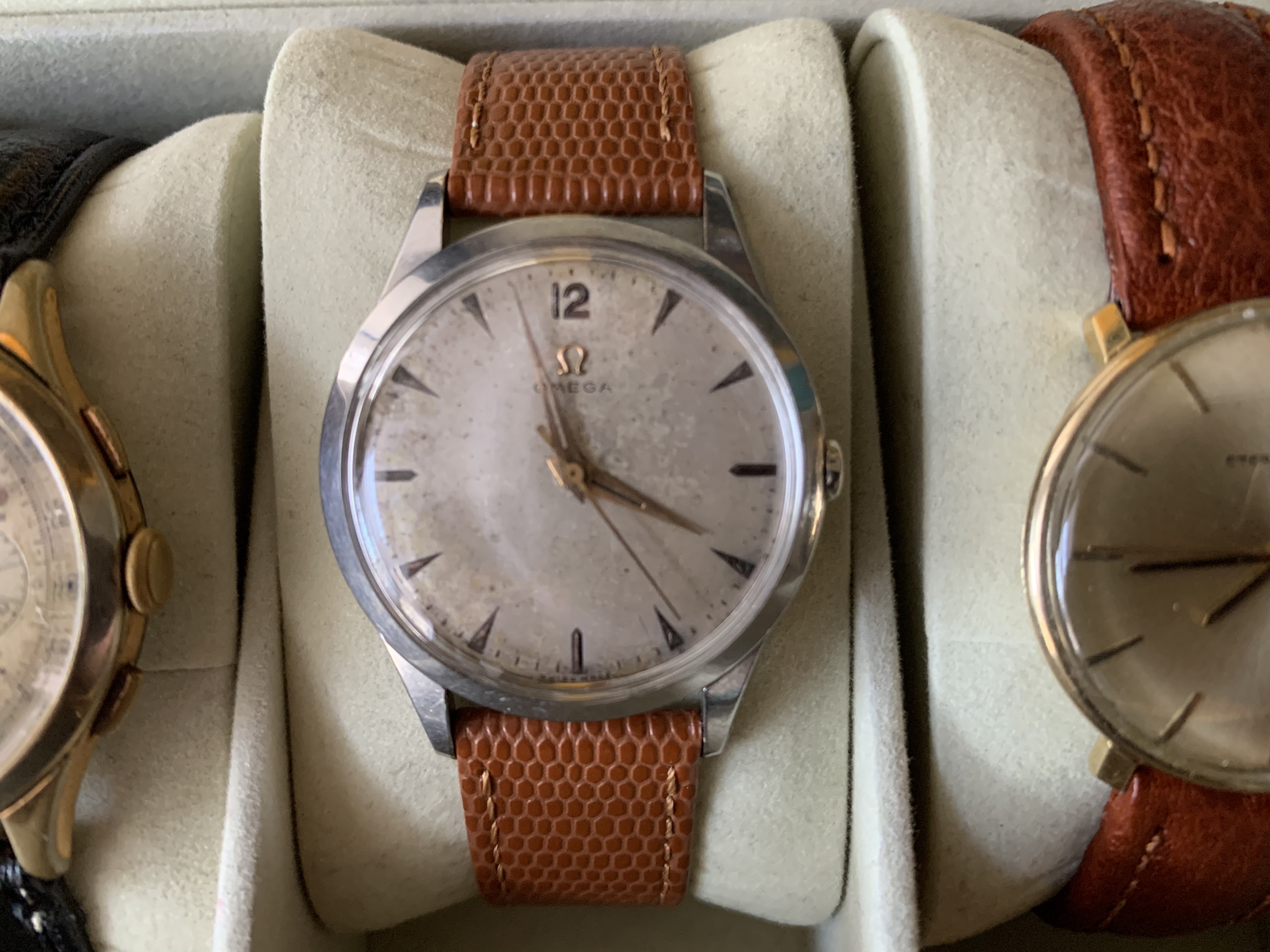 A watchmaker can open it for you to get pictures of the inside, both the movement (mechanism) and inside caseback will help ID. All that I can say is it looks to be from the 1950s based on the metal logo on the dial. Others here are good enough to sometimes ID from the outside.