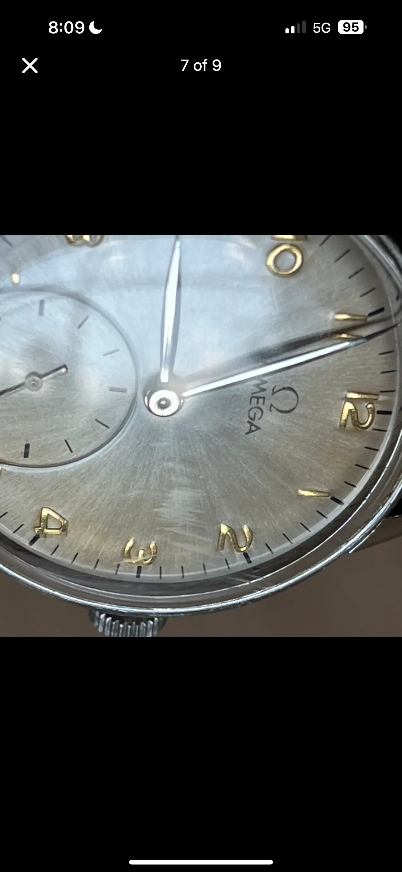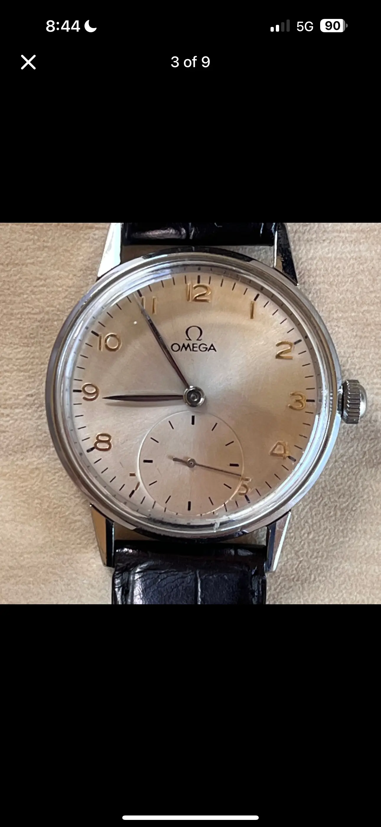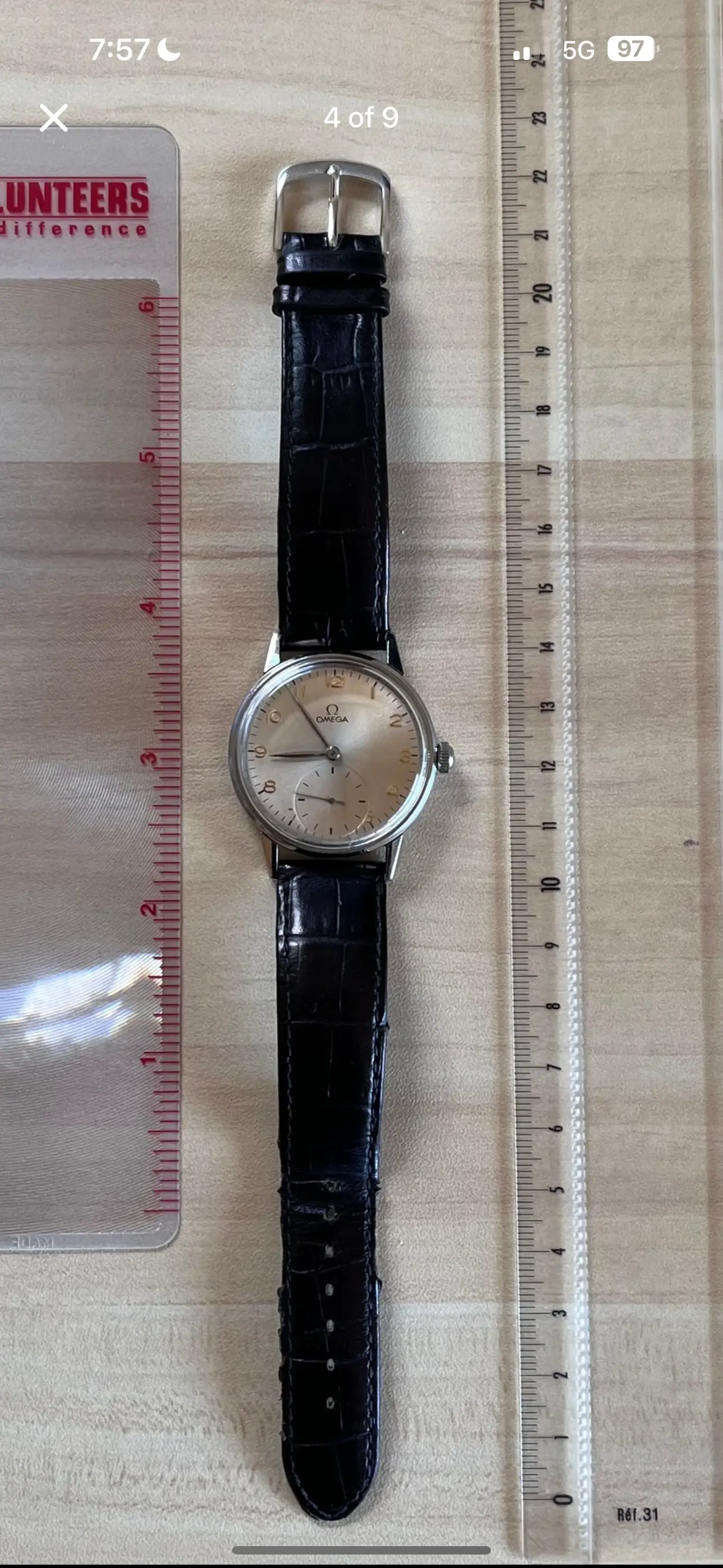 Mechanical works perfectly, Sub-second dial. Width is 33.5mm. Some scratches on the dial.