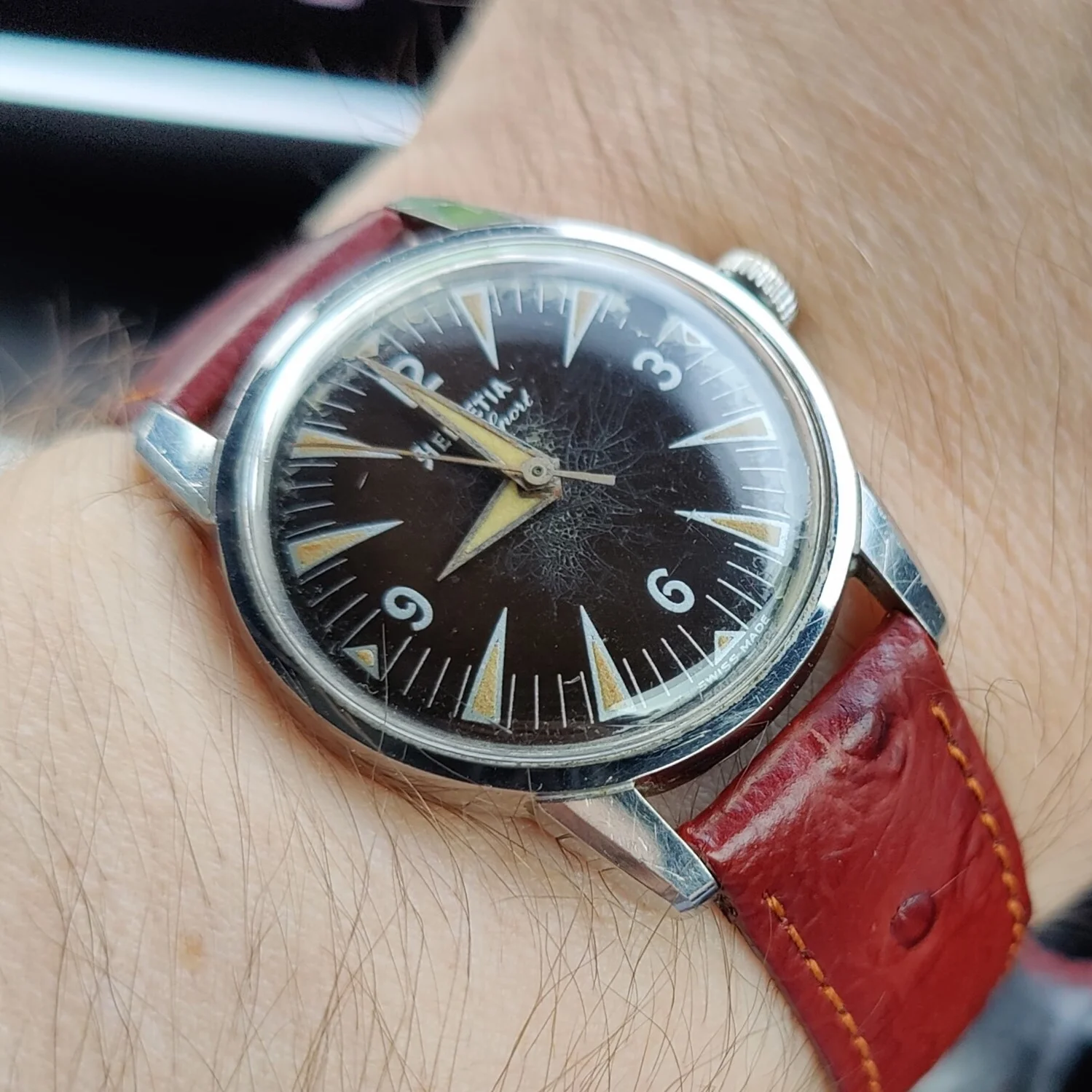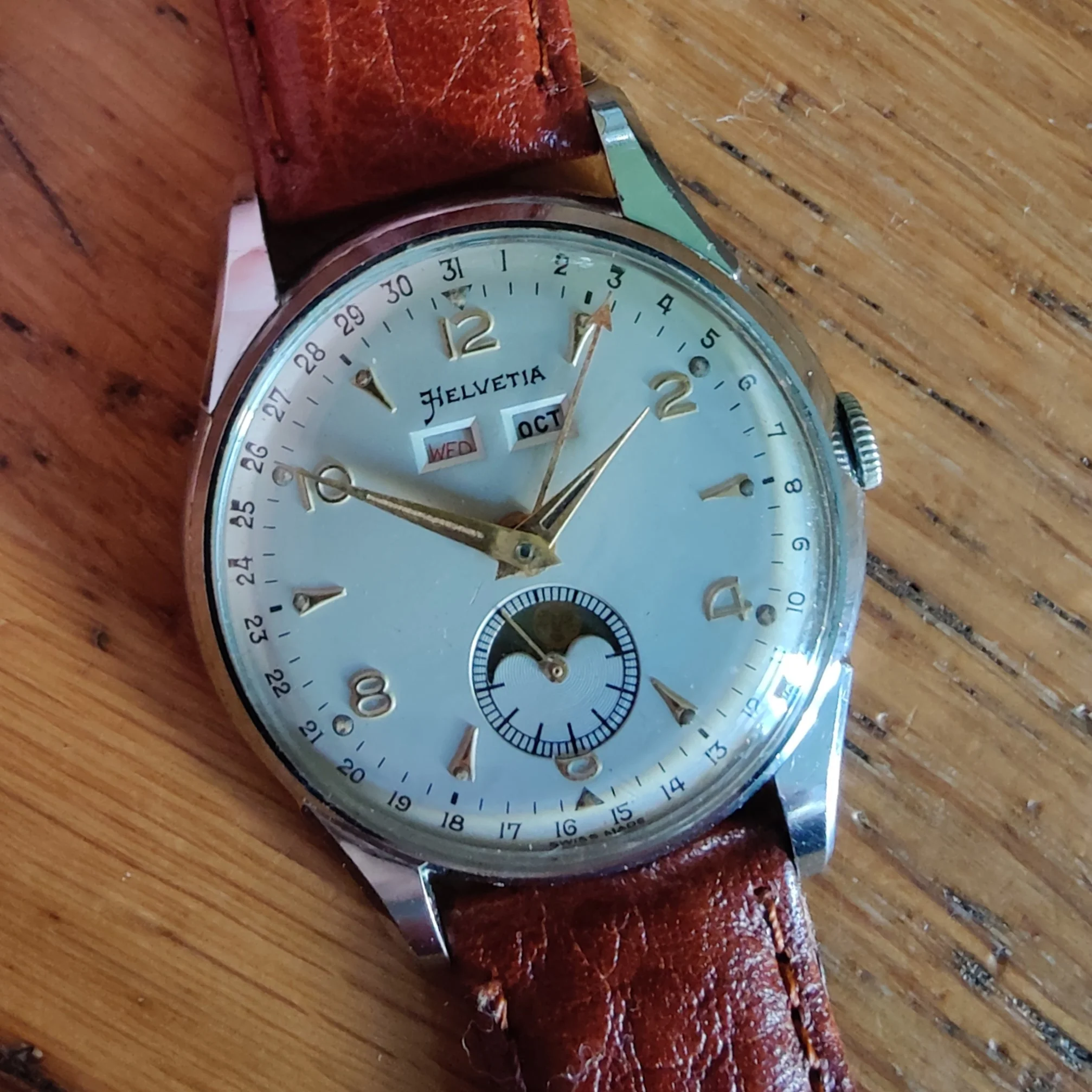 The triple calendar moonphase is lovely Carl, congratulations. Quite an open looking, uncluttered dial for all the info, is it 35mm or above and stainless steel?