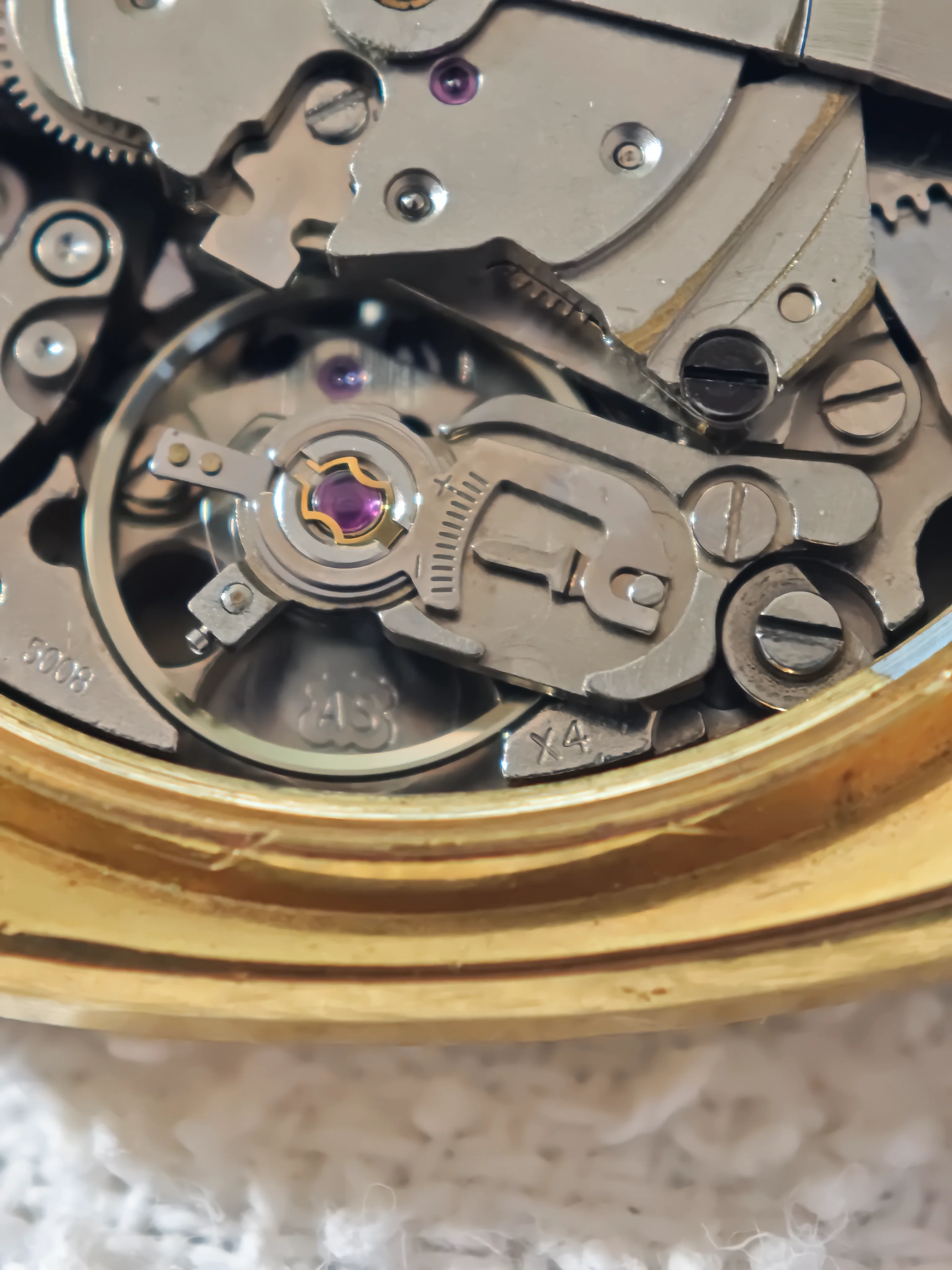 It sports a super cool A. Schild movement AS5008, Alarm ( self winding) Day/ Date Automatic with Hacking all whizzing along at 28,800 BPM.