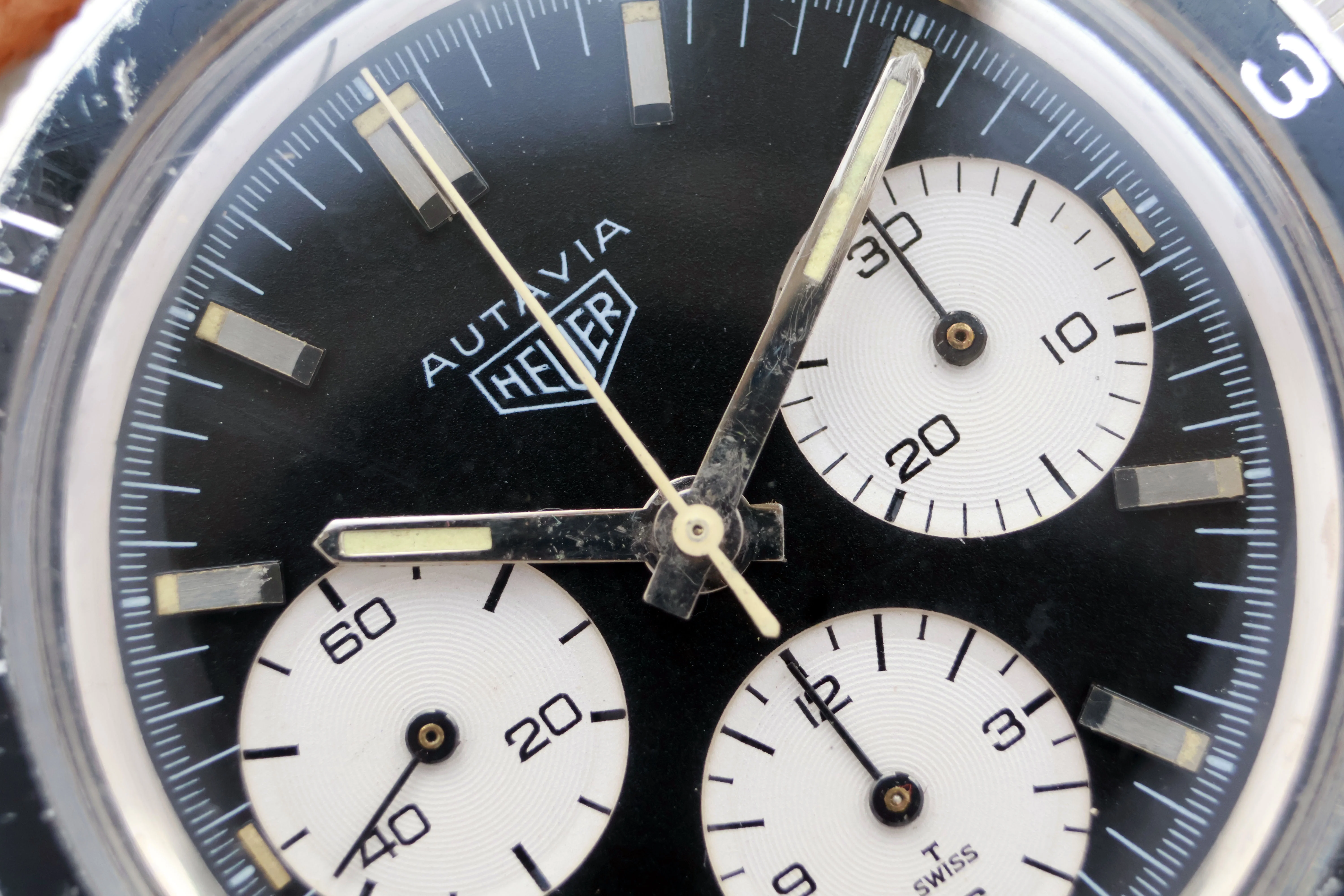 Case: Hard to capture on camera but the bevels can still be seen clearly also the caseback and the Heuer text is easily readible. On many examples the text on the caseback has somehow disappeared. Serial can be easily read between the lugs. The pictures don't do justice to the condition.