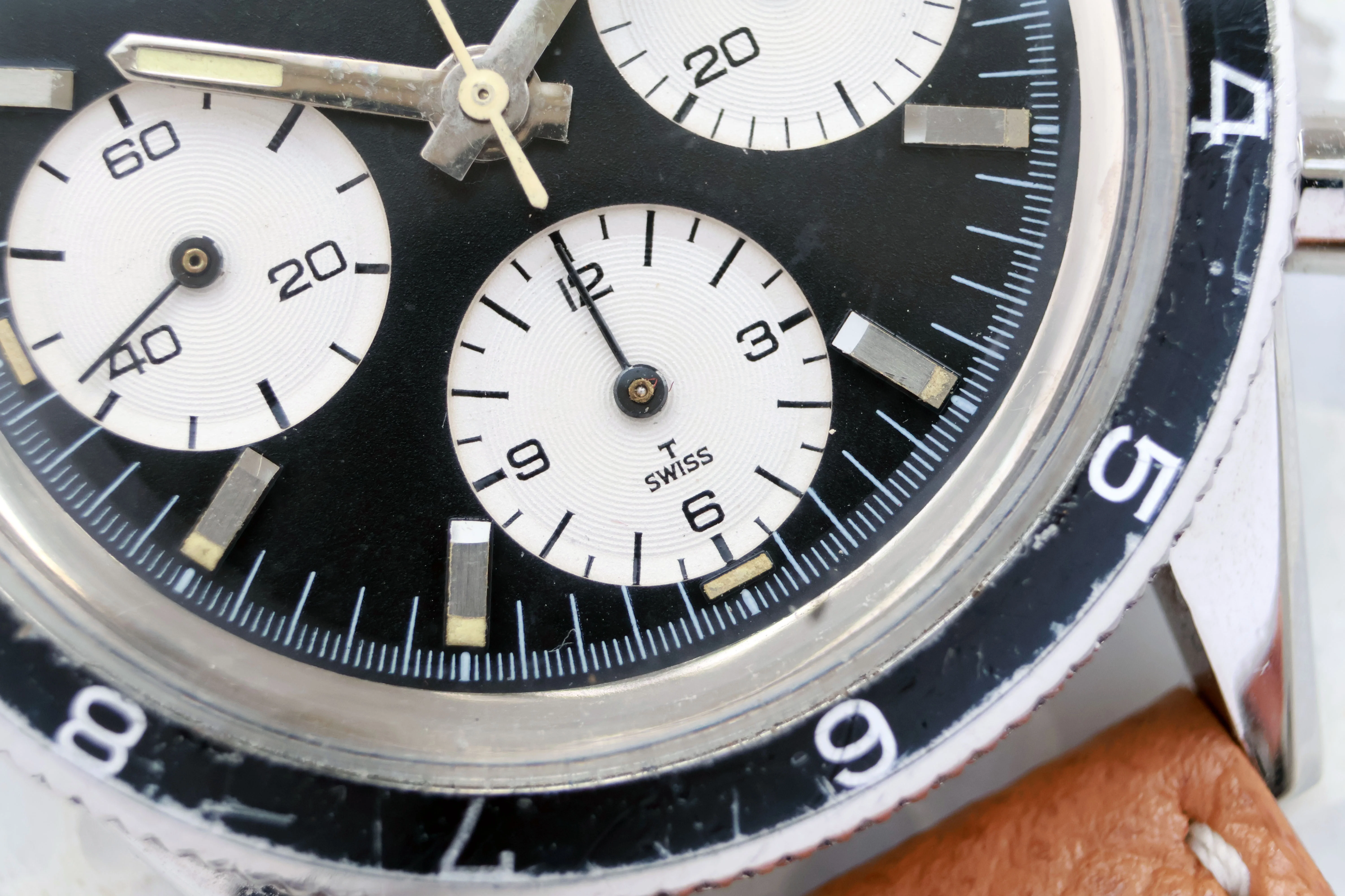 Dial: Nice dial with hardly any patina, almost all lume is present. In some light you see a kind of wipe between the 53 and 54 minute mark.