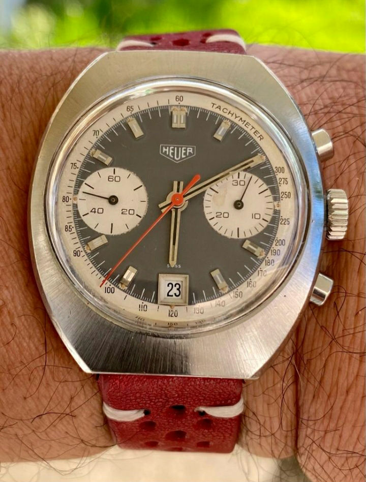 Current owner purchased the watch from a "respected vintage collector". The collector parted with the watch in trade with the current owner for another "special watch" that I presume the collector desired. It was last serviced in 2018 (approximately). This has the charcoal colored dial which is apparently the even rarer version. I haven't gone past obtaining the basic information above so I'm guessing the current owner is valuing this Heuer at about $2250.