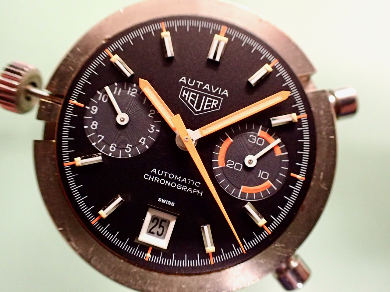 Dial & Hands: absolutely flawless and in excellent condition. The vivid color combination of bright orange and black is stunning and quite attractive. It’s what draws you to this watch. There are no cracks on the lume and the orange paint on the hands are in pristine condition. No blemishes or discoloration on the dial and markers to speak of, just spectacular condition for it’s age.