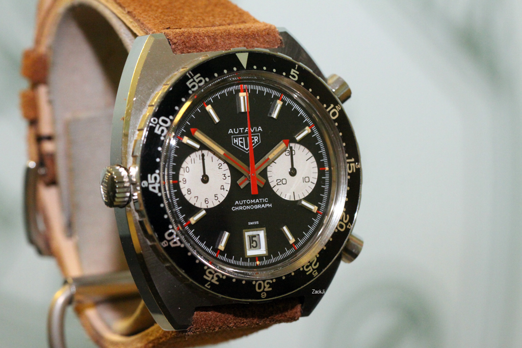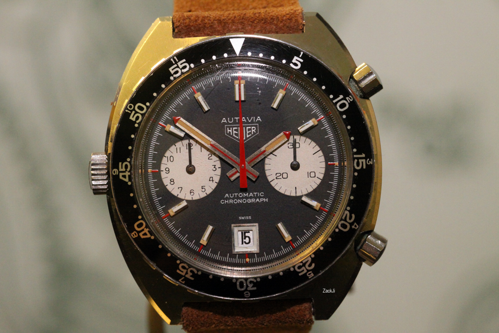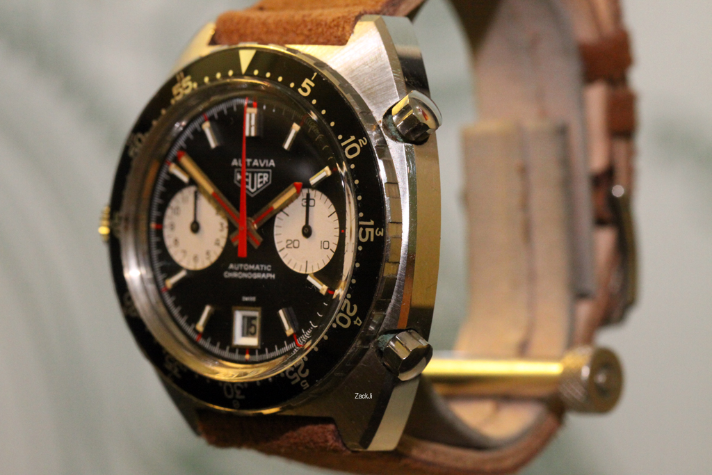 ·Here is non-Viceroy case (lack of V inscription between the lugs) and minute hour bezel (MH rather than the tachymeter) Heuer Autavia 1163, commonly known as the pre-Viceroy as it has the Viceroy colorway but has the older style case & bezel. The serial is early in the range, 202xxx.