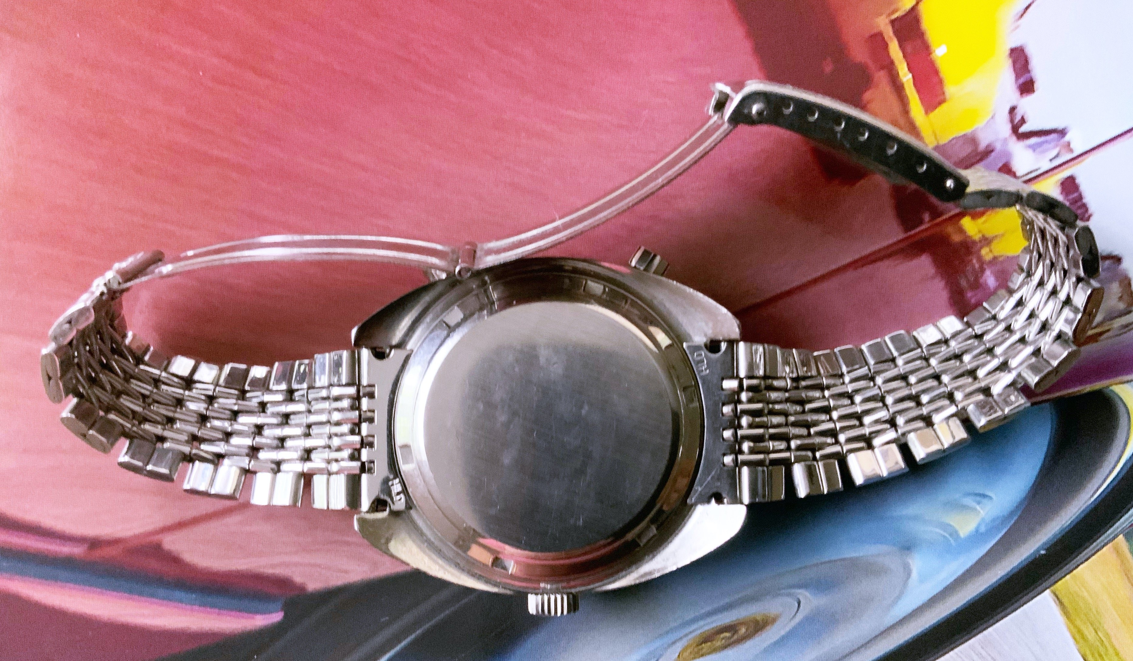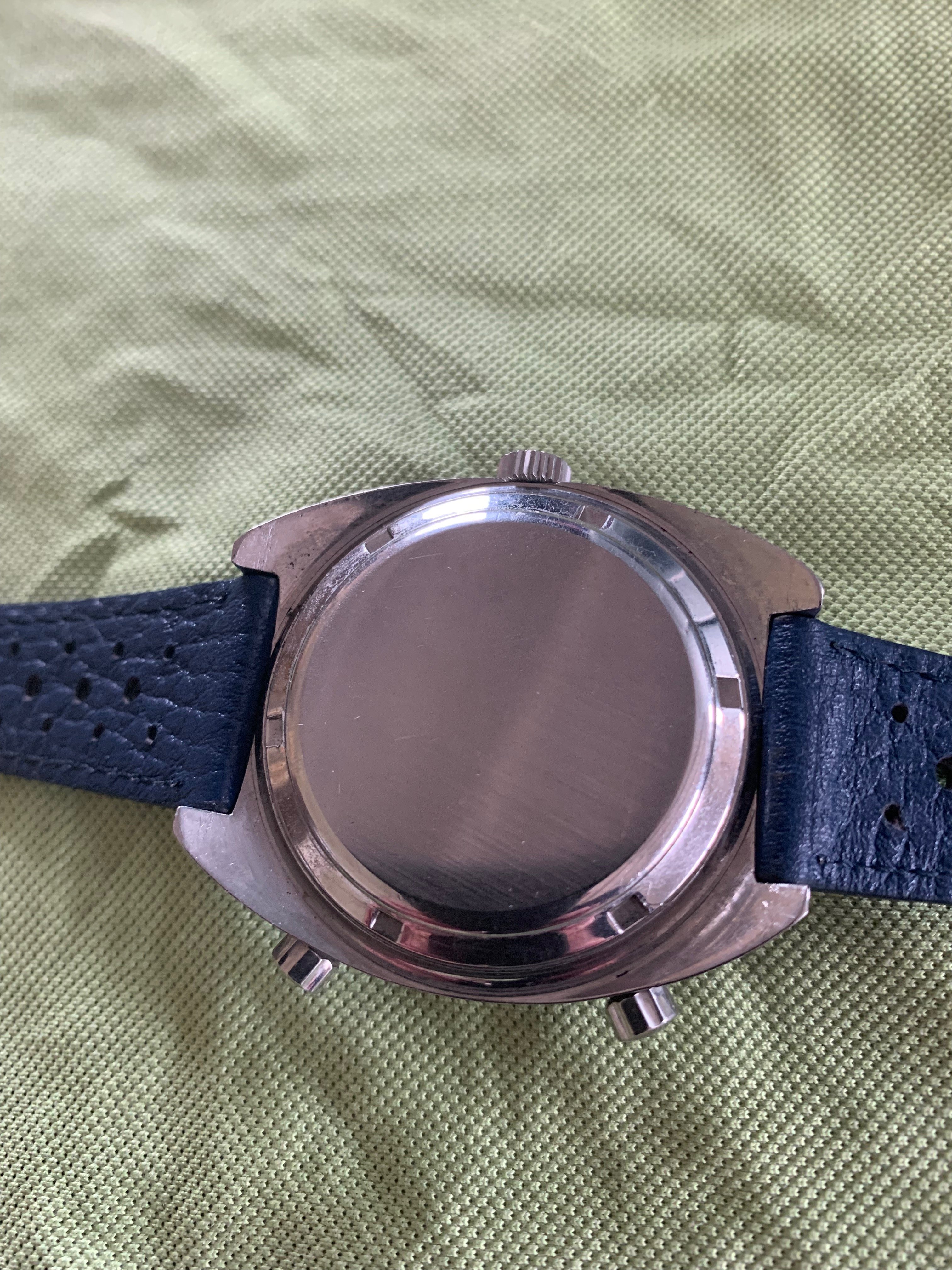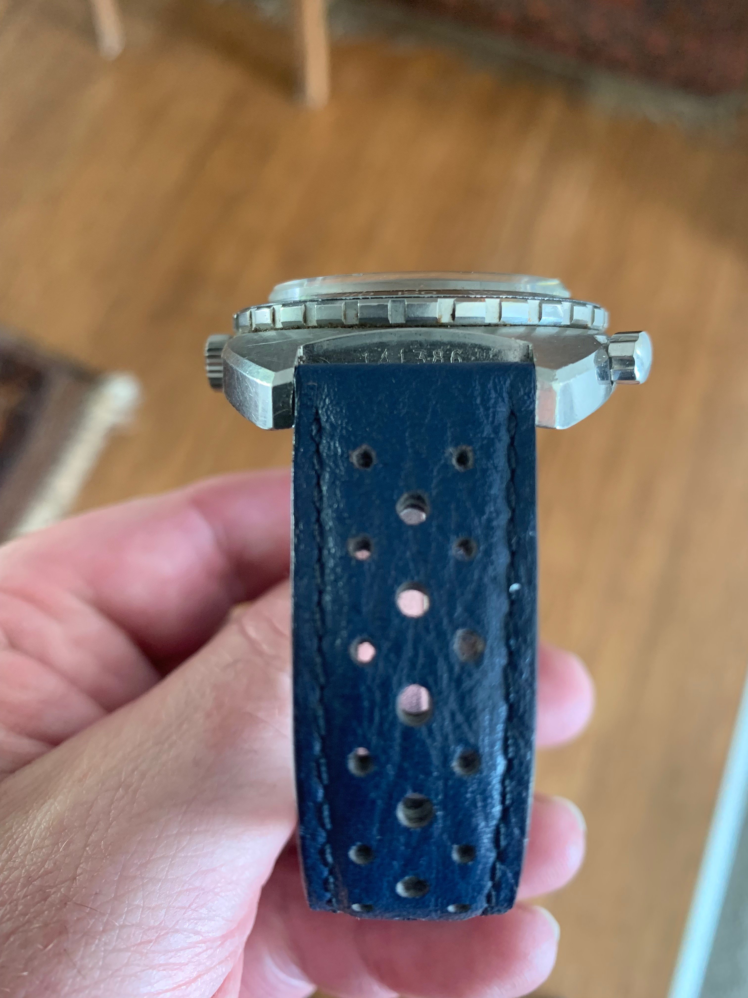 I can go on about the watch but you are best to judge from the photos. It's no museum piece/safe queen - the dial has taken on a creamy patina, there are a few nicks and you will see a reasonable scratch in the brushed surface near the 100 on the tacky. But it's an original, honest, early second execution - the serial number is very close to that of the Chronomatic currently being offered by vintageheuer.com.
