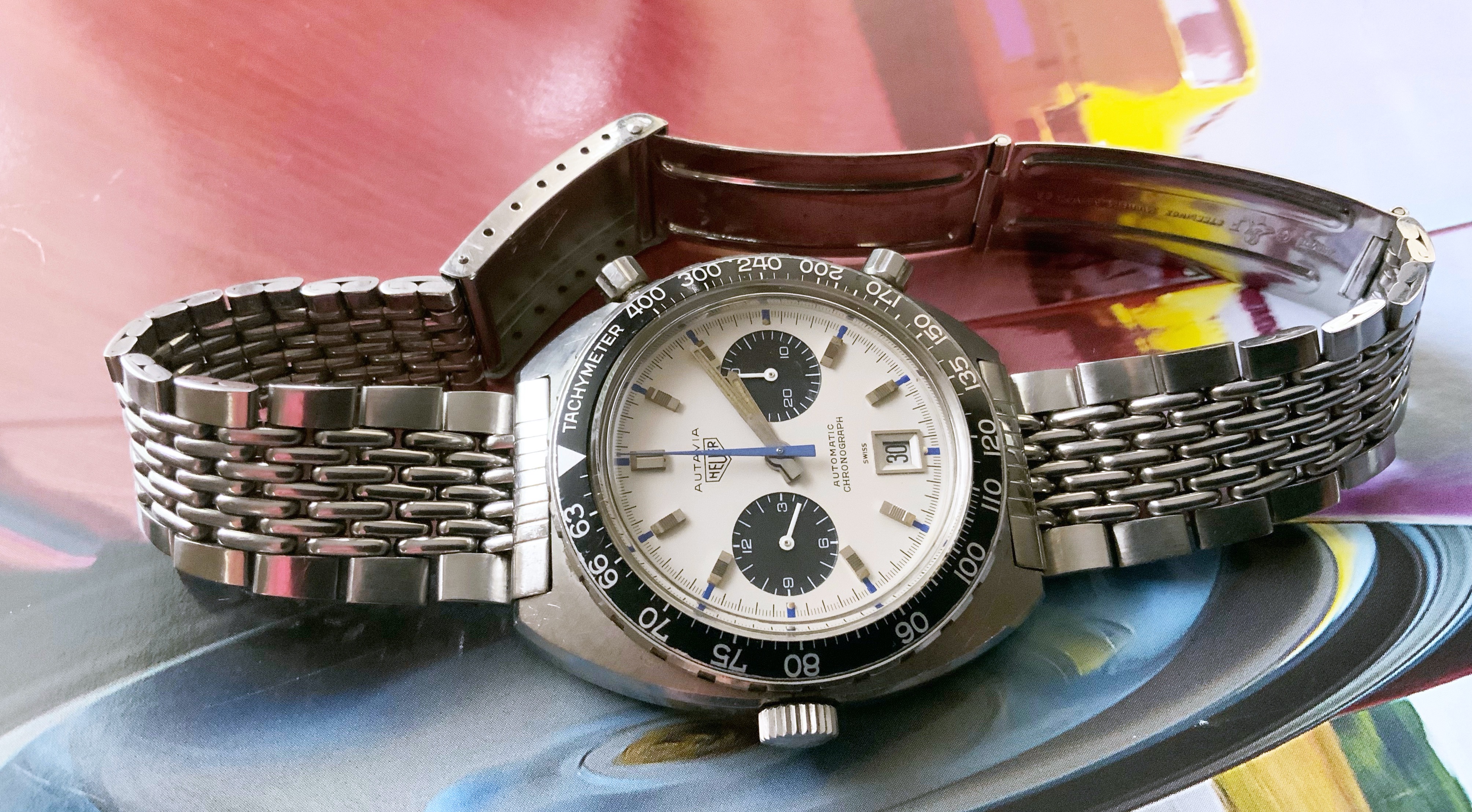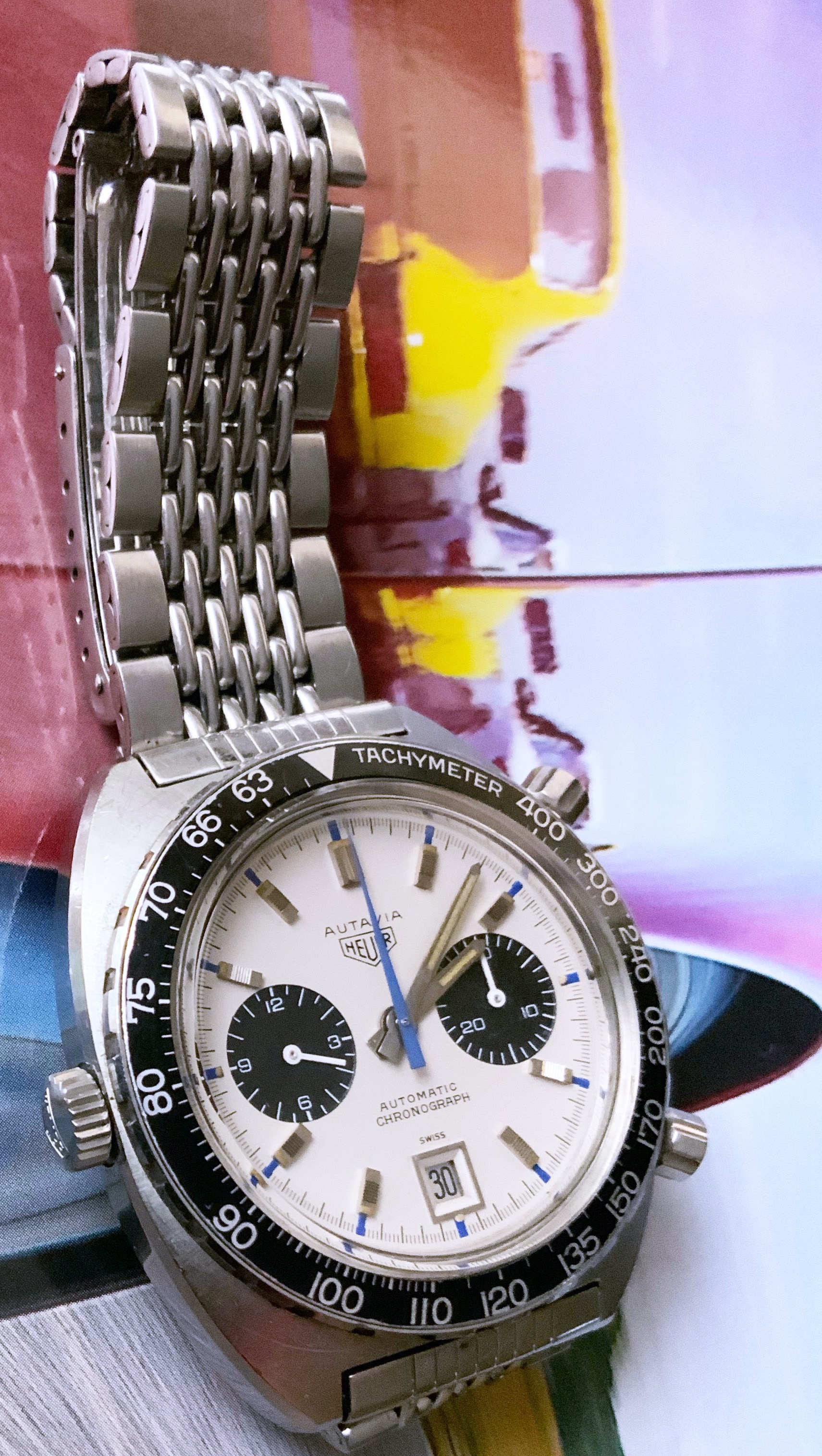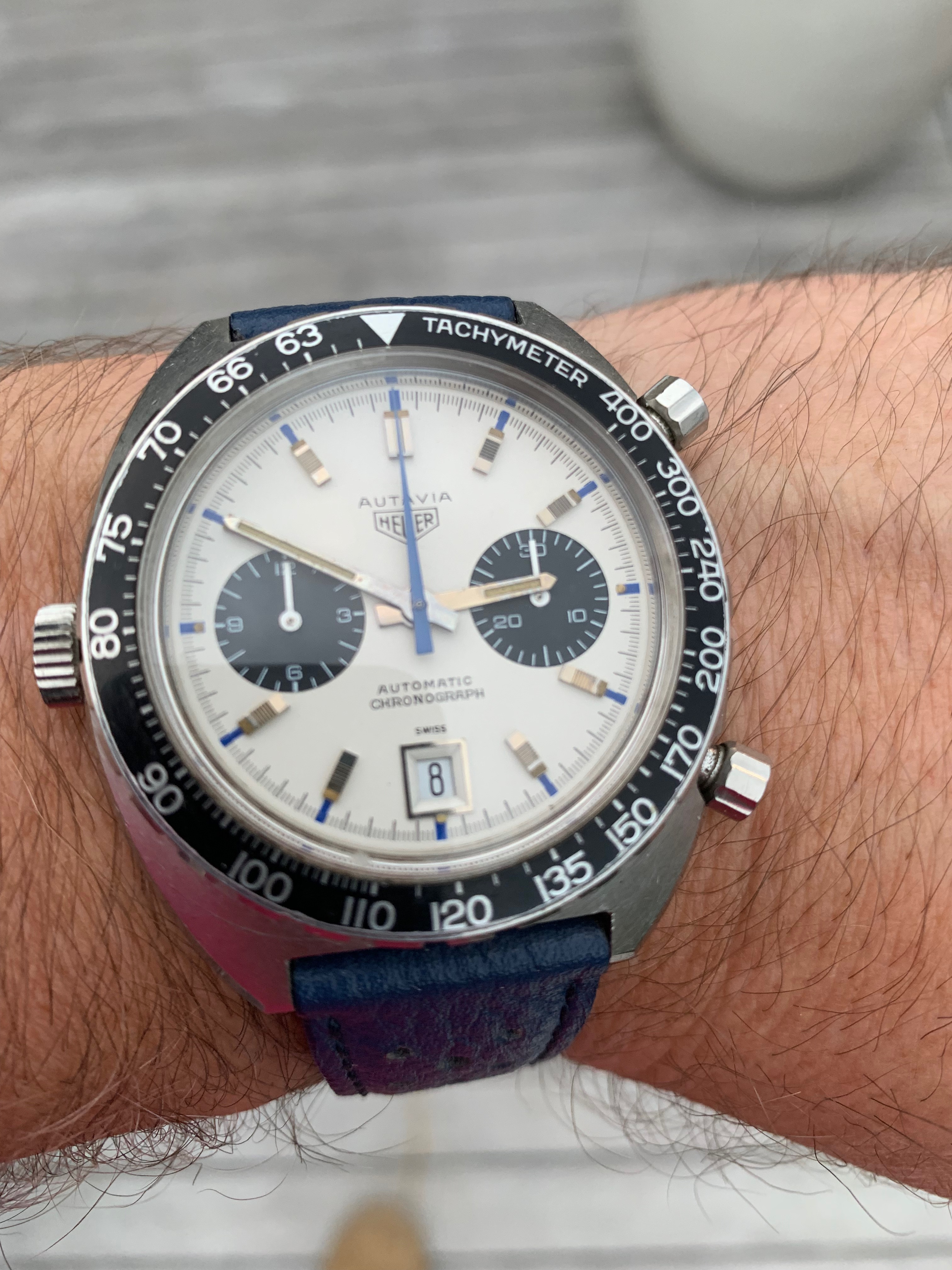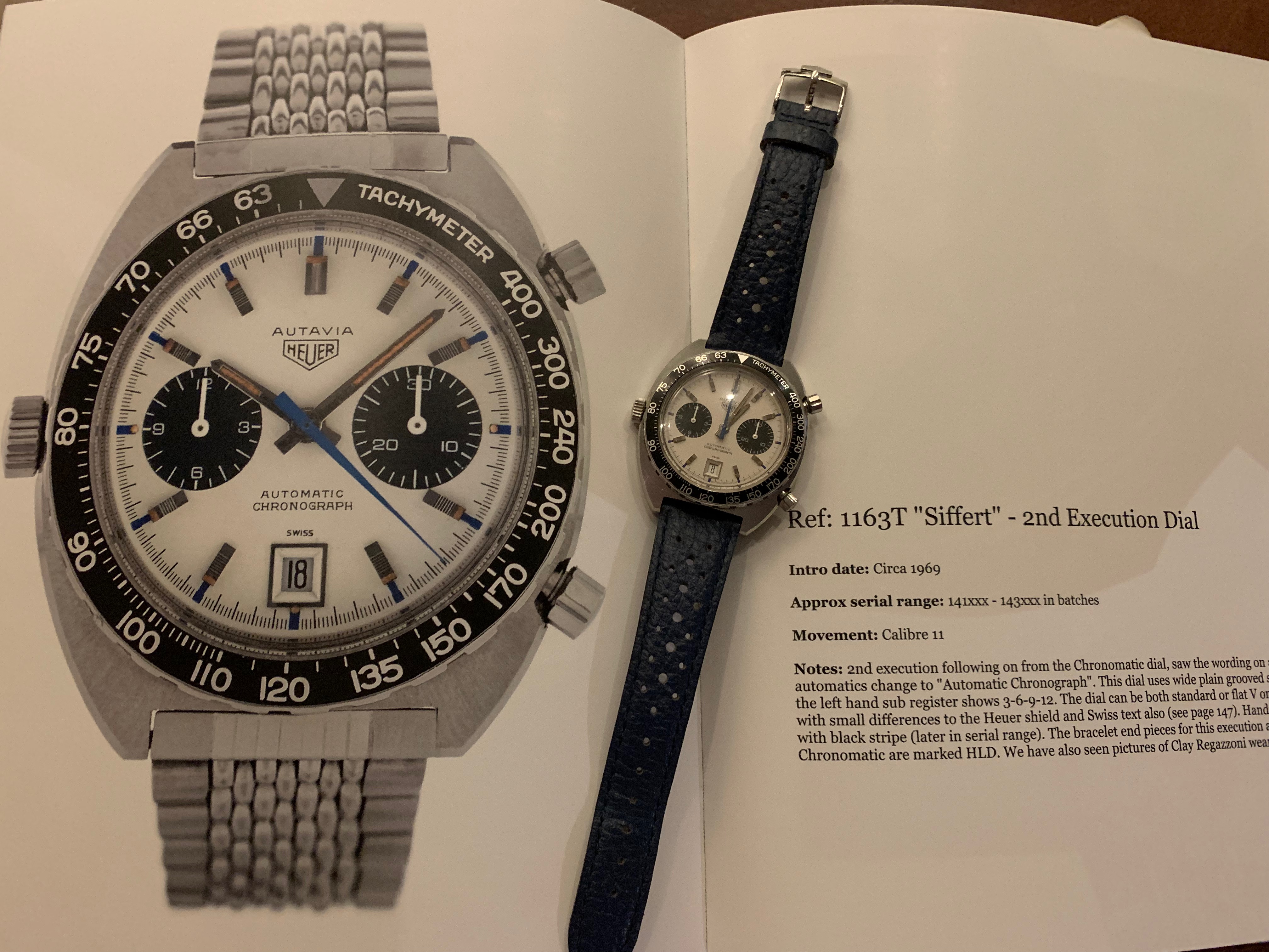 This is my one and only Heuer - the motorsport enthusiast in me fell in love with the Autavia story and the "Jo Siffert" Chronomatic / 1163T in particular. The Crosthwaite/Gavin Autavia book was purchased, research undertaken, experts spoken to, and the web browsed for a lengthy period - resulting in finding this "Siffert" 2nd generation/Mark 2 in a private sale.