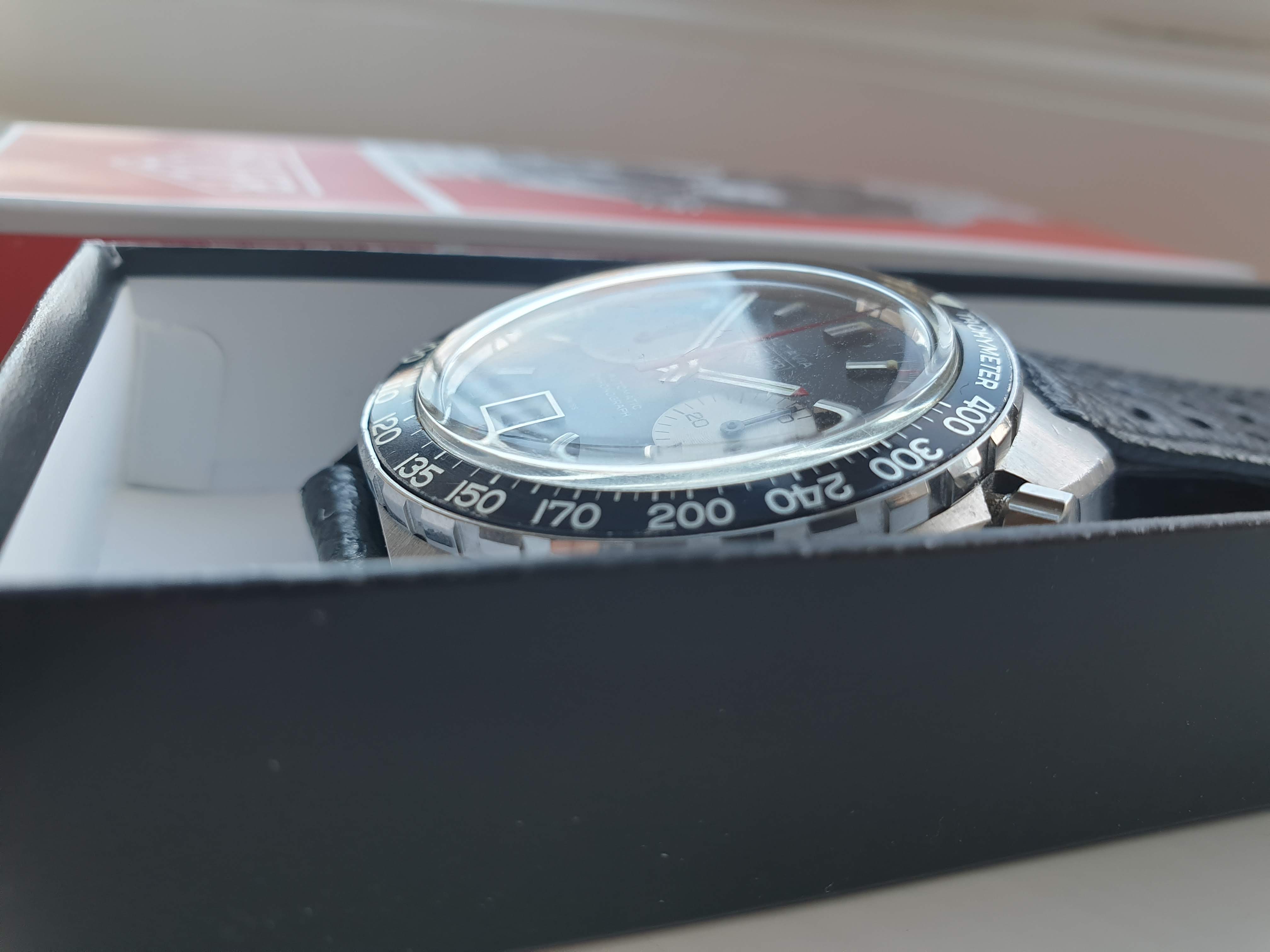 Condition-wise, please study the photos. There are some minor abrasions but no deep dents or scratches. The bezel has a scuff at 6pm. There is some minor paint wear at the edge of the bezel insert but overall this is one of the better vintage Autavia bezels. I believe the watch to be unpolished with original brushing on the top of the case and nice sharp polished edges. The dial is immaculate. Any artefacts seen in the photos will be small scratches to the plexi crystal or dust on the surface.