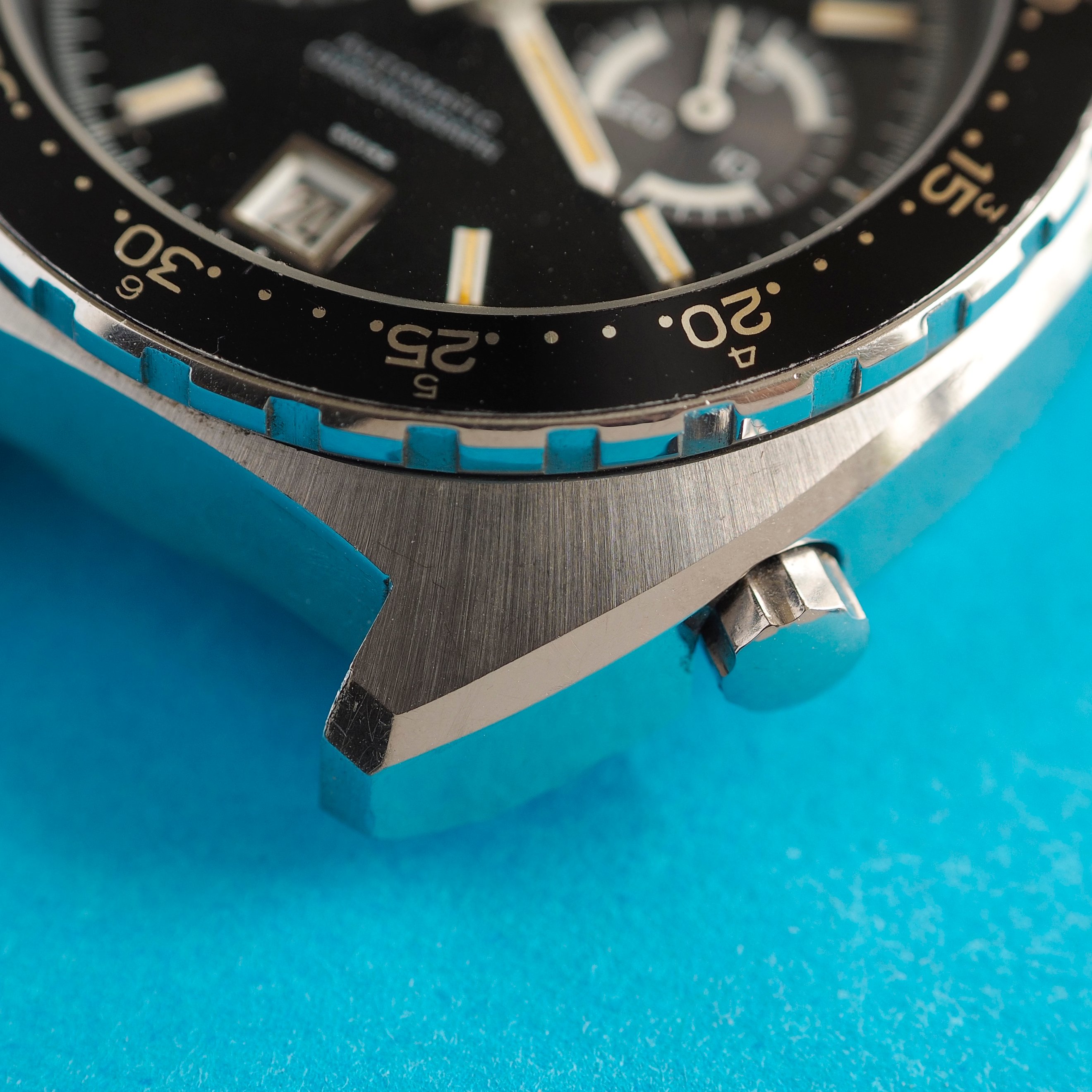 Condition: This Heuer Autavia 11630MH has been worn (see the condition of the lume) but is very well preserved (the condition of the case is incredible). The watch is in all-original condition. A clear plastic sticker is still present on the caseback. Without the presence of watchmaker’s marks inside the caseback, it’s possible that the watch has never been serviced. Although keeping accurate time, a movement service should be considered in the near term.