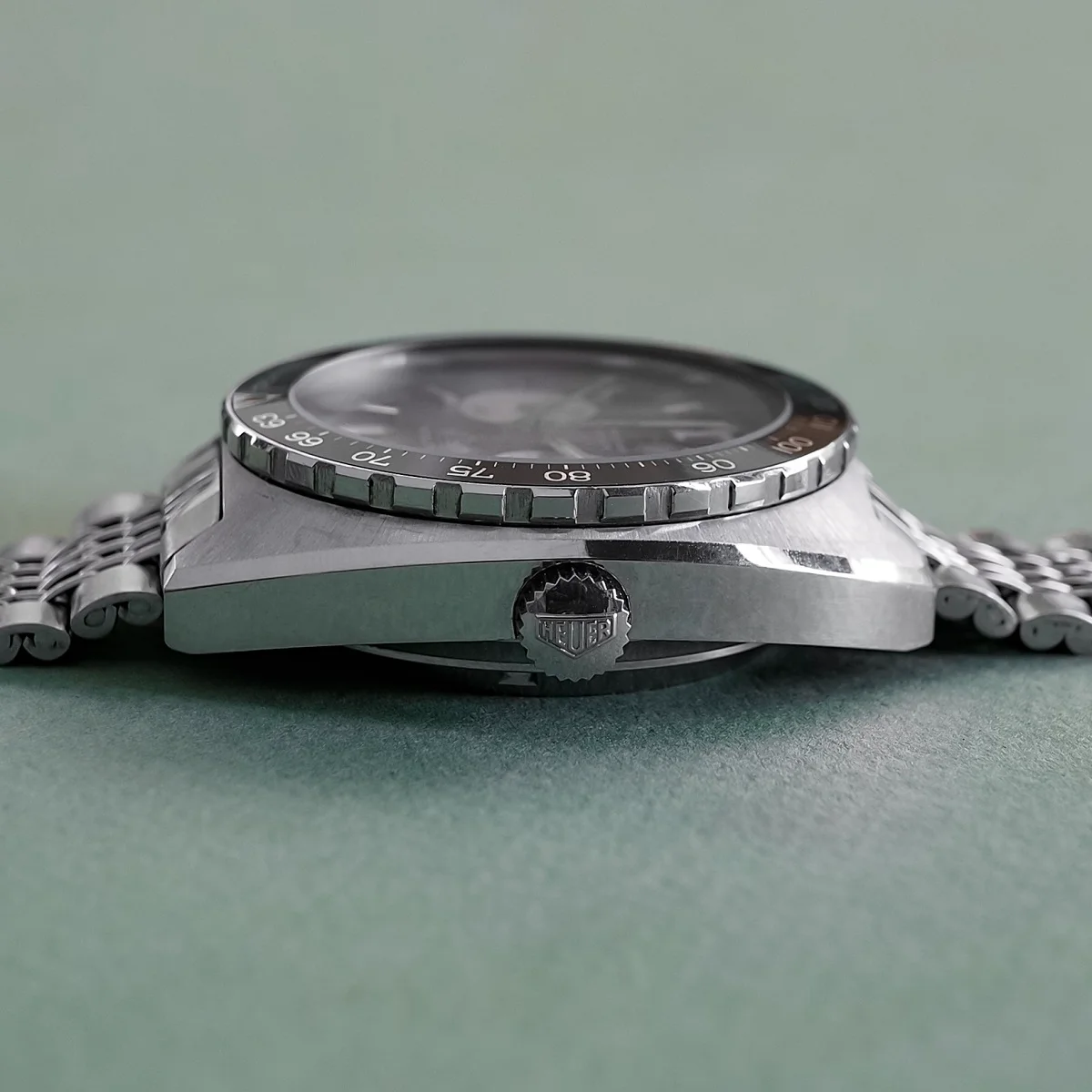 Case / Pushers / Crown: Super sharp case measures 42mm in diameter. Lug width is 20mm. Original pushers. Heuer signed crown.