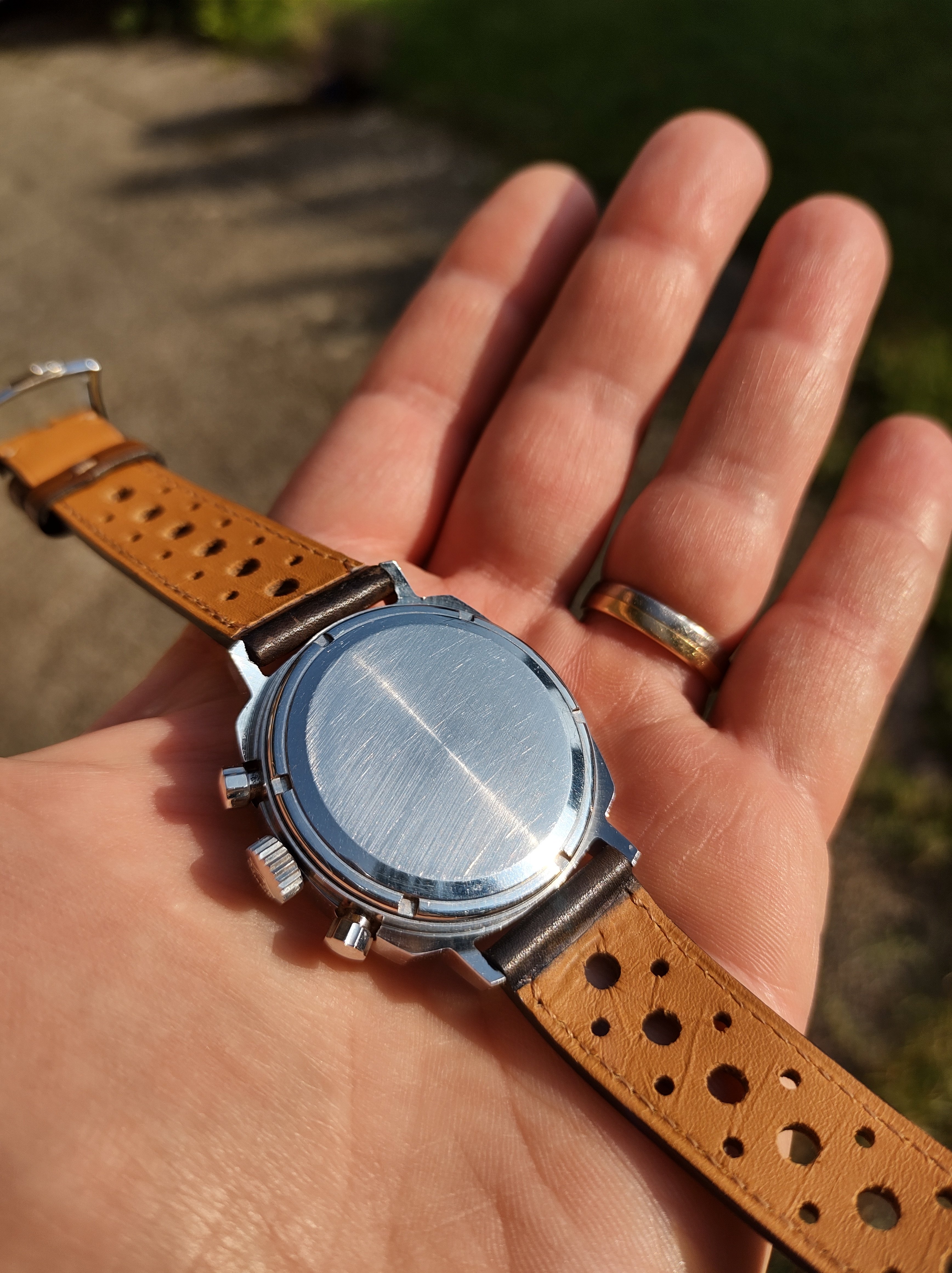 As with most watches that have imperfections, they are way more visible on the macros that in real-life: on the wrist, the watch looks absolutely lovely, and exudes 70’s vibes: The color, the funky case, the fluted pushers all contribute to this unmistakenly boot cut atmosphere. I will miss this one when it’s gone.