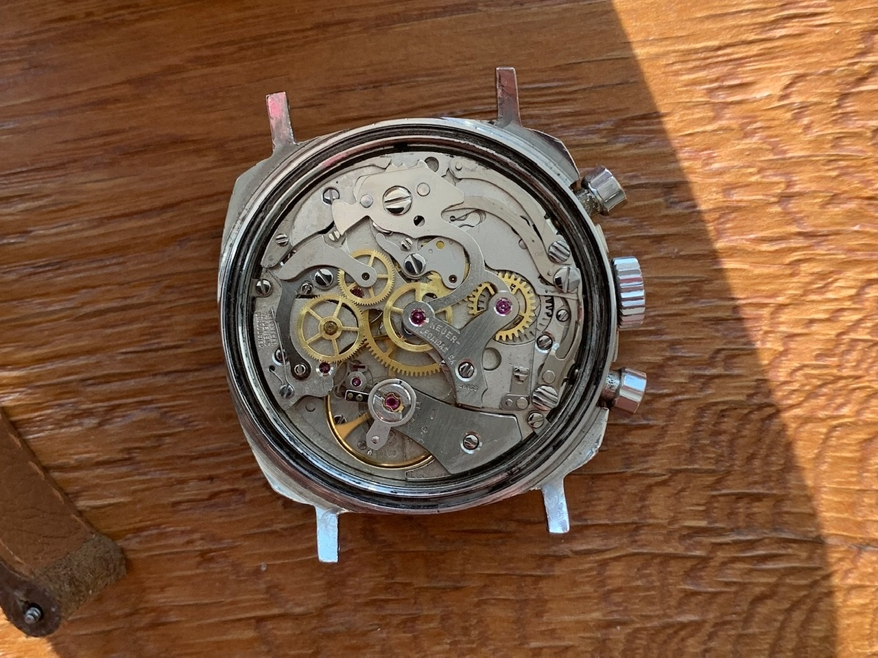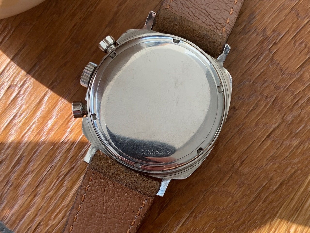 It runs very accurate and the chronograph operates flawlessly. The service history is unknown to me. Serial and reference number are clearly visible with the naked eye as it should be. The engraved additional number on the case back tells us that the watch was sold in the Swiss domestic marked back in the day.