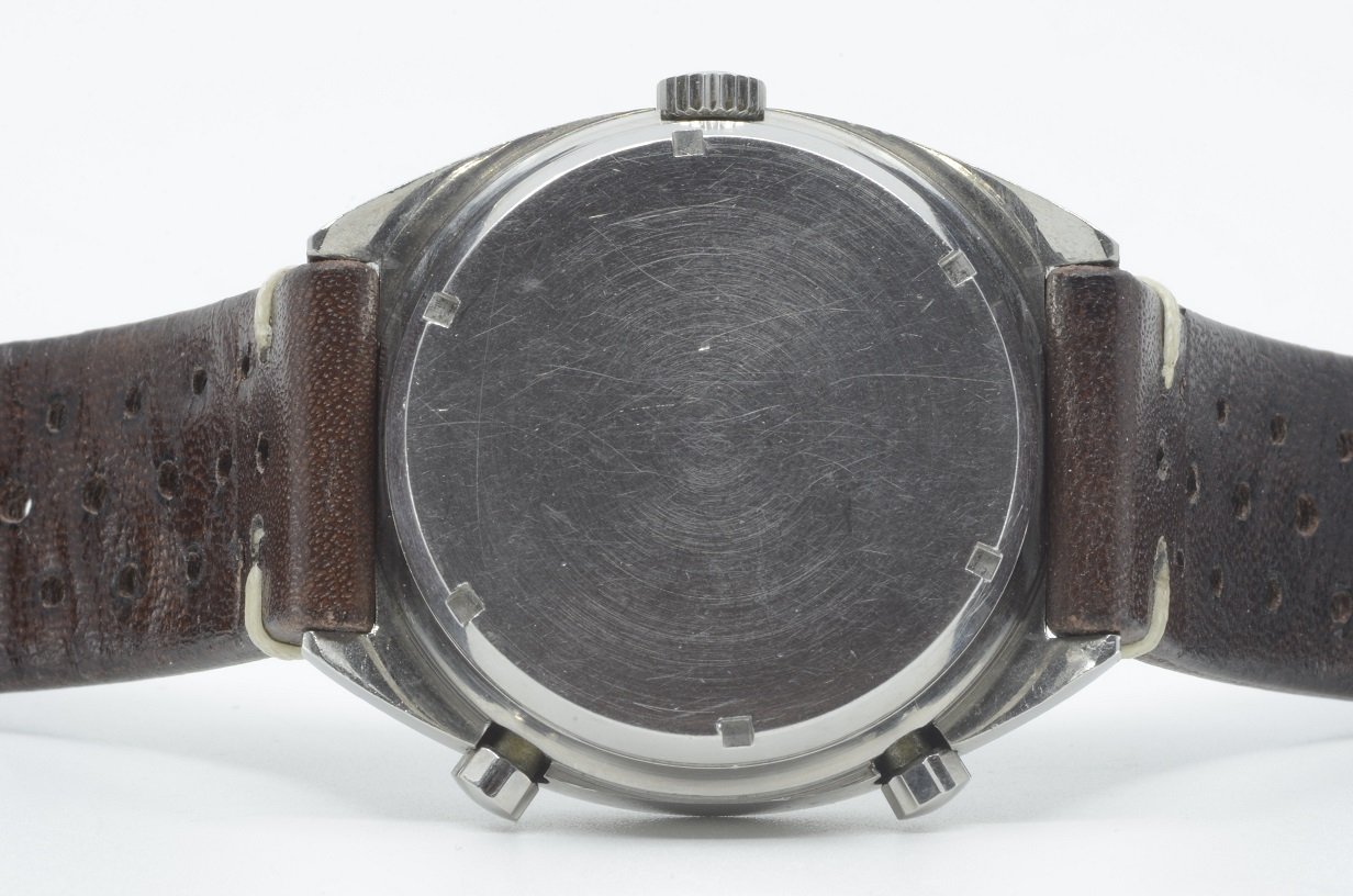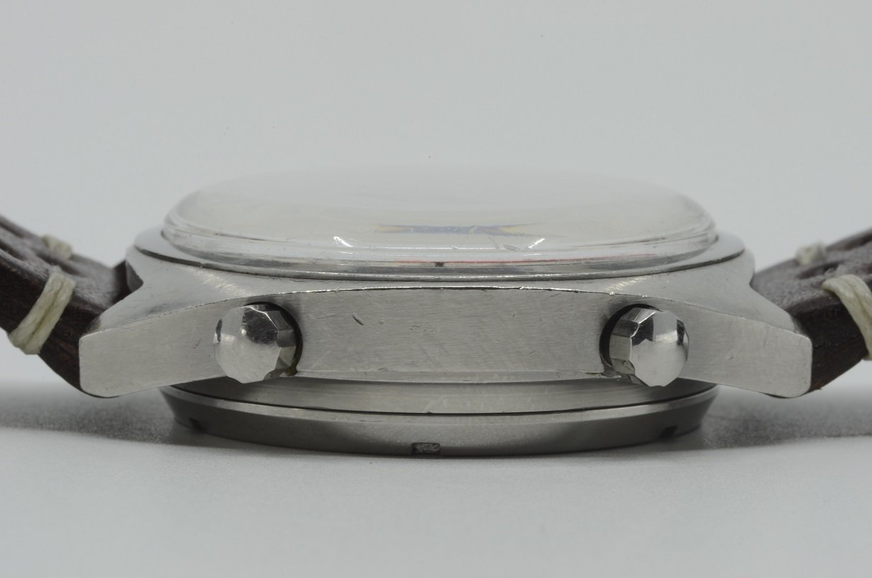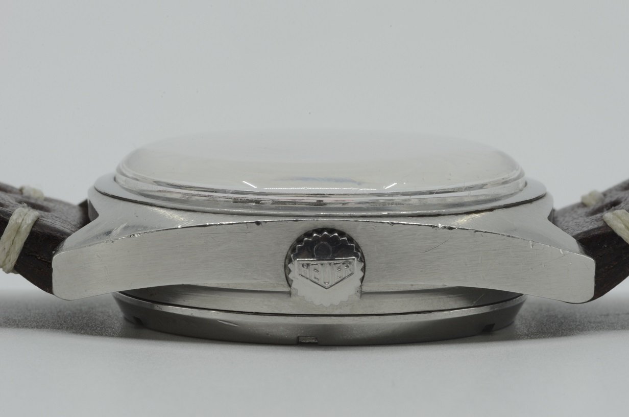 Condition: The crown is original, signed with Heuer logo. Pushers are also original. Dial and Tachymeter insert are in good condition. Hands are the Achilles heel of the watch. The lume on the end of the hands has turned black over the time. The case shows signs of wear commensurate with its age. The watch is running strong with all its functions (chronograph and date) fully operational, please see pictures