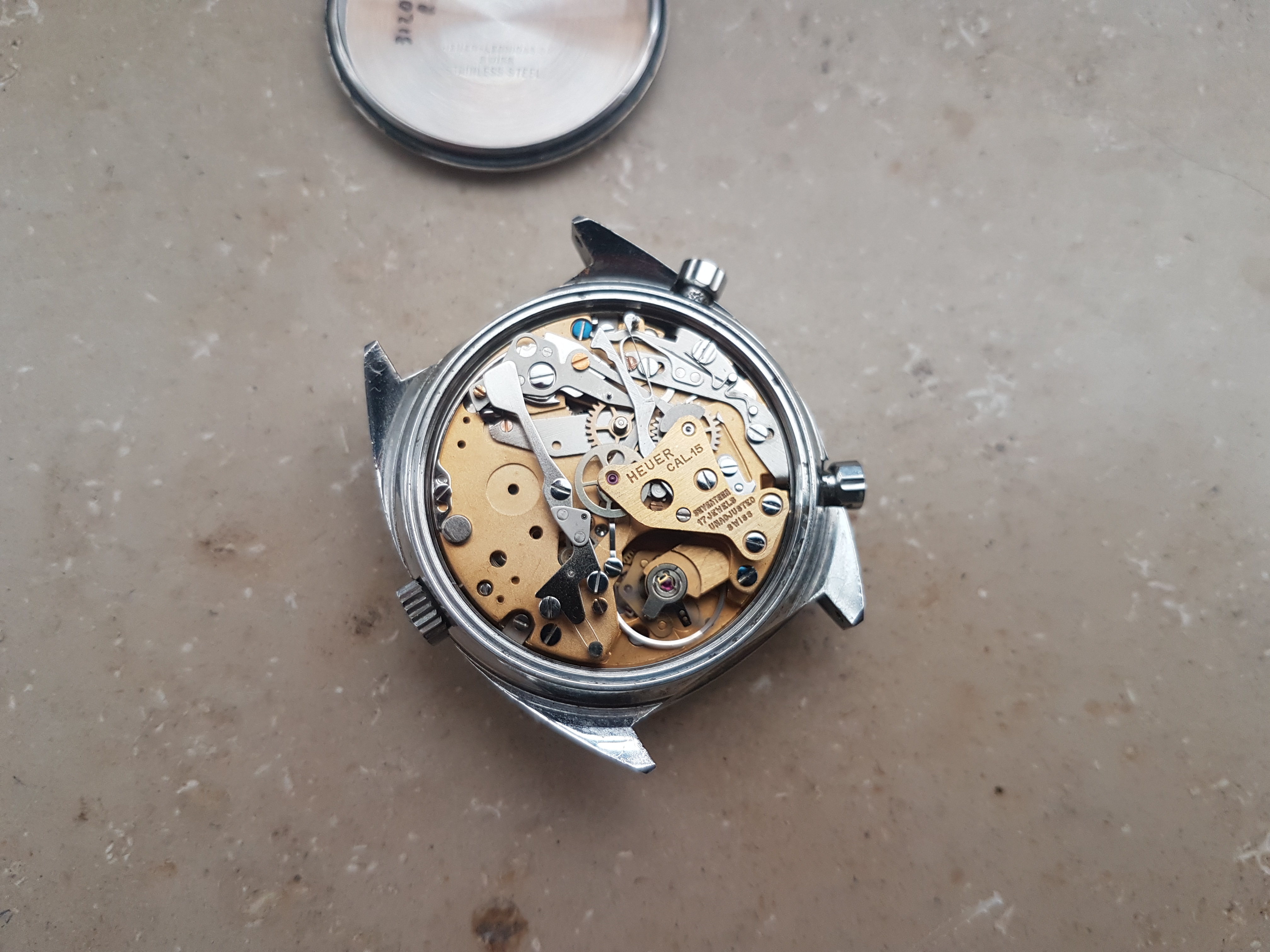 Movement looks very clean, keeps good time and the power reserve ist good as well. Chrono functions work as they should. Service history is unknown to me.