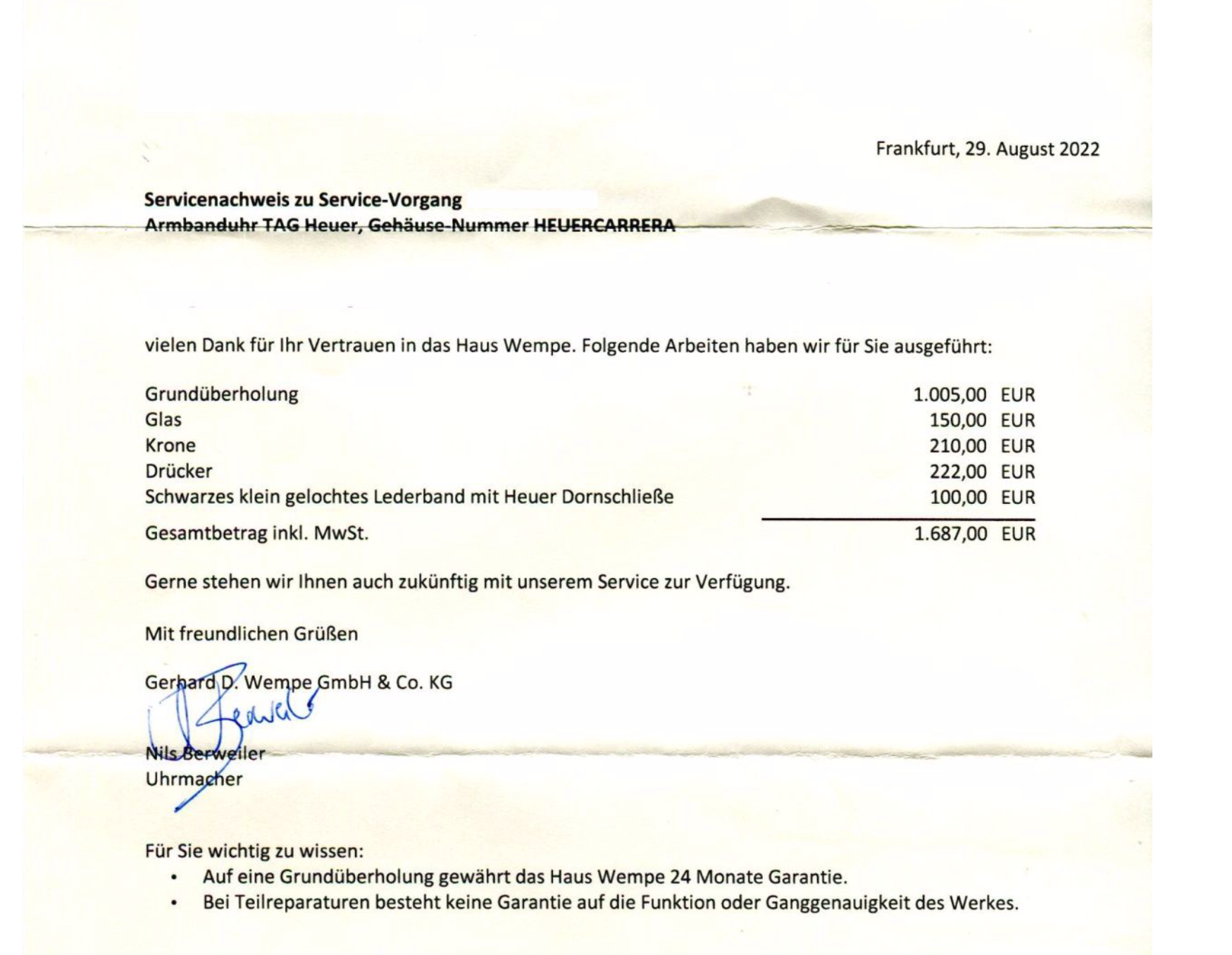 That bill comes with "friendly greetings" from the watchmaker but it's not at a friendly price!