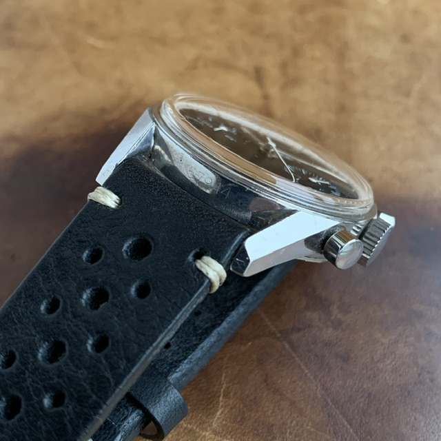 from what I can see the 36mm case hasn’t been messed with and all the lines and edges are very crisp. The serial number is also still visible and very pronounced. It’s in the sun 58k range which makes it an early one. This lines up perfectly with the original non signed crown and the form of the case back. So this is a very original early example.