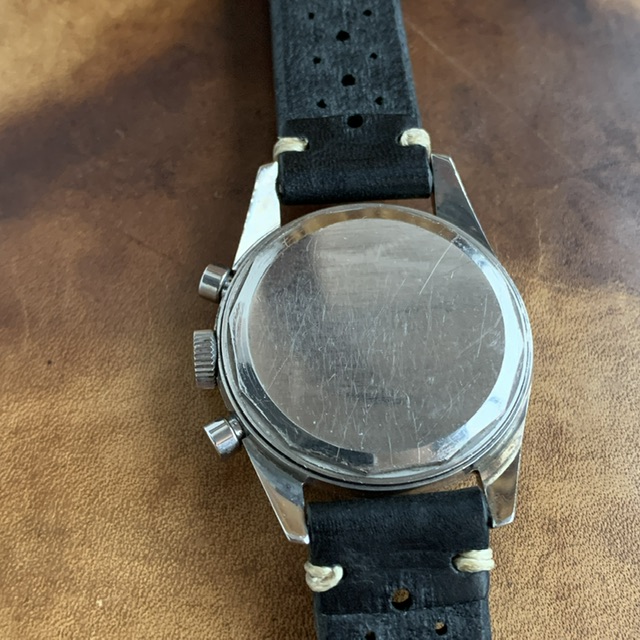 It’s the clean black dial variation powered by the column wheel movement Valjoux 92. The movement runs accurate and all functions work as they should. However the service history is unknown to me.