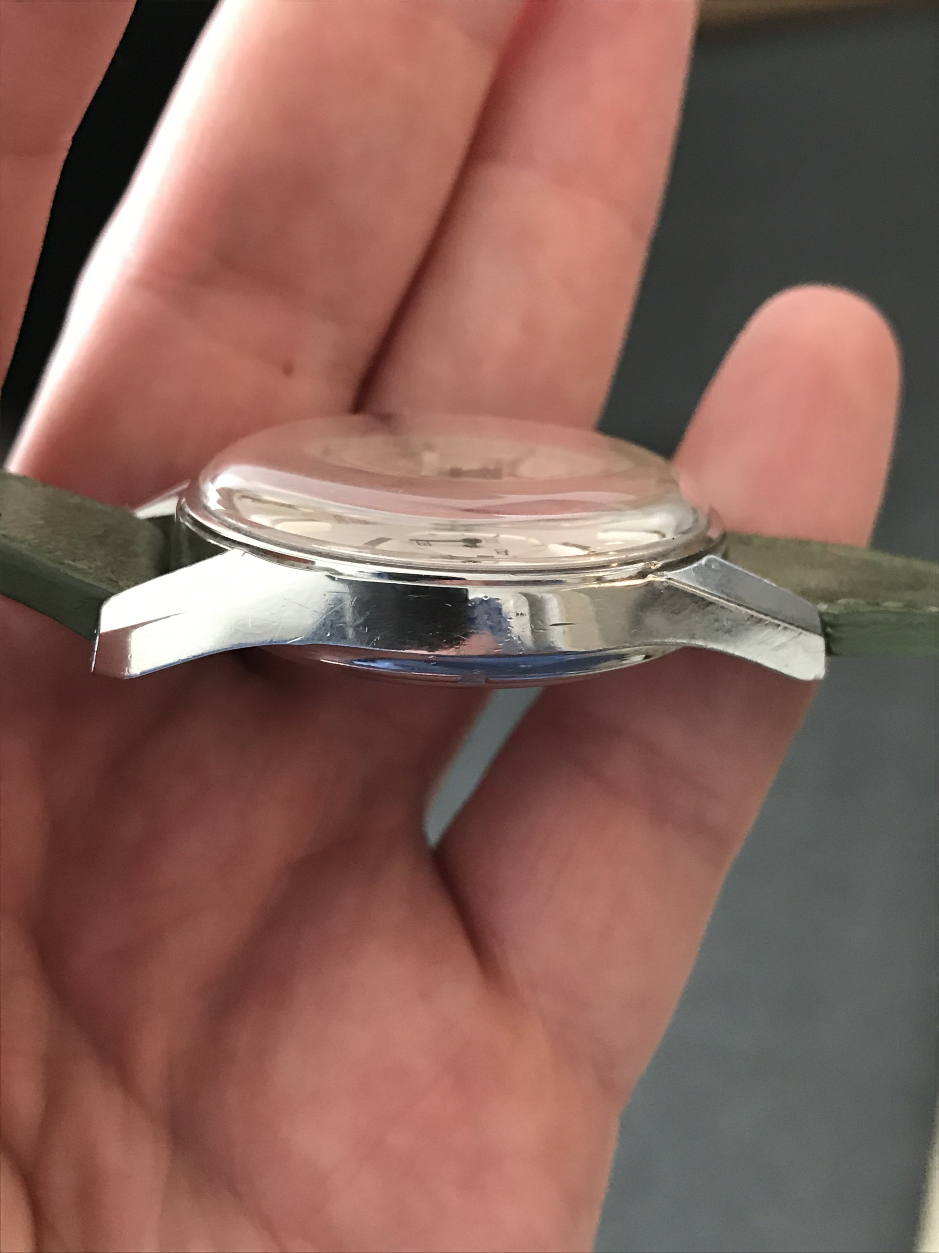 This 3647 has a 72xxx serial number, dating it most likely to 1966 or so. It has the large unsigned crown typical of the earlier models in this range. Beautiful dial with all original tritium lume (feel free to contact me for UV shots) and the case is in nice worn condition with the one exception of the mark at the 8 o’clock marker. While visible, it’s not very noticeable on the wrist but I wanted to point it out so it isn't a surprise.