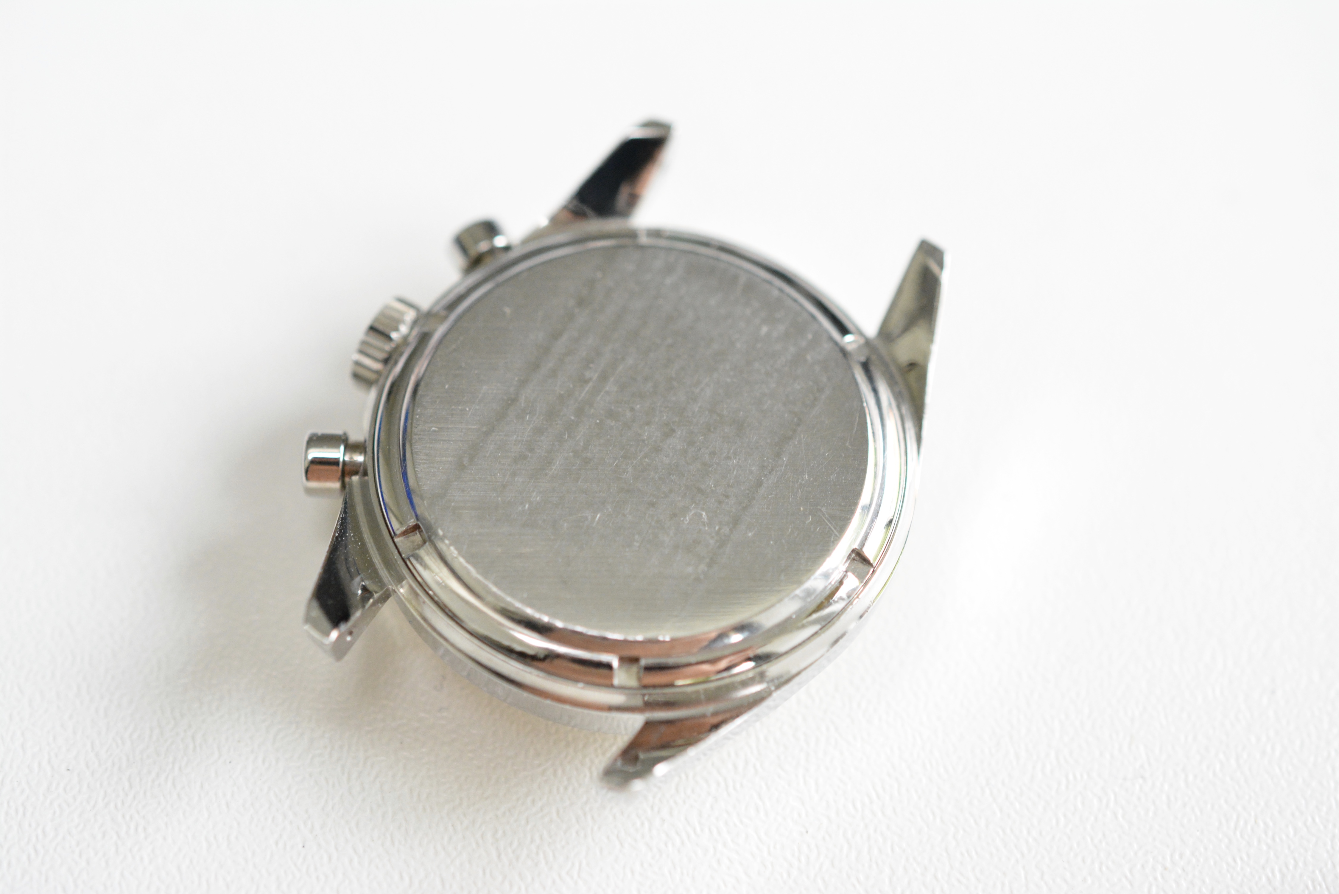 The case is in its untouched/unpolished condition, still very sharp and with the normal scratches that can be expected on a watch from the mid sixties. Case-back has the superficial markings from a nato strap.