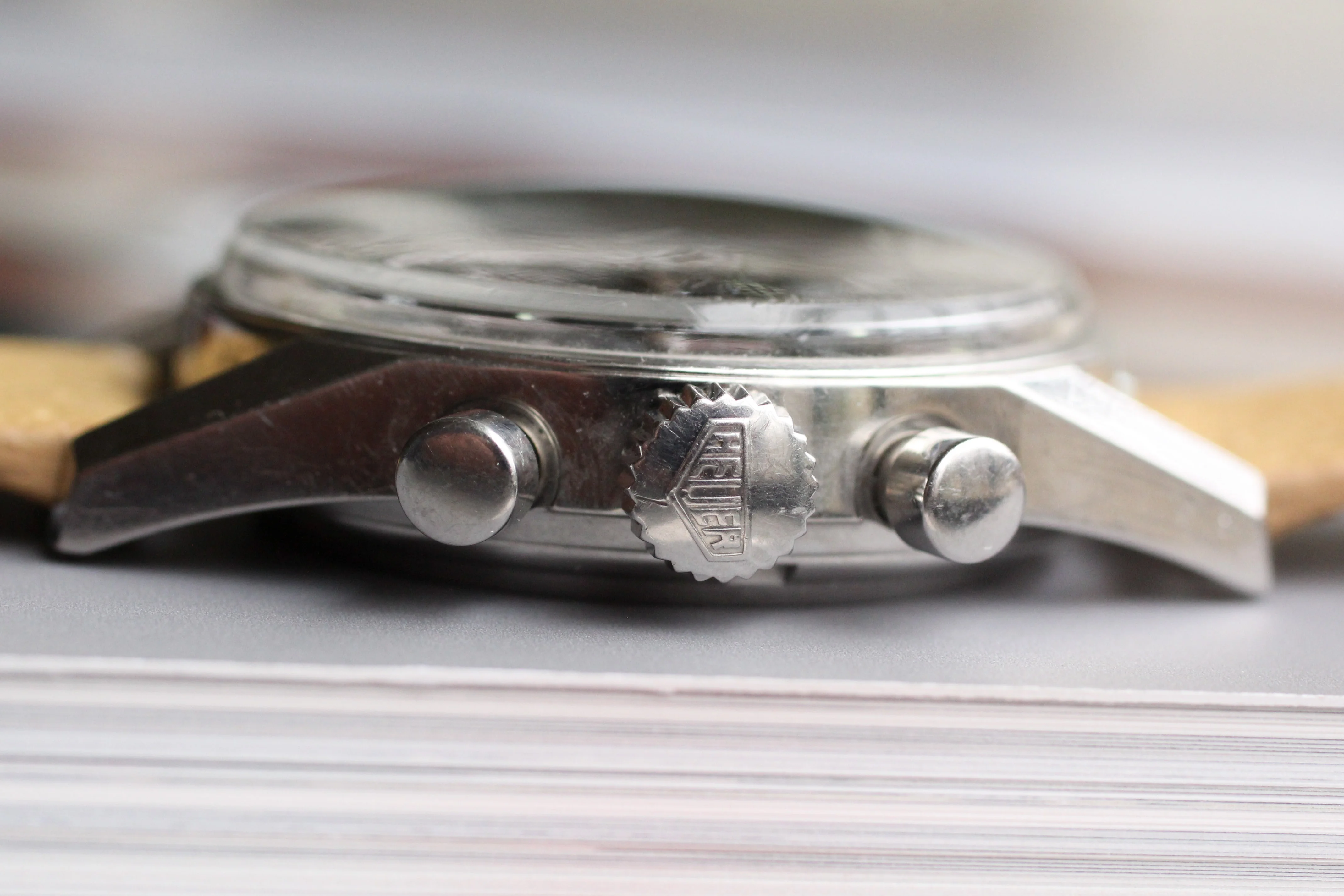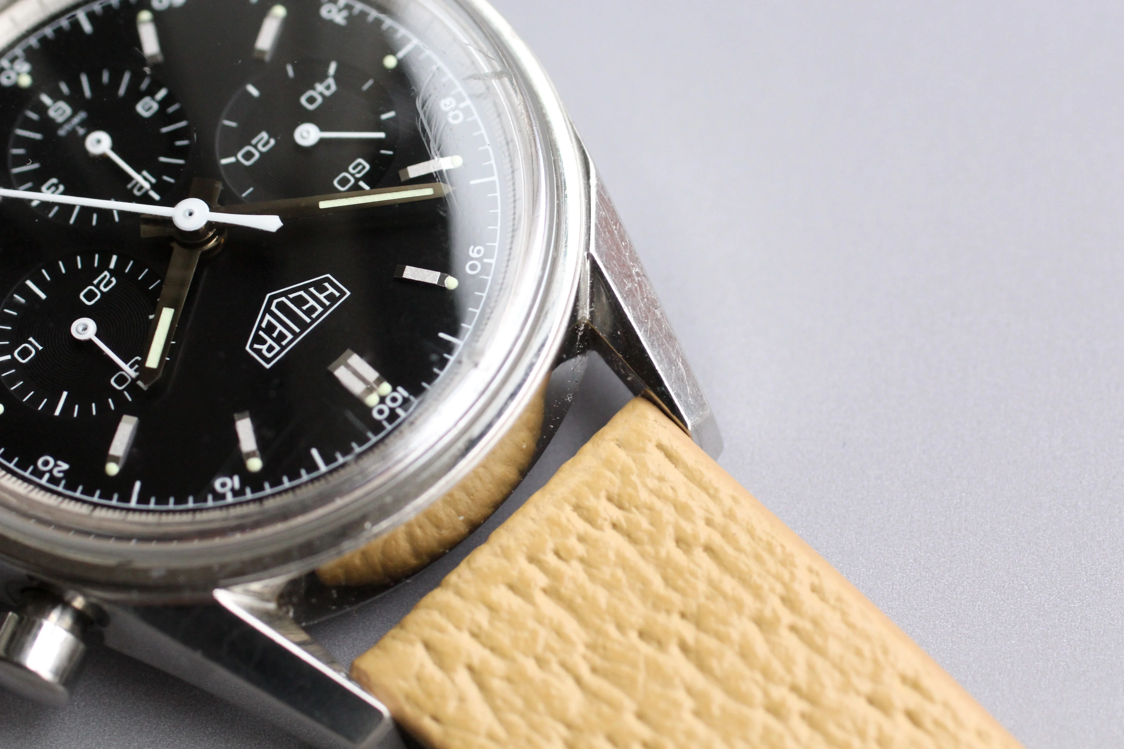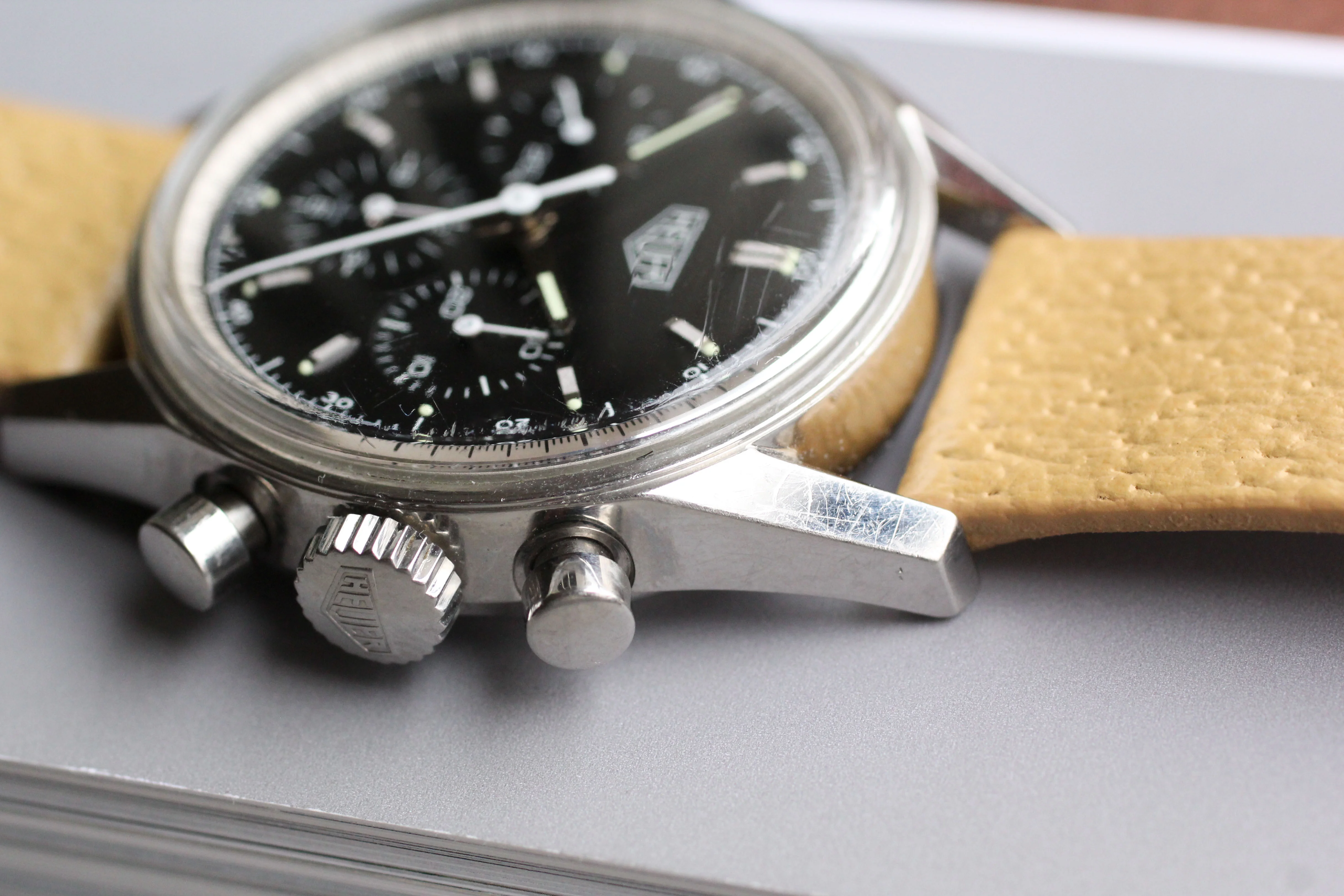 Accessories: The watch will be sold with the original corfam Heuer strap and buckle (Note: not the lighter strap pictured here). The original strap is quite stiff and worn, which is why I changed it out for picture purposes, but it could potentially be "revived" with leather treatment.
