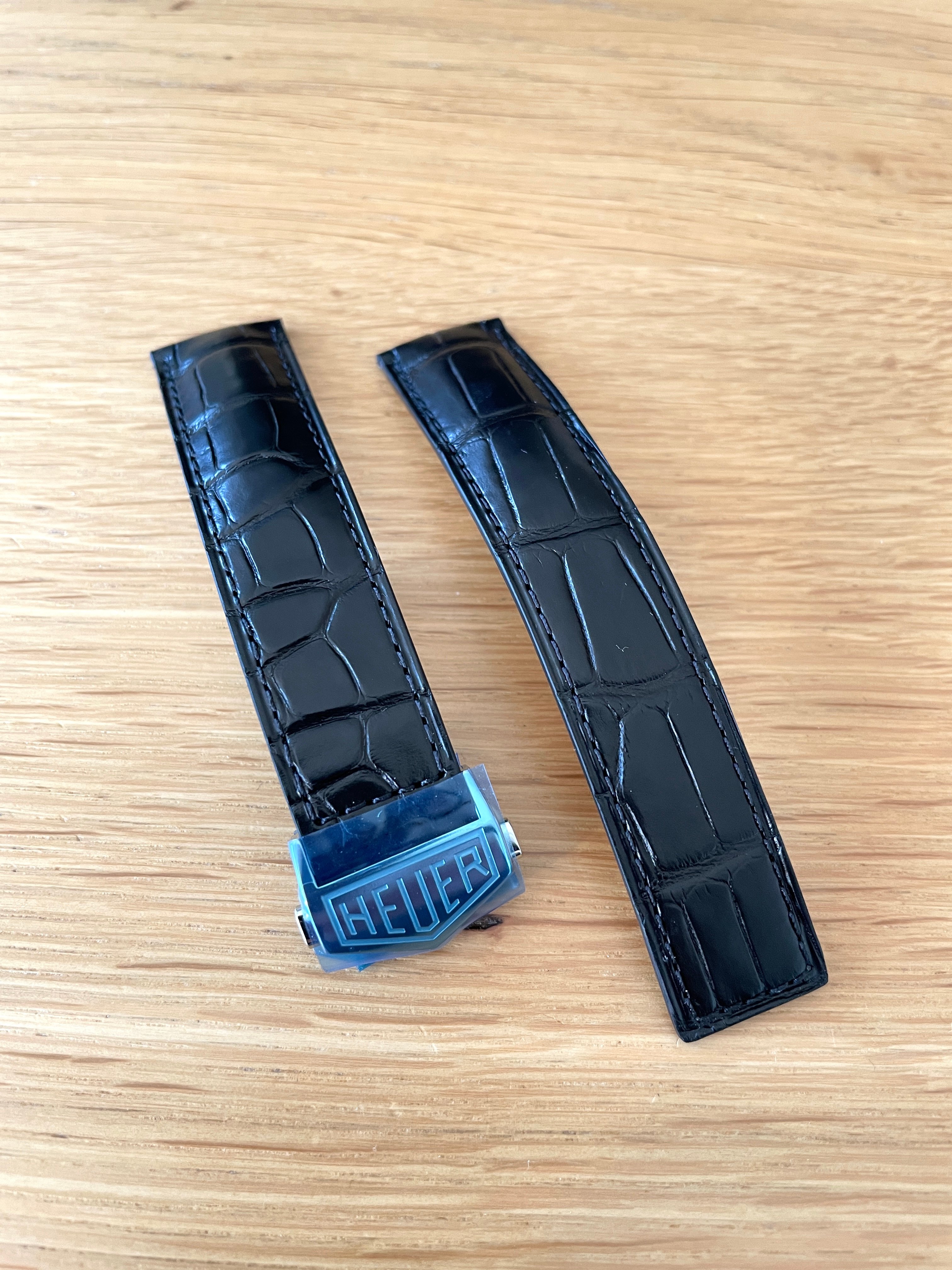 I immediately fitted the watch with another strap so the original black leather strap with deployant buckle is unused.