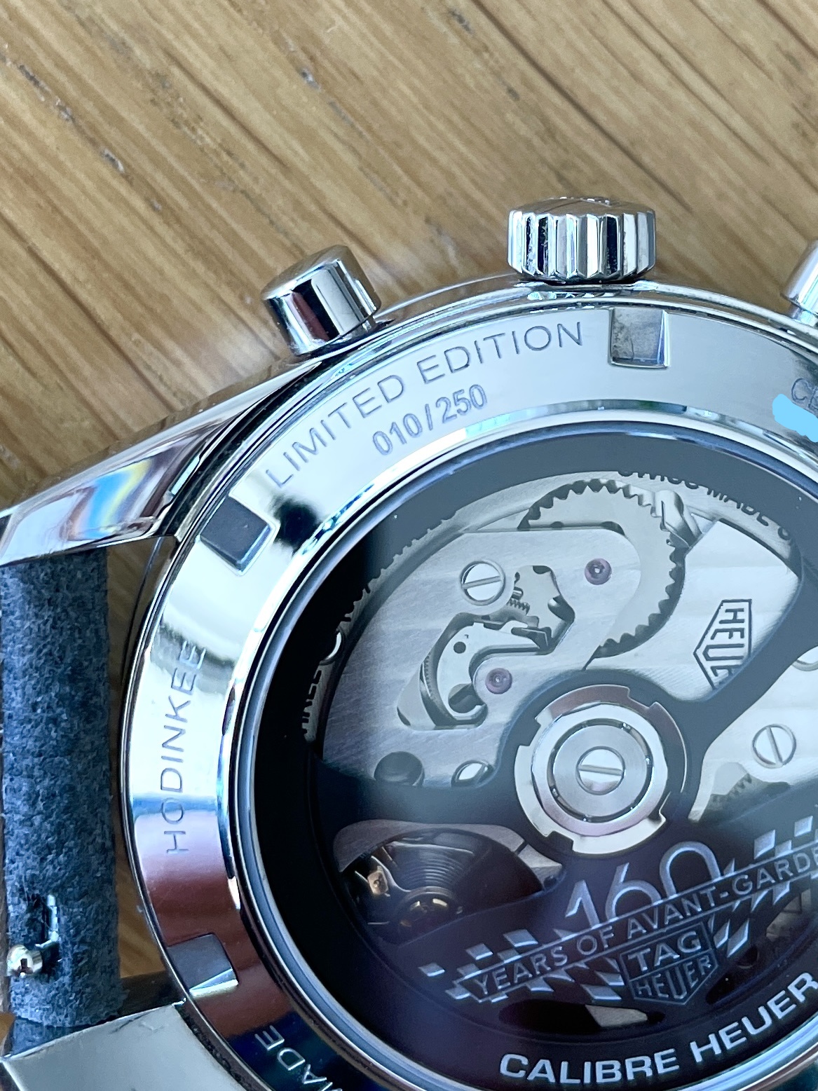 Selling my TAG Heuer Carrera Dato CBK 221D. This is a limited edition of 250 pieces by HODINKEE. Mine is number 10. I’m the first owner and it’s a full set with inner & outer box, all the paperwork, guarantee card, tag and strap. The watch was bought from a TAG Heuer boutique in the US.