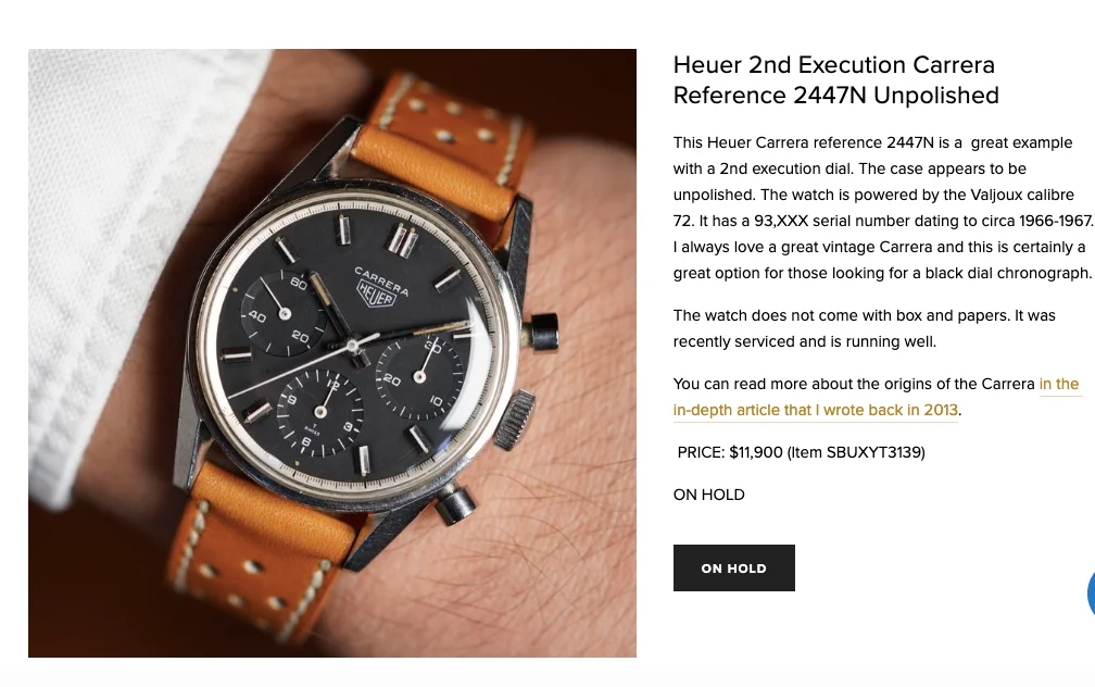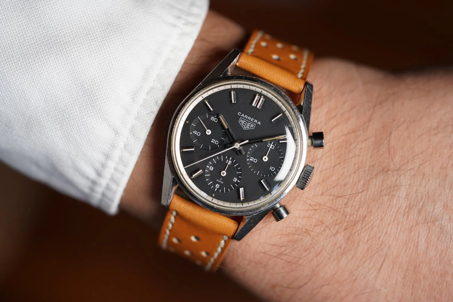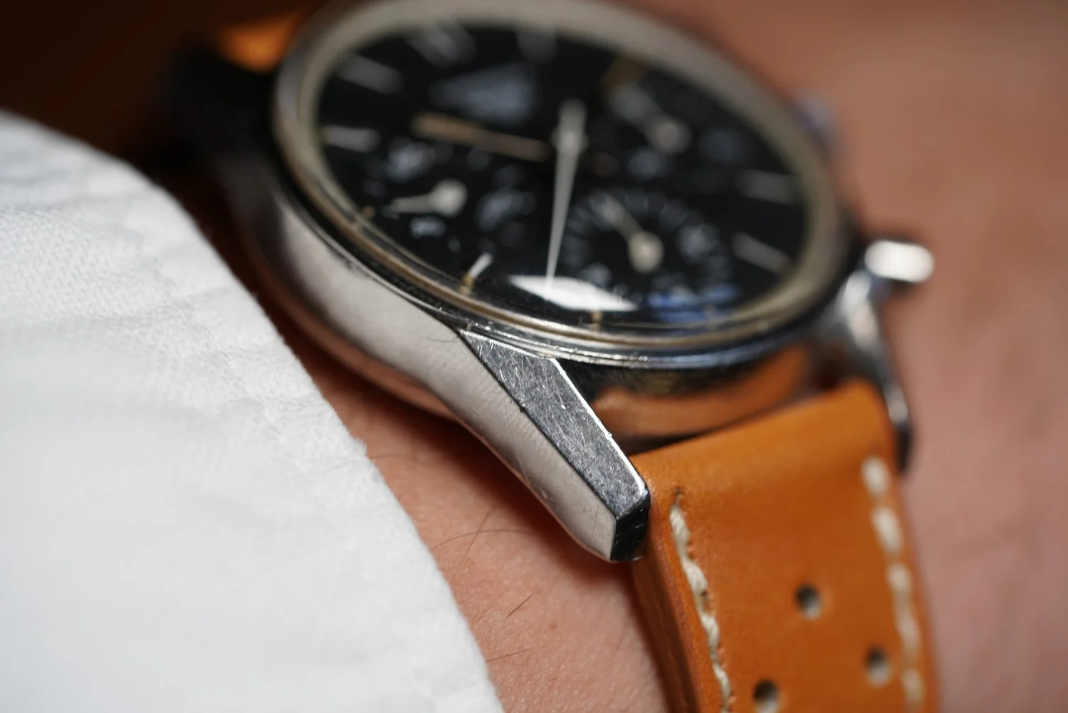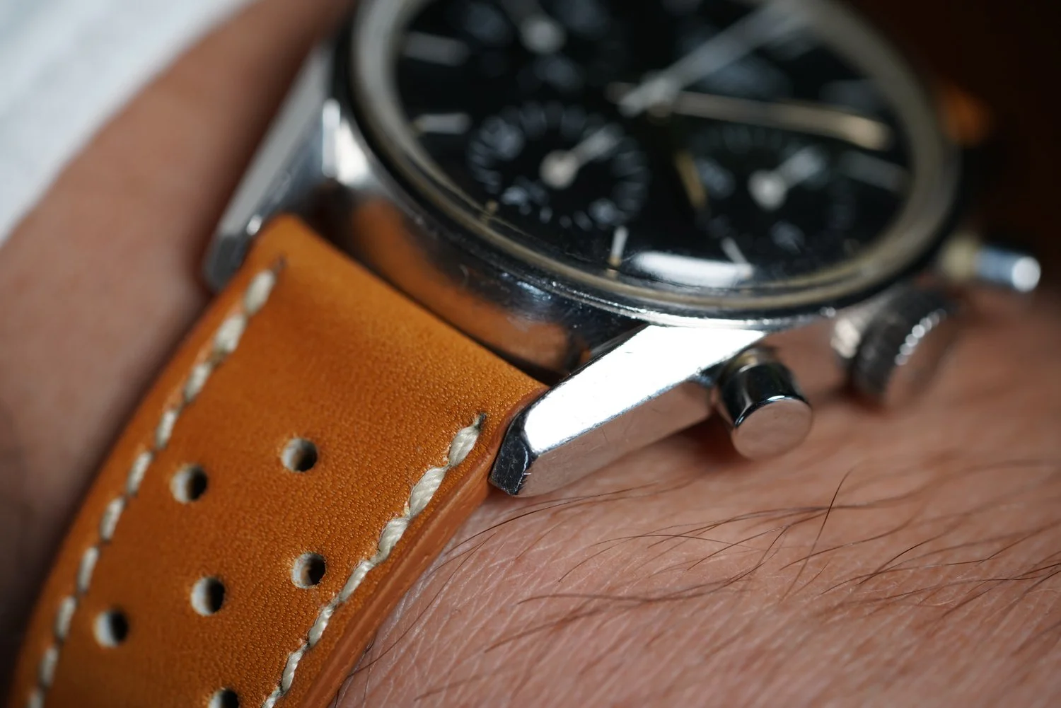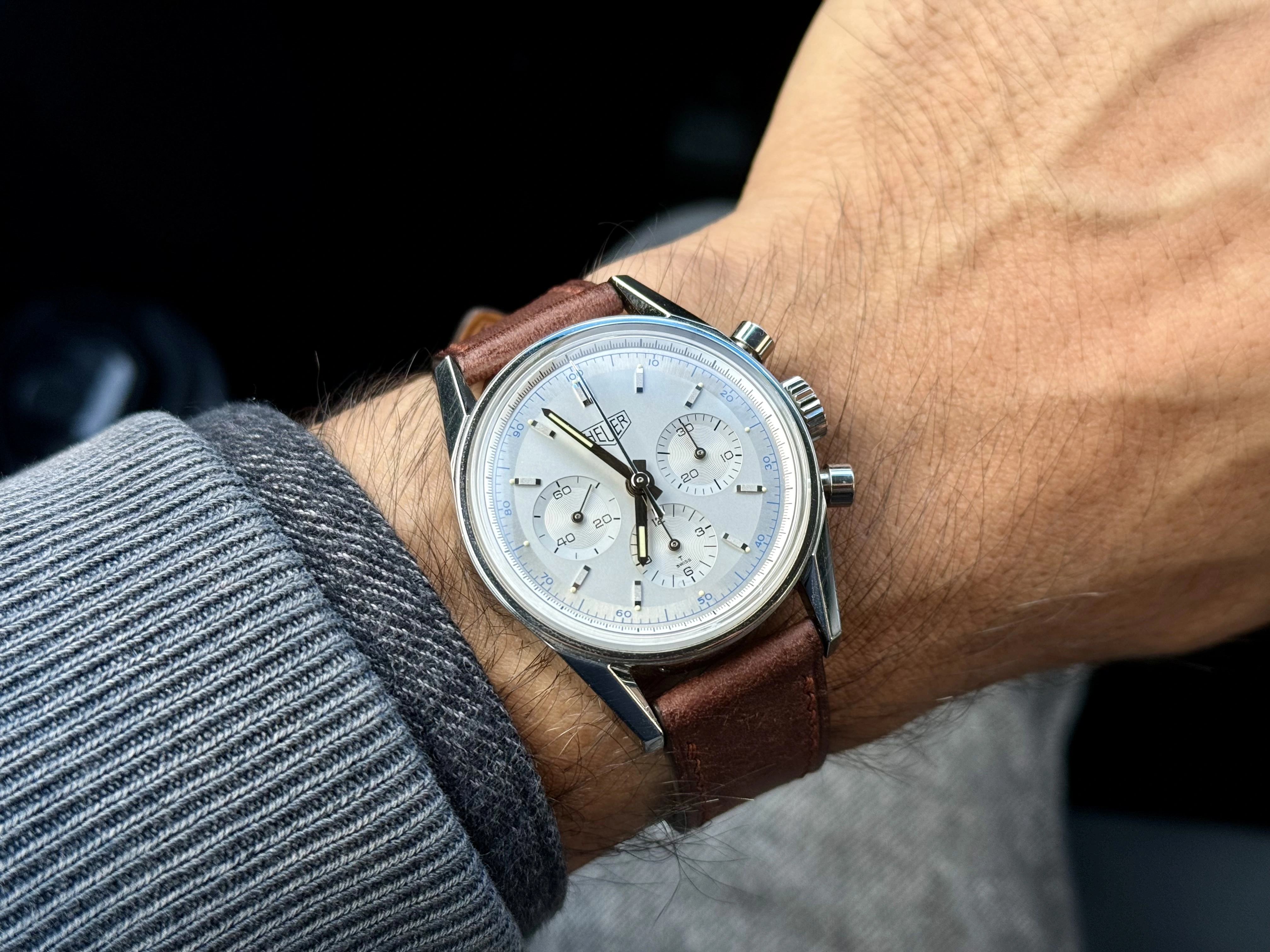 Here’s mine with a modern strap and vintage buckle. As I’ve learnt recently the straps used on early Carreras were devoid of stitching so I tried to find something along those lines to complement it.