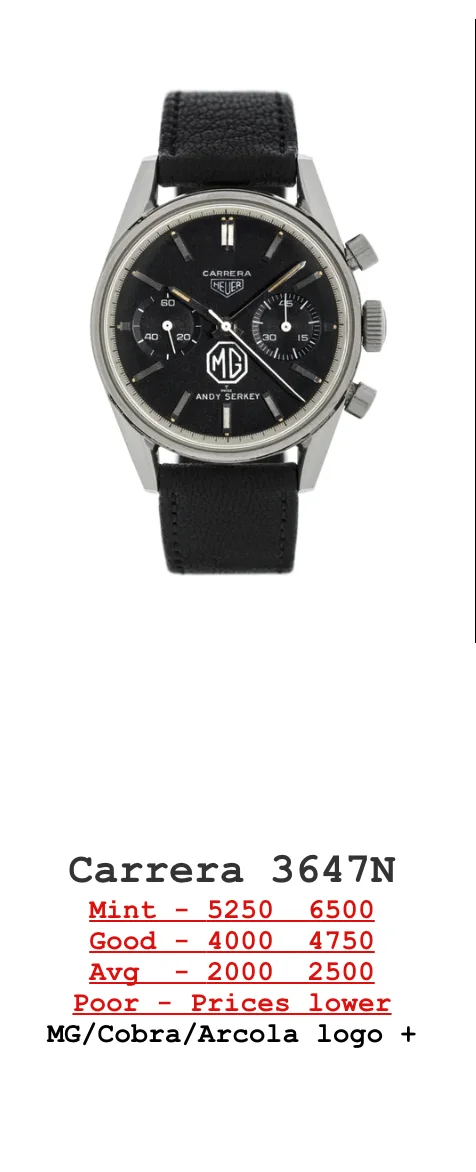 High, but not extreme. These prices are in GBP, so 6350 in EUR for a private sale and 7800 for a dealer sale, when in mint condition. Have seen multiple dealers posting for up to 9k and recently even a 10k 3647 NT. Source: https://www.heuerpriceguide.com/carrera-1960s-price-guide