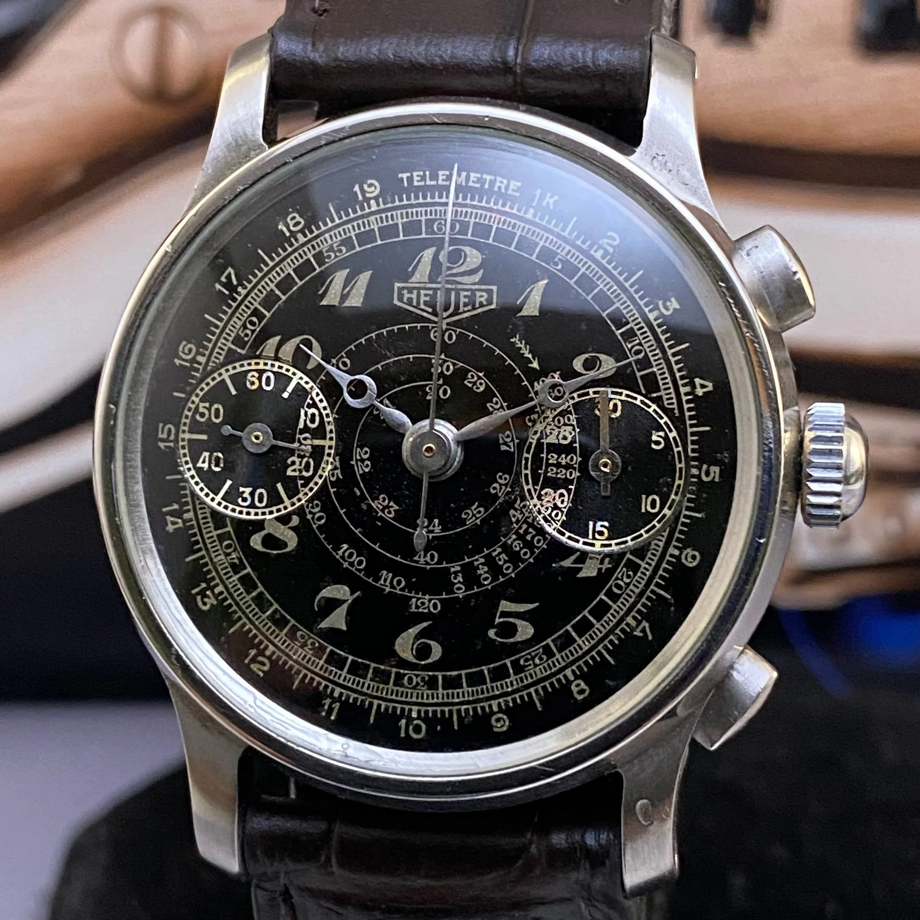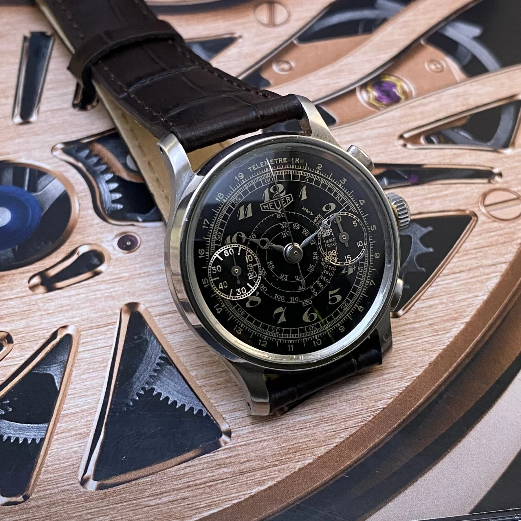 This find actually is a different animal and blown my mind. It deals obviously with the Heuer 1930s flieger monopusher chronograph. Since there are not many pre-reference pieces, I am aware of just handful of them, it is very hard to make a qualified comparative analyses. There are many similarities but oddities too among available references.