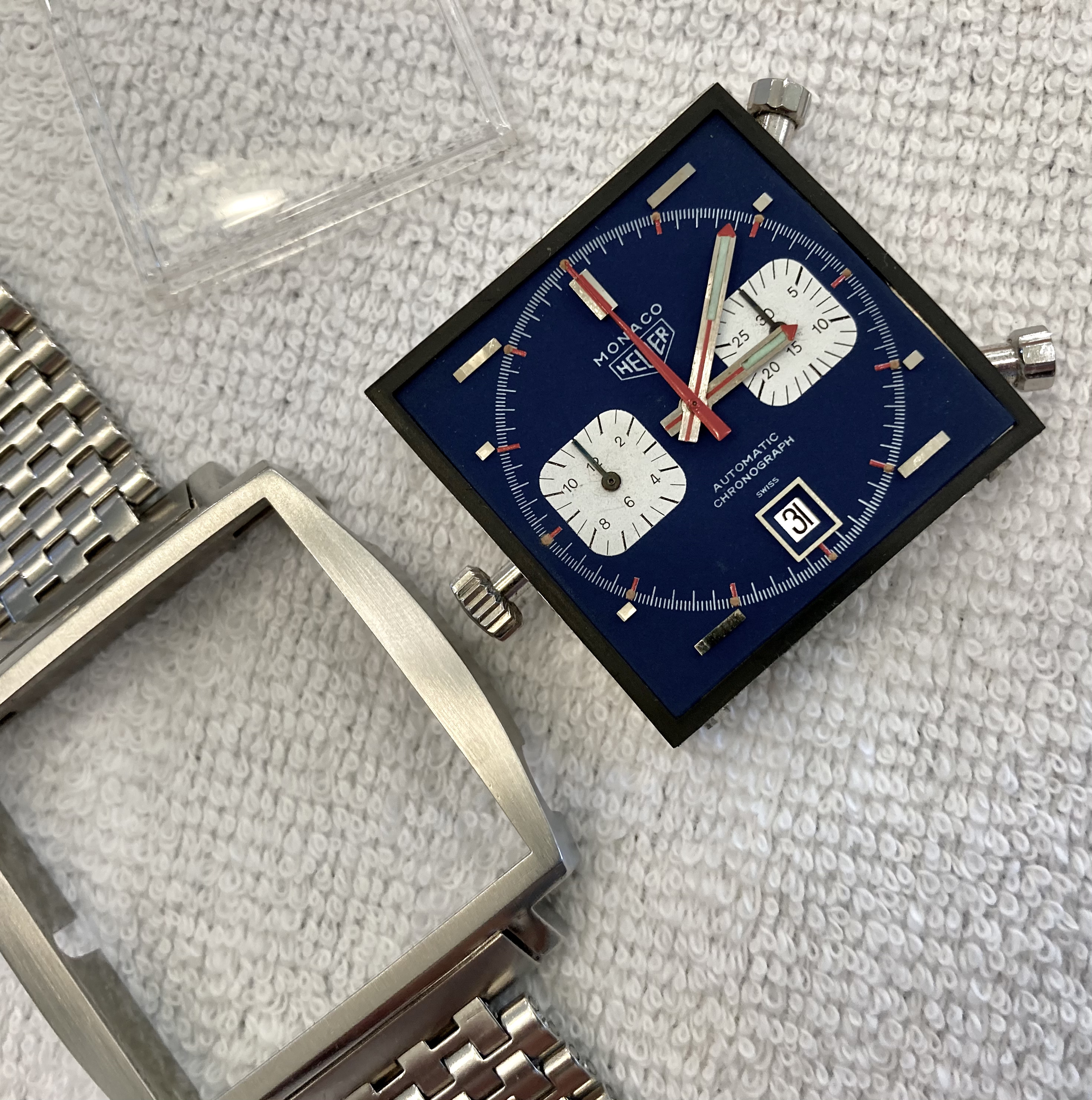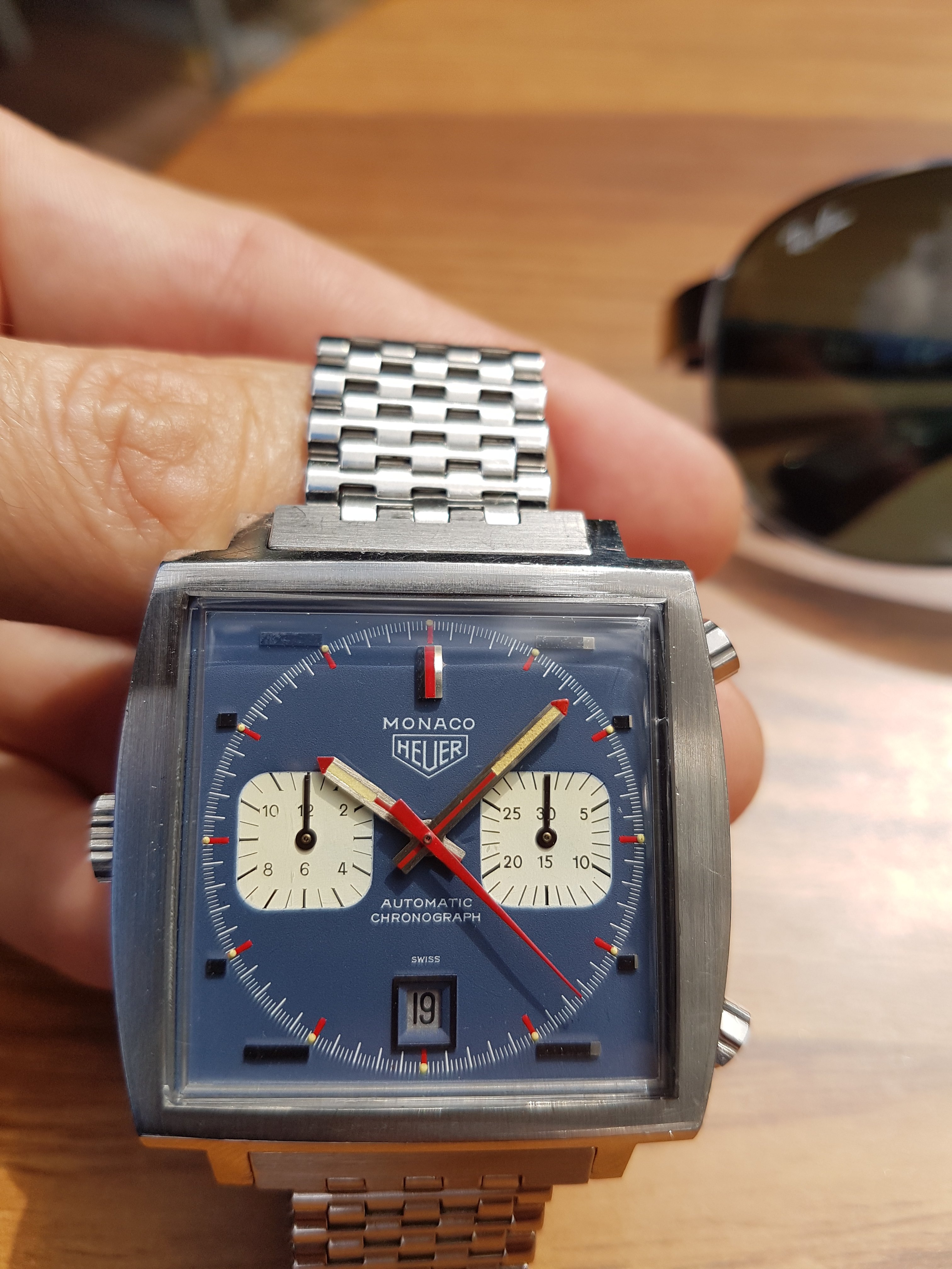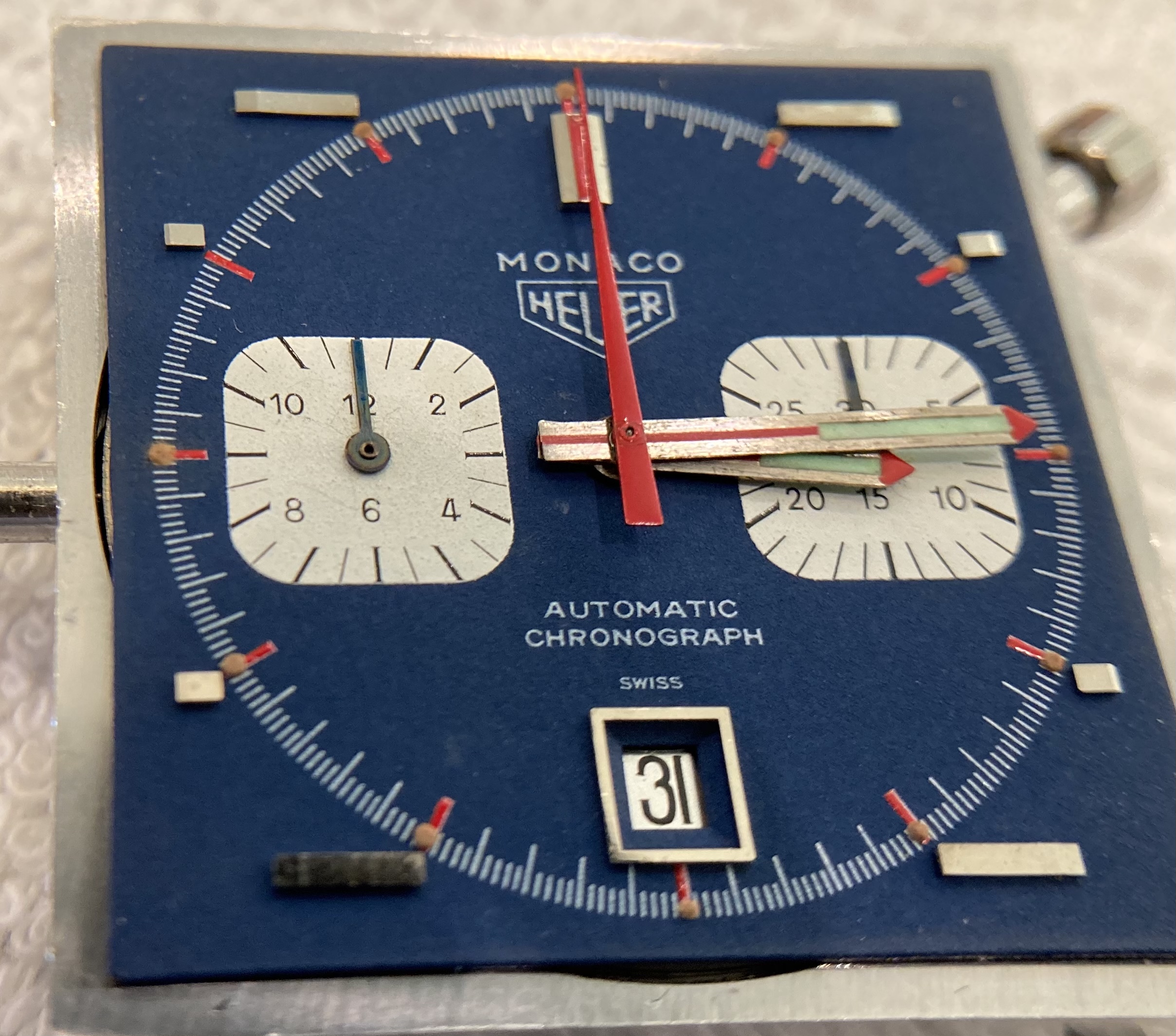 ·Could be a relume, could be service replacements, but some of the earlier Monacos had hand lume that went blue-green so it could be that, though those are usually the straight-end Chronomatic and "Transitional" style hands. Lots of tritium from that era went greenish though so it doesn't raise red flags necessarily.