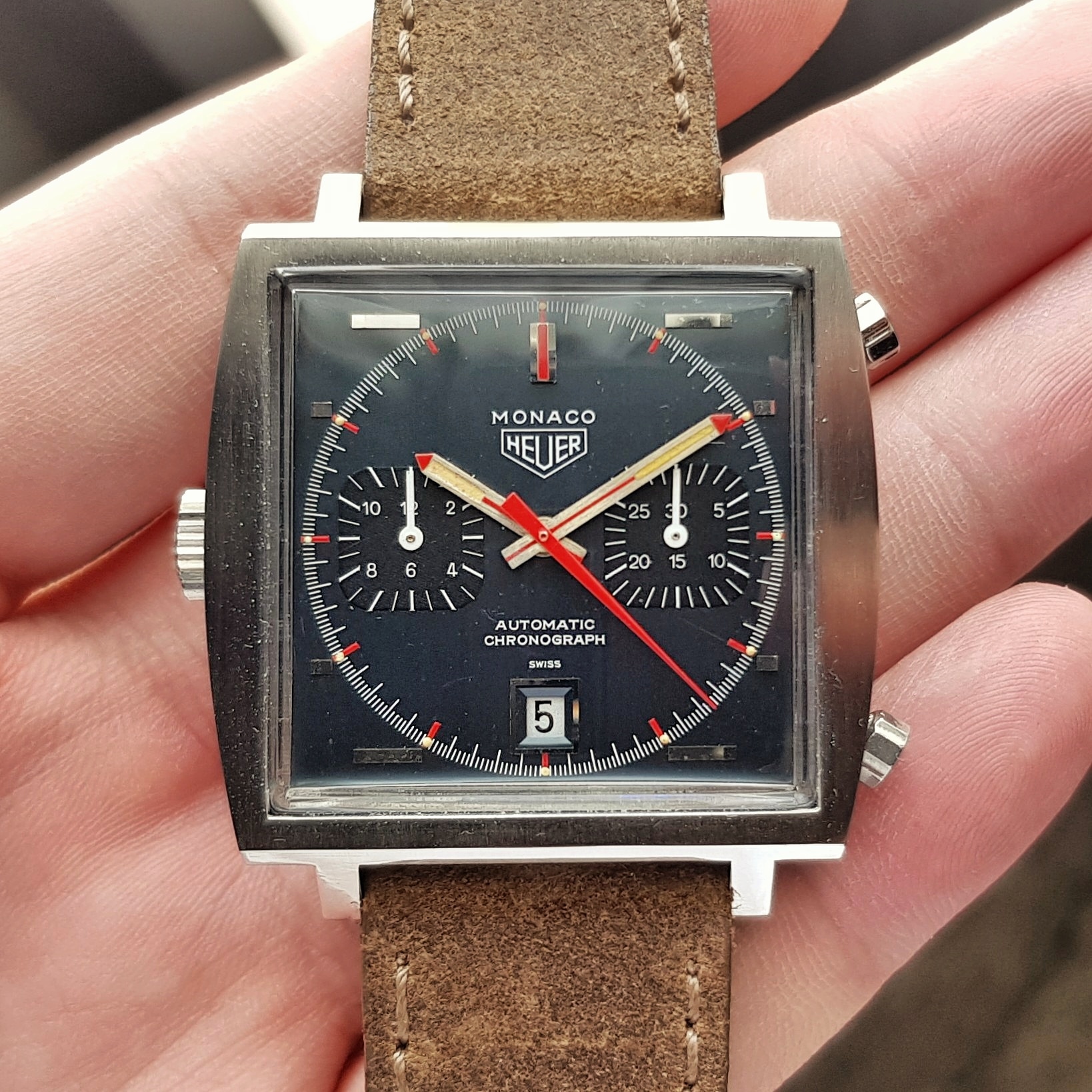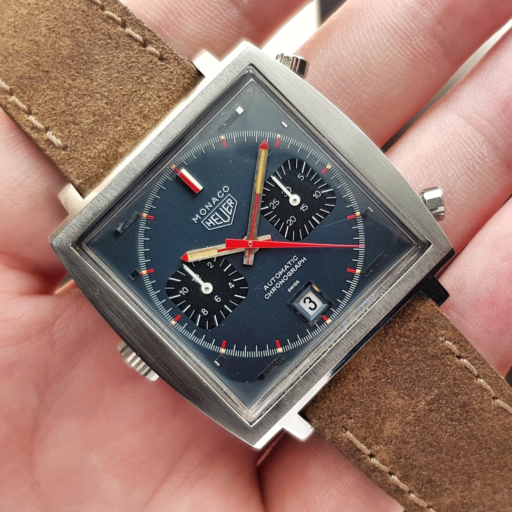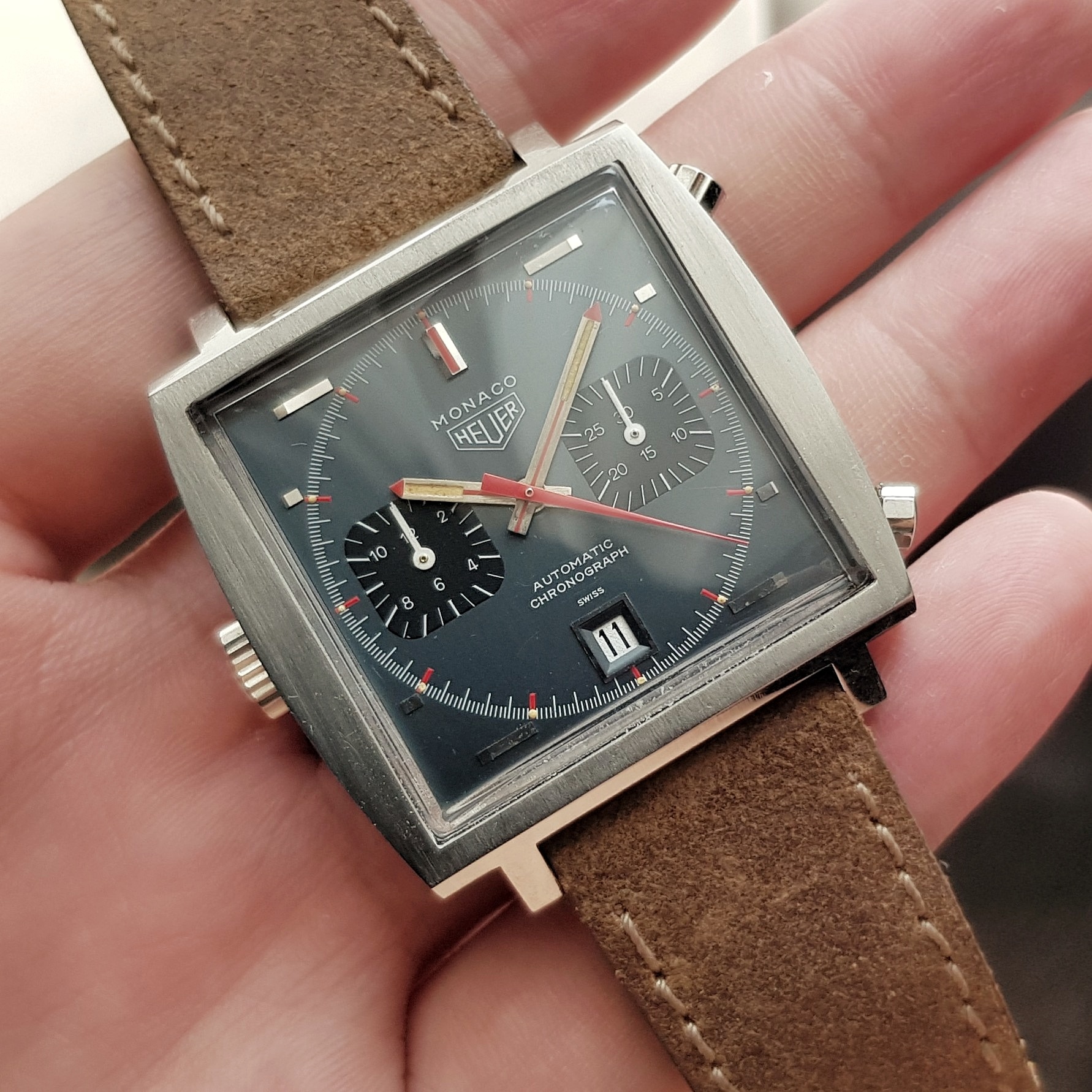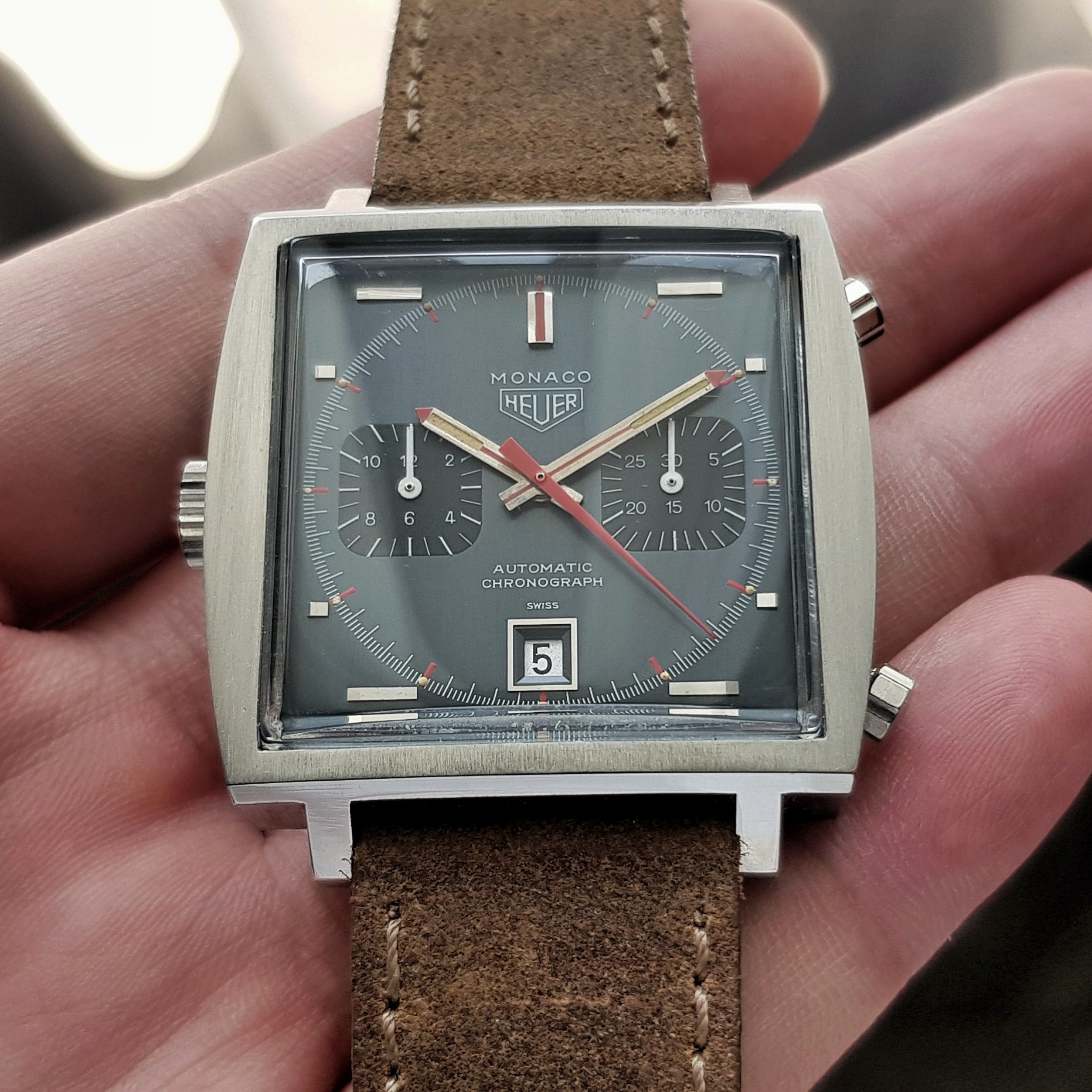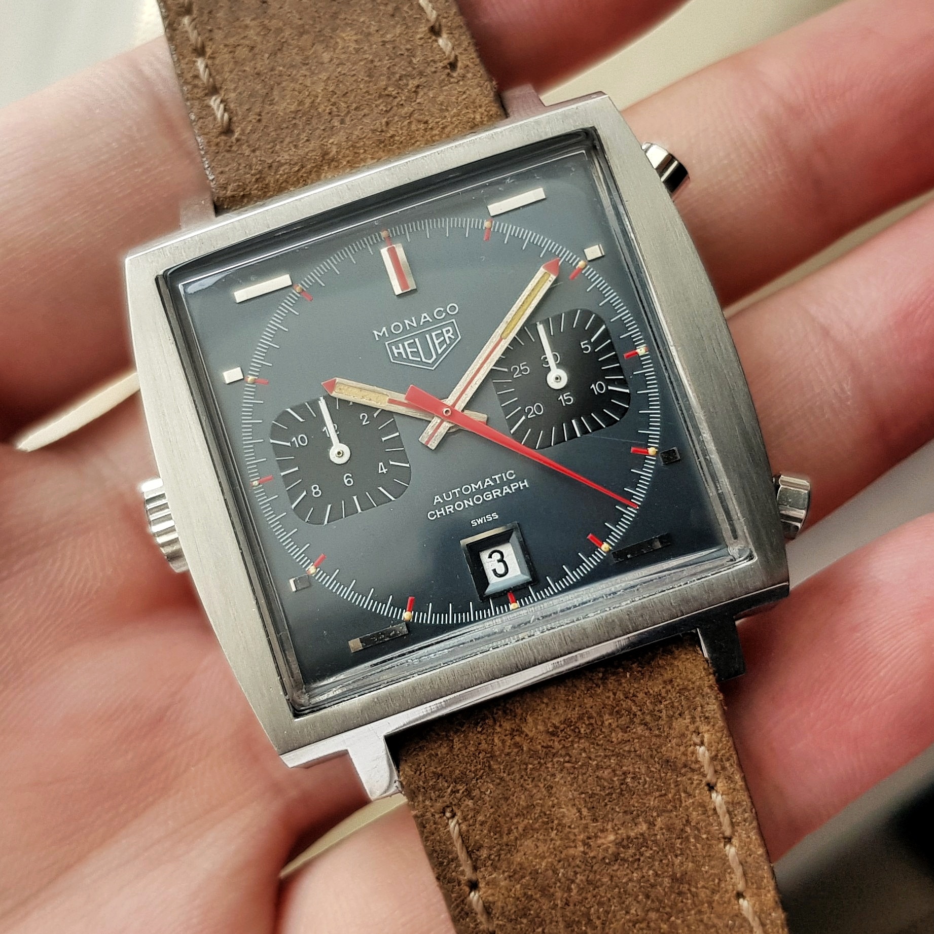 ·For trade is the legendary Heuer Monaco 1133G from 1971 with the grey dial and black subdials. (My preferred configuration)