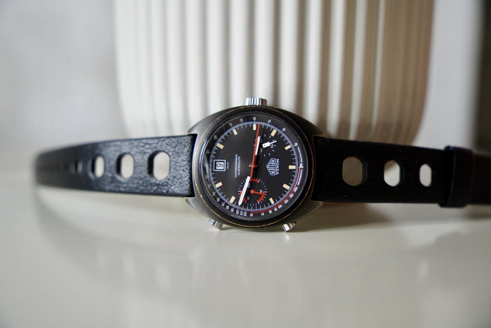 For sale here is my freshly serviced and since then unworn Heuer Monza (also called Niki Lauda).