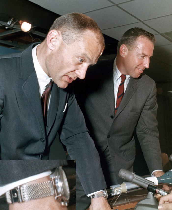 On Gemini V, a total of 5 watches were worn, in addition to the NASA-issued Omega Speedmaster (Conrad wore 2), Cooper wore his personal Accutron Astronaut microsonic GMT pilot watch and Conrad wore his personal Glycine Airman automatic GMT pilot watch...